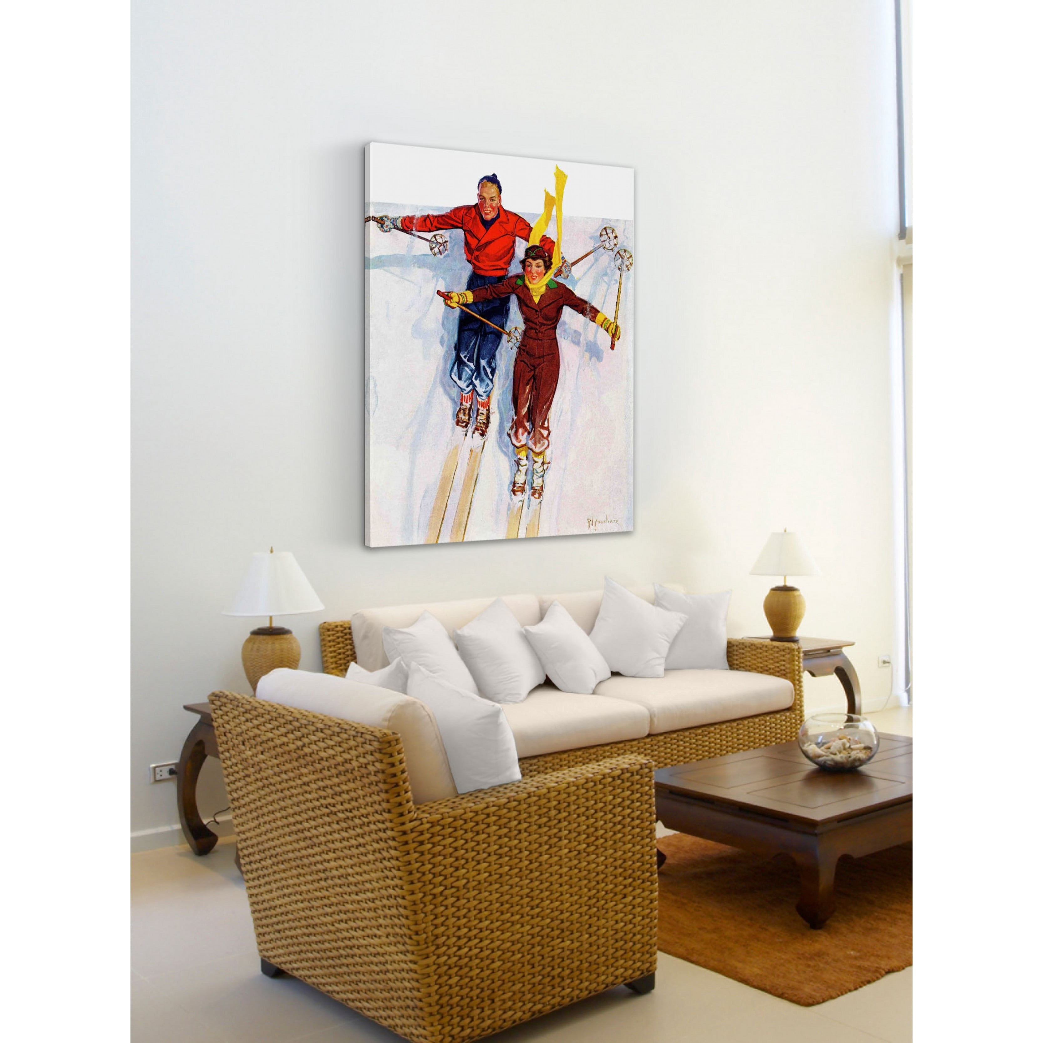 Get that vintage ski look with the Marmont Hill Couple Downhill Skiing Print on Wrapped Canvas. This canvas art print comes professionally hand-stretched and gallery-wrapped in sustainable, non-warping wood. It’s A, includes a certificate of authenticity, and comes ready to hang. Select from available sizes.