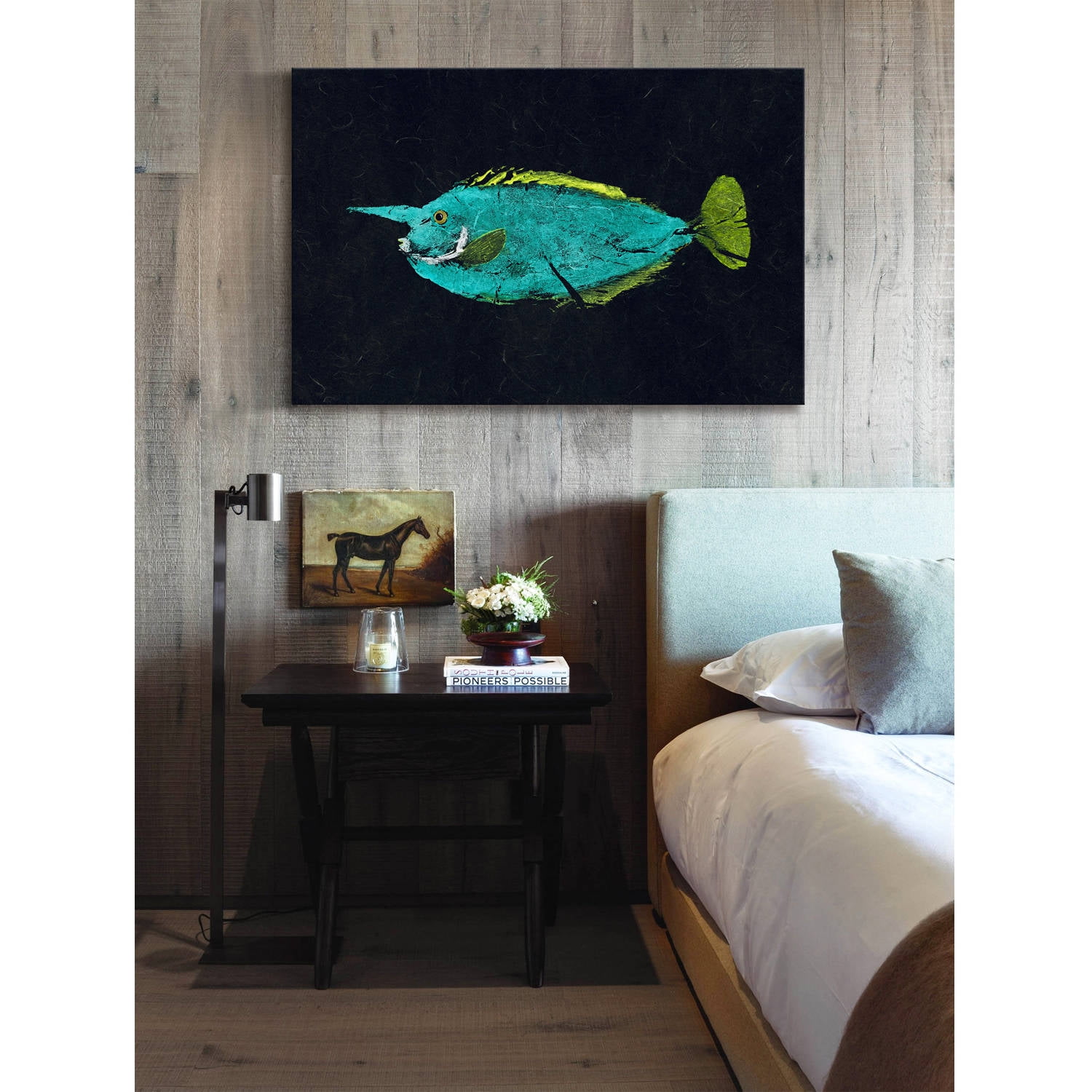 Marmont Hill “Mu Mu” by Warren Sellers Painting Print on Wrapped Canvas: Fine art canvas print from the Marmont Hill Art Collective Artwork by Warren Sellers Professionally hand stretched Gallery wrapped in sustainable, non-warping wood Arrives ready to hang Includes a certificate of authenticity Gyotaku is a Japanese fish printing art created in the early 1800’s using rice paper and natural berry inks to preserve exact sizes of prized catches. The rubbings were used to prove these records as this was pre photography times in that area. People would compete with each other and needed some way to record the fish as well as honoring the fish itself. The first printing was done with only one color just to prove size and species but at some point evolved to more colors to bring out a more artful rendition of the subject. This art form reproduces the exact features and characteristics of the fish.