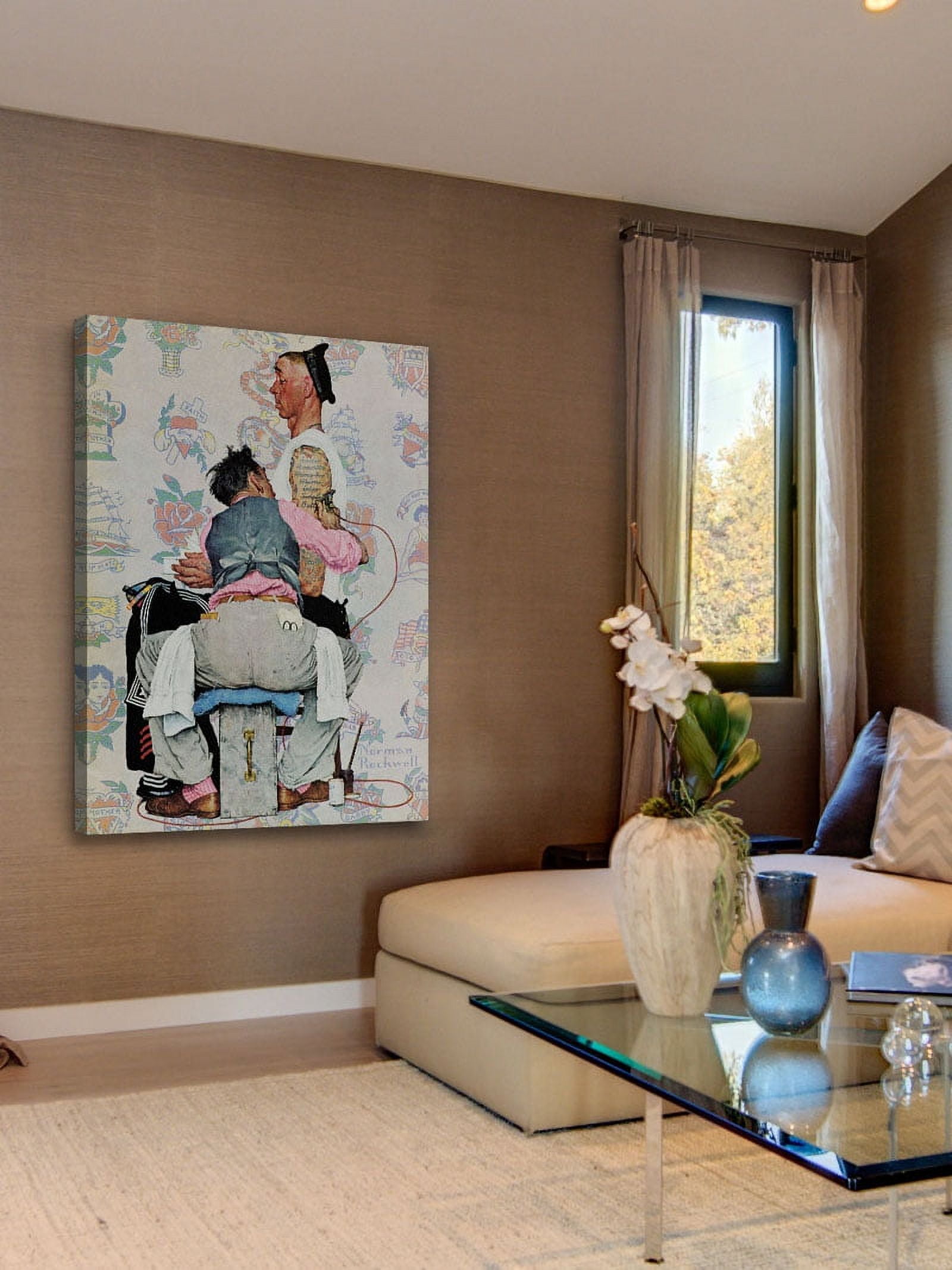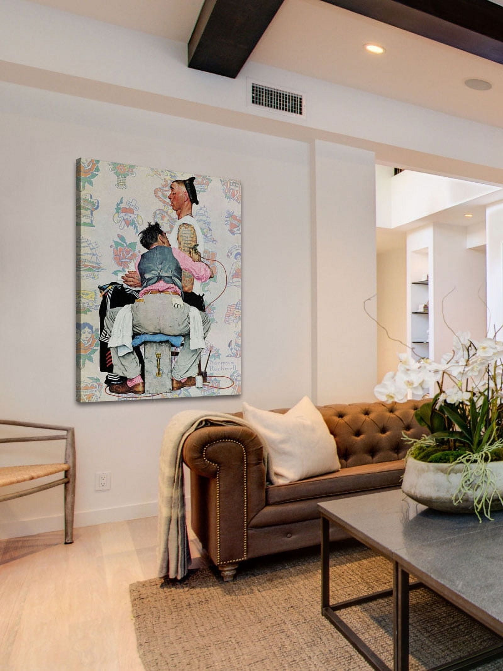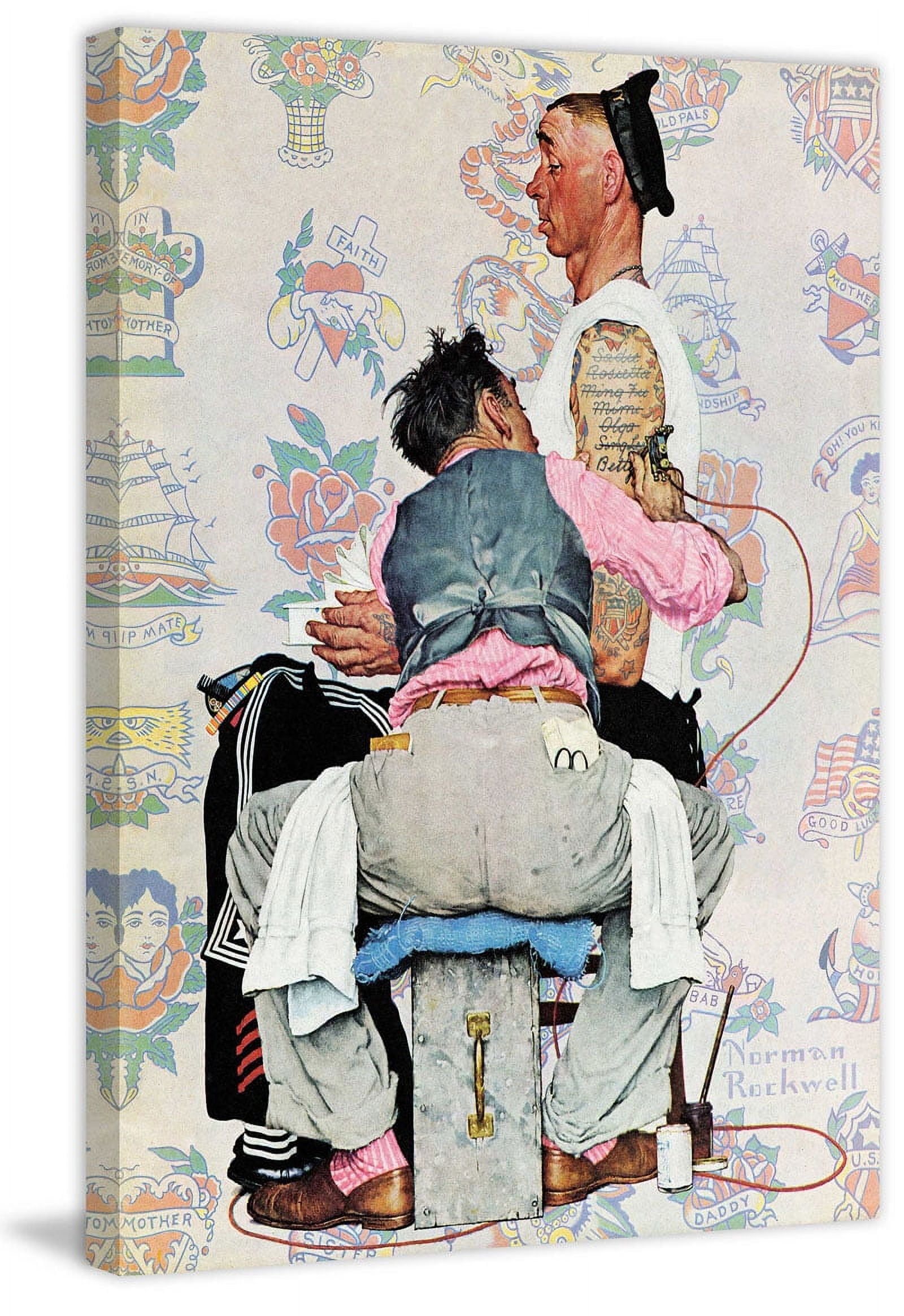 Marmont Hill “Tattoo Artist” by Norman Rockwell Painting Print on Canvas: Fine art canvas print from the Marmont Hill Art Collective Professionally hand-stretched Gallery wrapped in sustainable, non-warping wood Arrives ready to hang Includes a certificate of authenticity Available in sizes: 24″ x 31″, 30″ x 39″ and 40″ x 52″