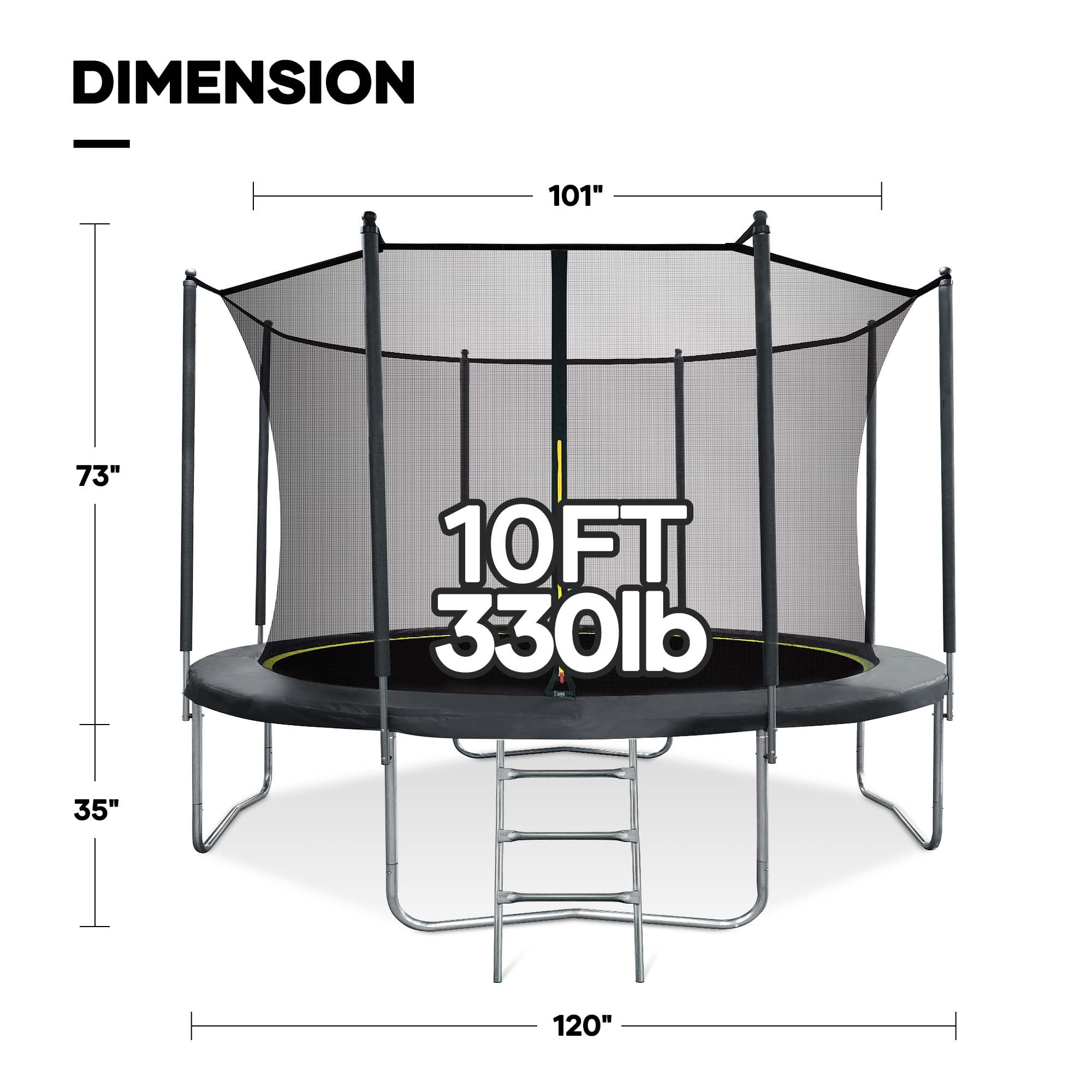 MARNUR 10FT Trampoline for Kids Outdoor Fitness Trampoline with Enclosure Net, Spring Cover, Ladder, Wind Stakes,330lbs Weight Capacity