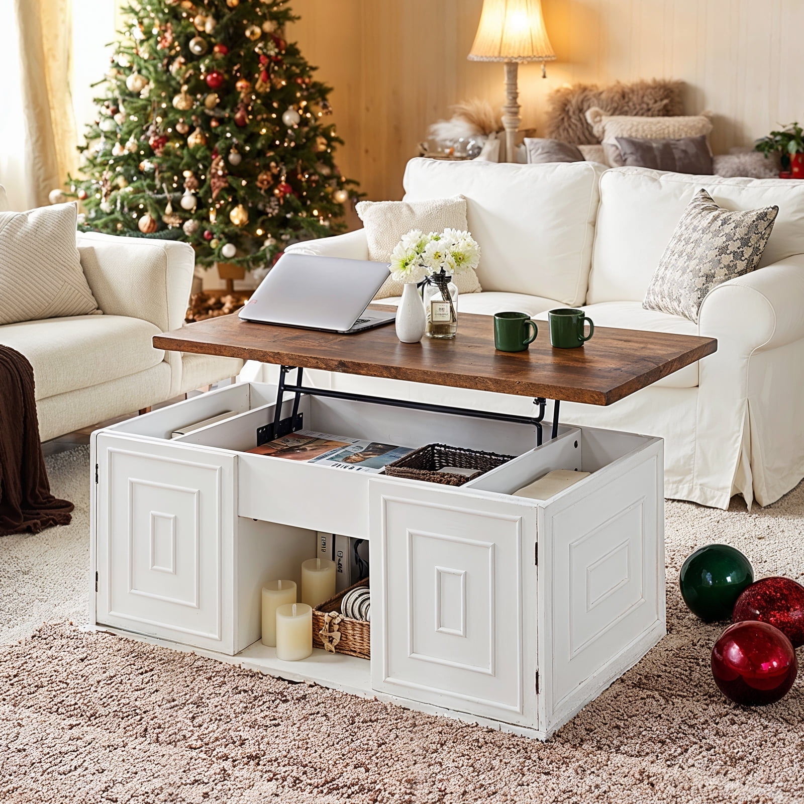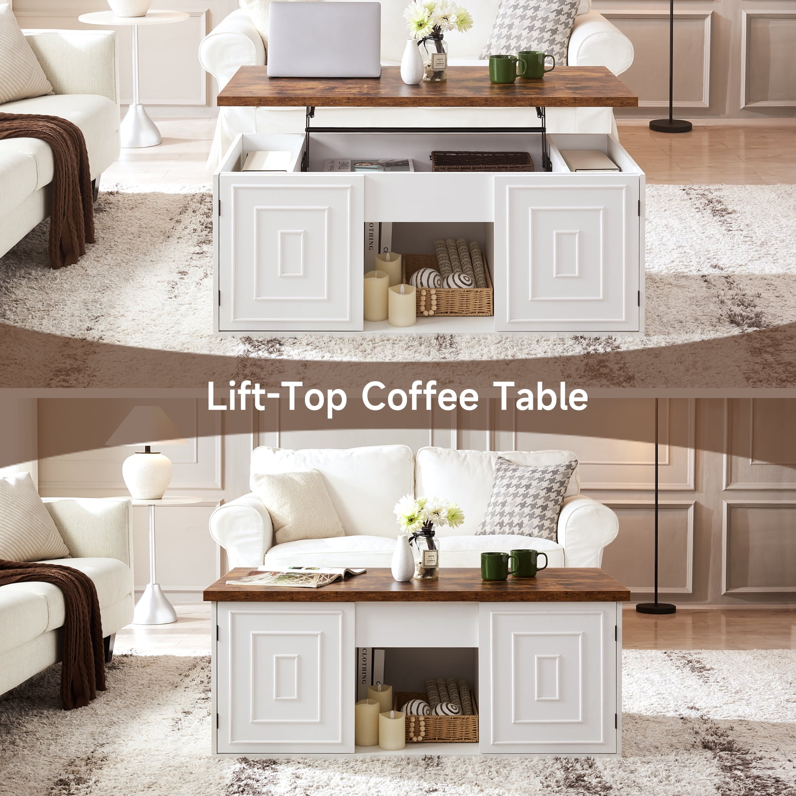 MARNUR 48″ Lift Top Coffee Table with Storage, Rustic Wood, Farmhouse Center Table for Living Room, Rectangle