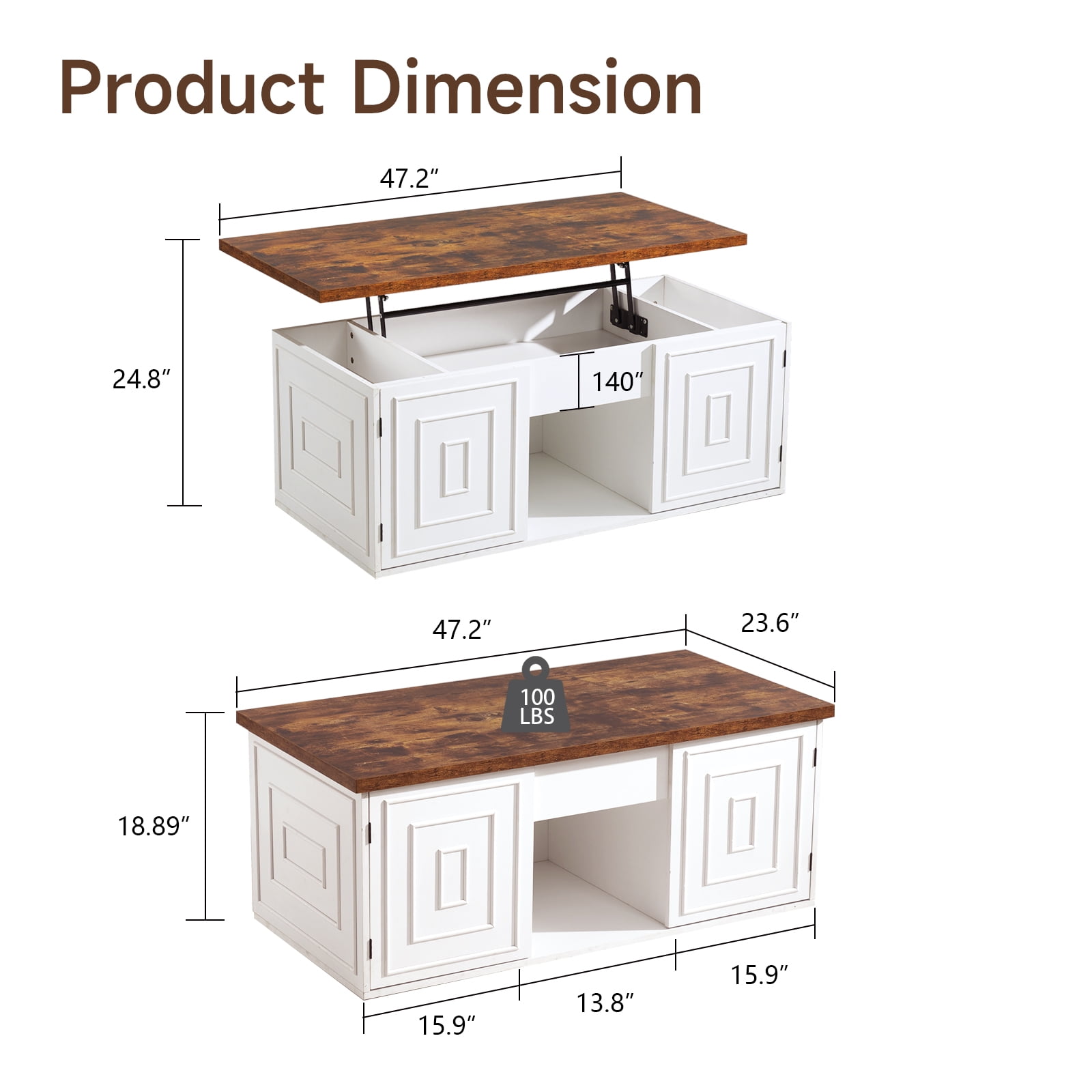 Lift-Top Design – The standout feature of the MARNUR coffee table is its lift-top design, allowing you to effortlessly raise the tabletop to a comfortable height for working, dining, or extra storage. This innovative design provides convenience and versatility, making it an ideal addition to any modern living space. Large Storage Space – Beneath the lift-top surface, you’ll find 3 hidden storage areas to keep your living room essentials organized and out of sight. The lower open shelf & double doors can be placed for laptops, books, remote controllers, etc, maintaining a clutter-free environment. Selected Material – Crafted from high-density engineered wood and paired with a water-proof finish, this coffee table is built to last. The heavy-duty metal lift mechanism ensures smooth and stable operation, while the stable wooden support legs provide robust strength, holding up to 100 lbs. The quality hardware used in the construction of this table guarantees durability and longevity. Farmhouse Style – Embrace the charm of farmhouse style with this beautifully designed coffee table. Its rustic appeal and classic lines make it a perfect centerpiece for your living room, complementing a wide range of interior decor styles. Easy to Assemble – The MARNUR 48″ Lift Top Coffee Table comes with a detailed illustrated user manual, making assembly a breeze. You can quickly set up this functional and stylish piece without any hassle, ready to enhance your living space in no time.