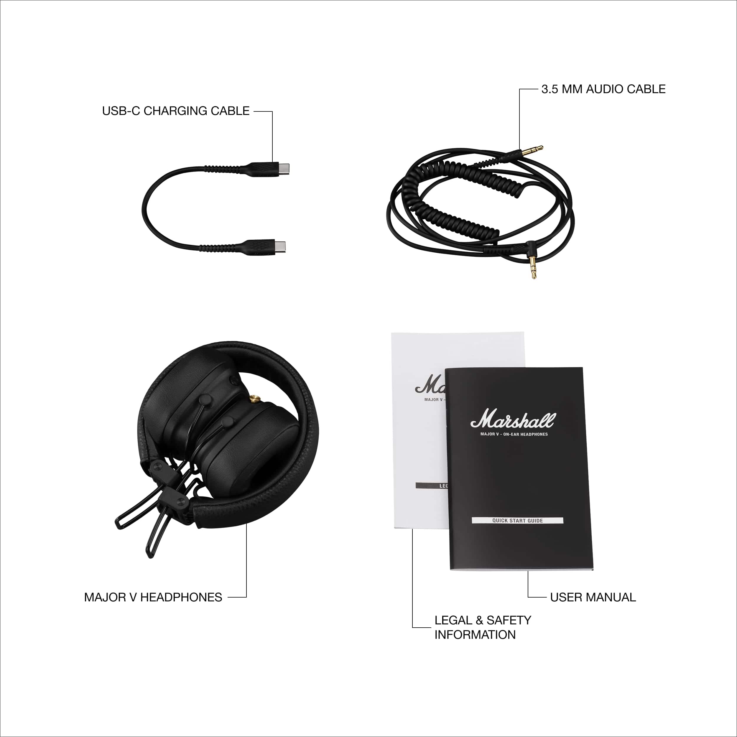 True icons never die; they just get better with time. Major V is no different. From its explosive Marshall signature sound to its everlasting design, every detail of these headphones has been painstakingly considered and refined. Featuring 100+ hours of wireless playtime combined with a rugged and foldable design, Major V is best paired with your next great adventure. With an array of new and updated features, Major V are headphones you can count on and that make the moment count. The M-button gives you direct access to Spotify Tap or you can reconfigure it using the Marshall app to access EQ presets or voice assistant instead. How you use it is up to you. The built-in mic has also been upgraded to reduce wind noise and create better call quality. Taking calls on the road is now smoother than ever. In between the 100+ hours of playtime, Major V’s wireless charging capabilities mean you’ll be back up and running in no time. Help your headphones last even longer by switching on our battery preservation feature which sets a charging limit, ensuring you get the most out of the battery life. Yes, our Major V headphones keep delivering hit after hit.