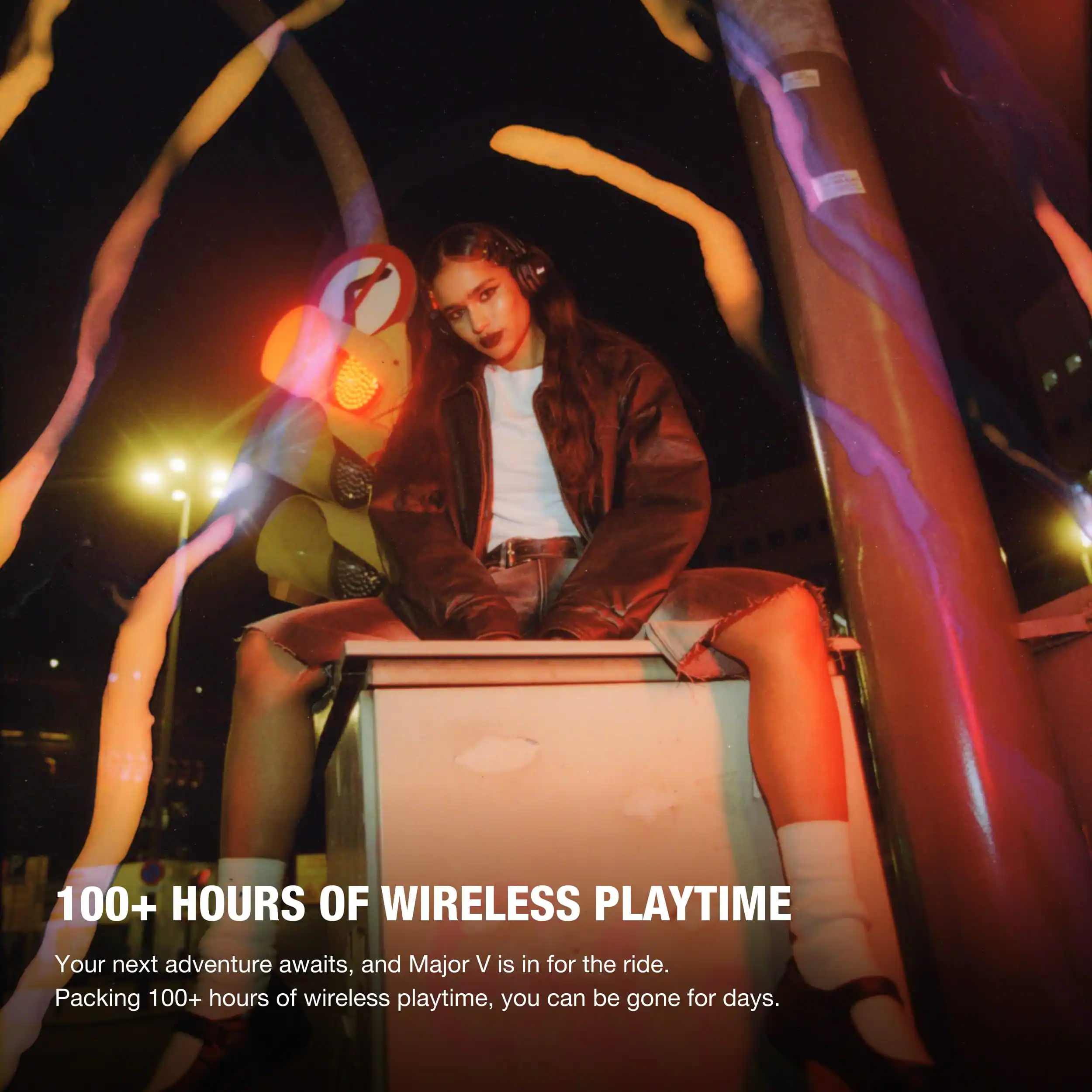 Your next adventure awaits, and Major V is in for the ride. Packing 100+ hours of wireless playtime, you can be gone for days. When you do run out of power, your journey won’t be held up for long, as Major V can be charged using the quick charge option.