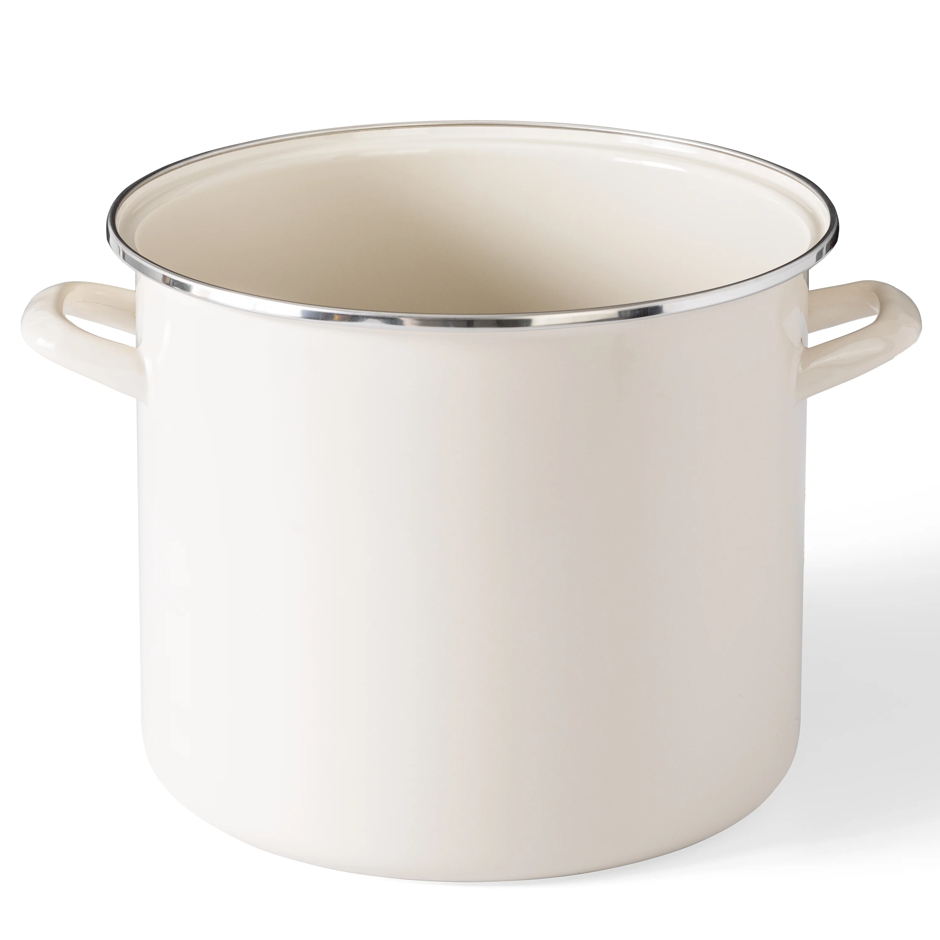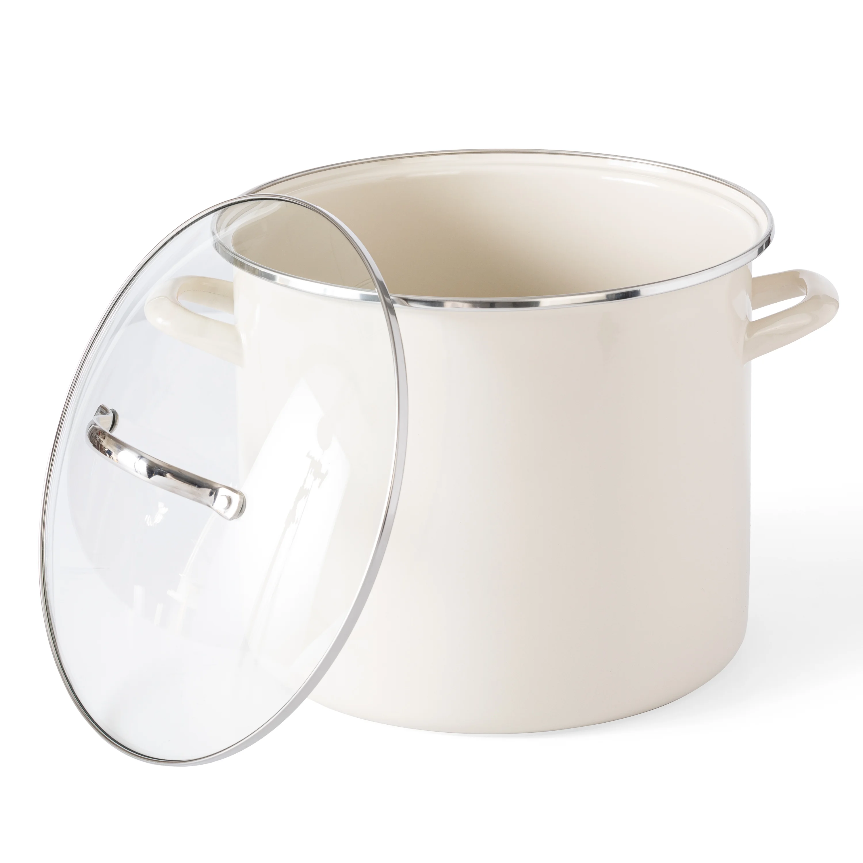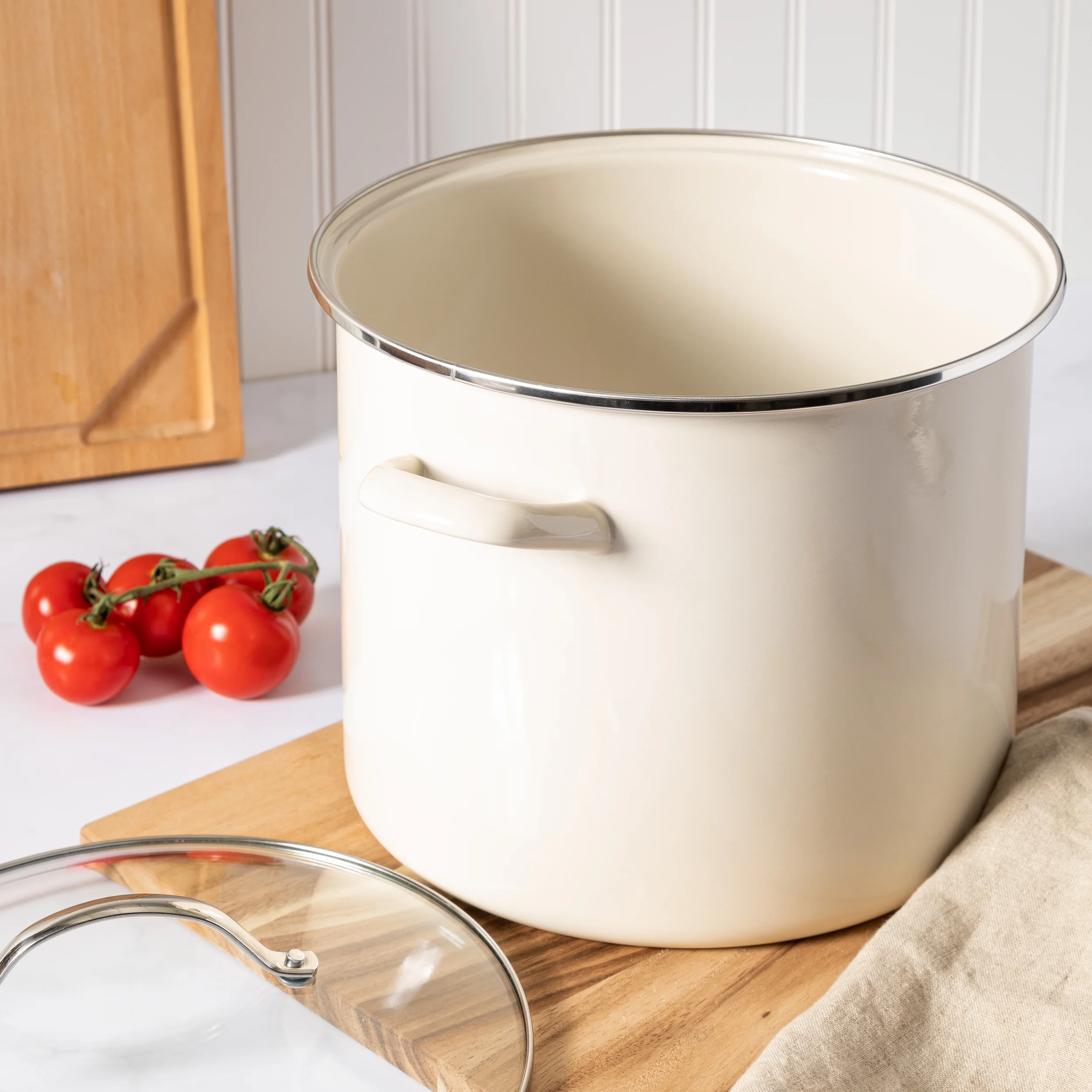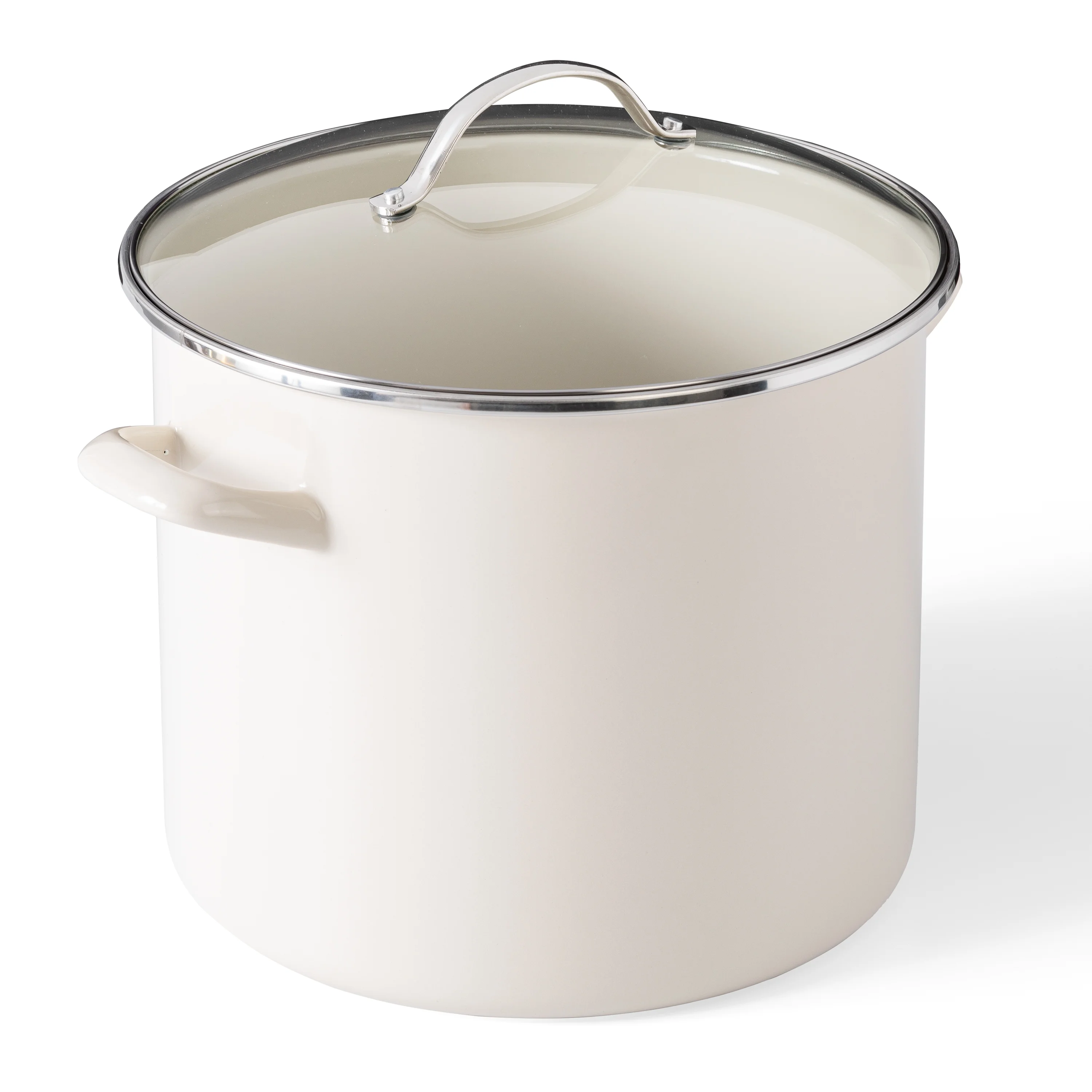Martha Stewart Haverhill 12-Quart Enamel Stock Pot Oven Safe with Glass Lid, Linen