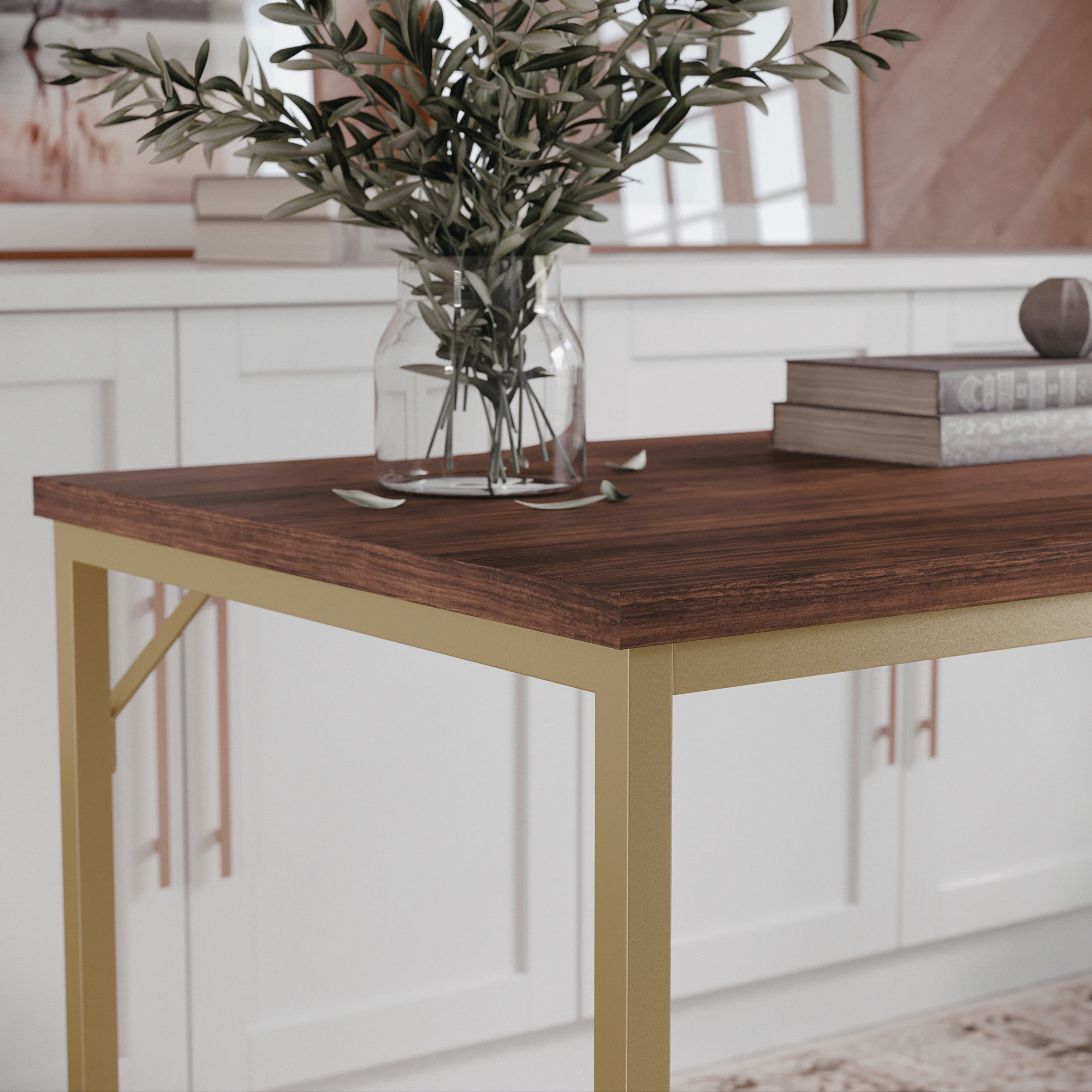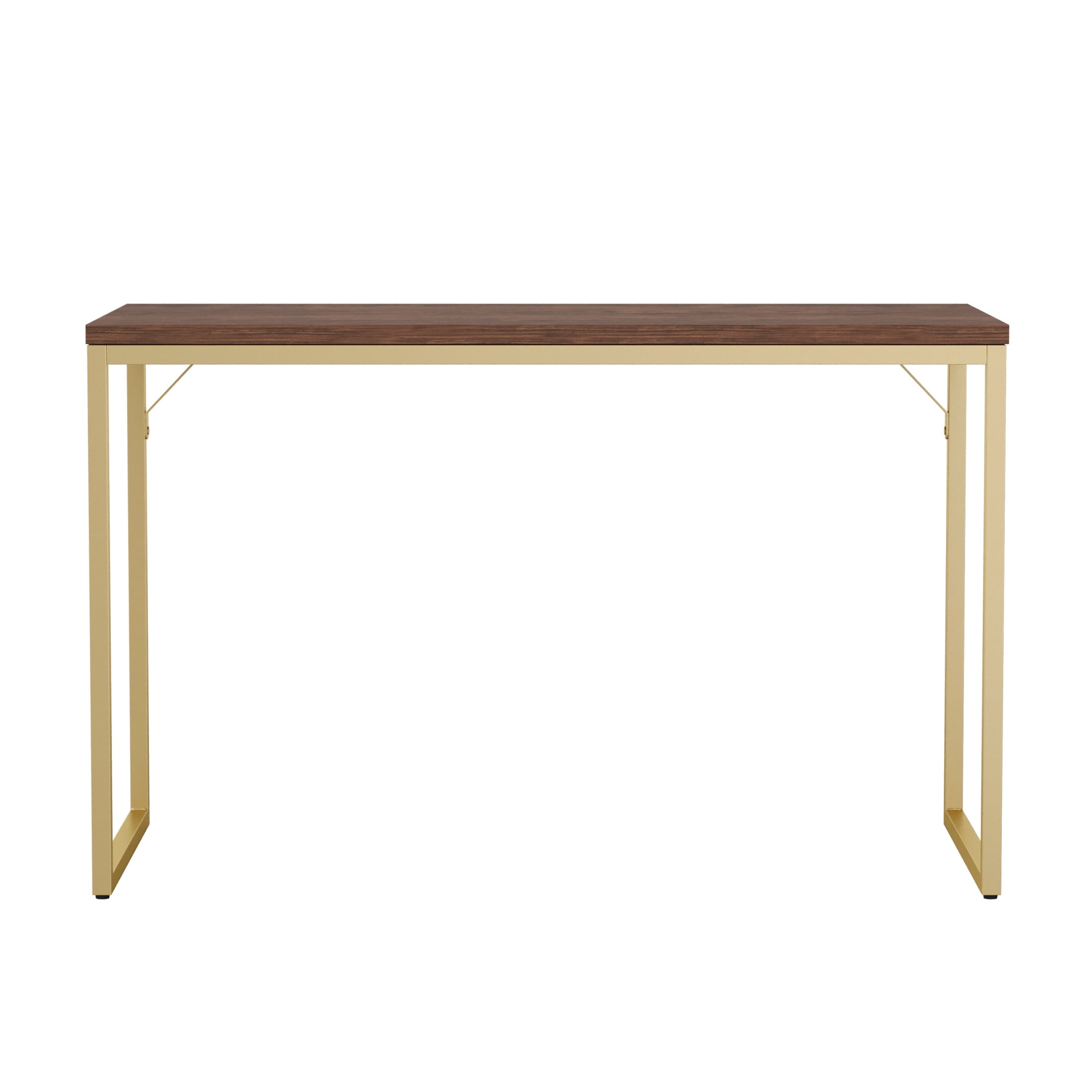 Martha Stewart Noah Home Office Parsons Desk in Walnut Wood Grain with Polished Brass Metal Frame