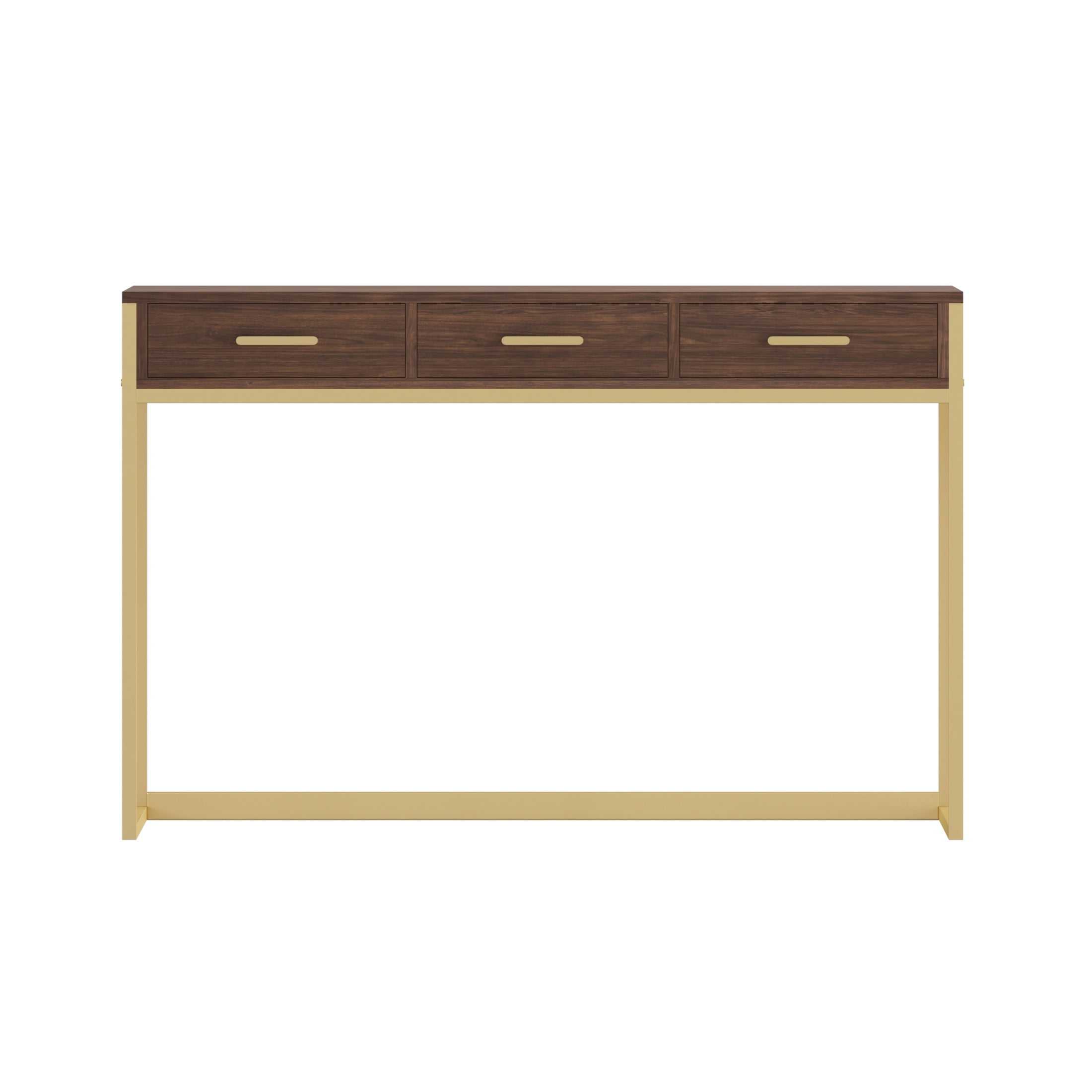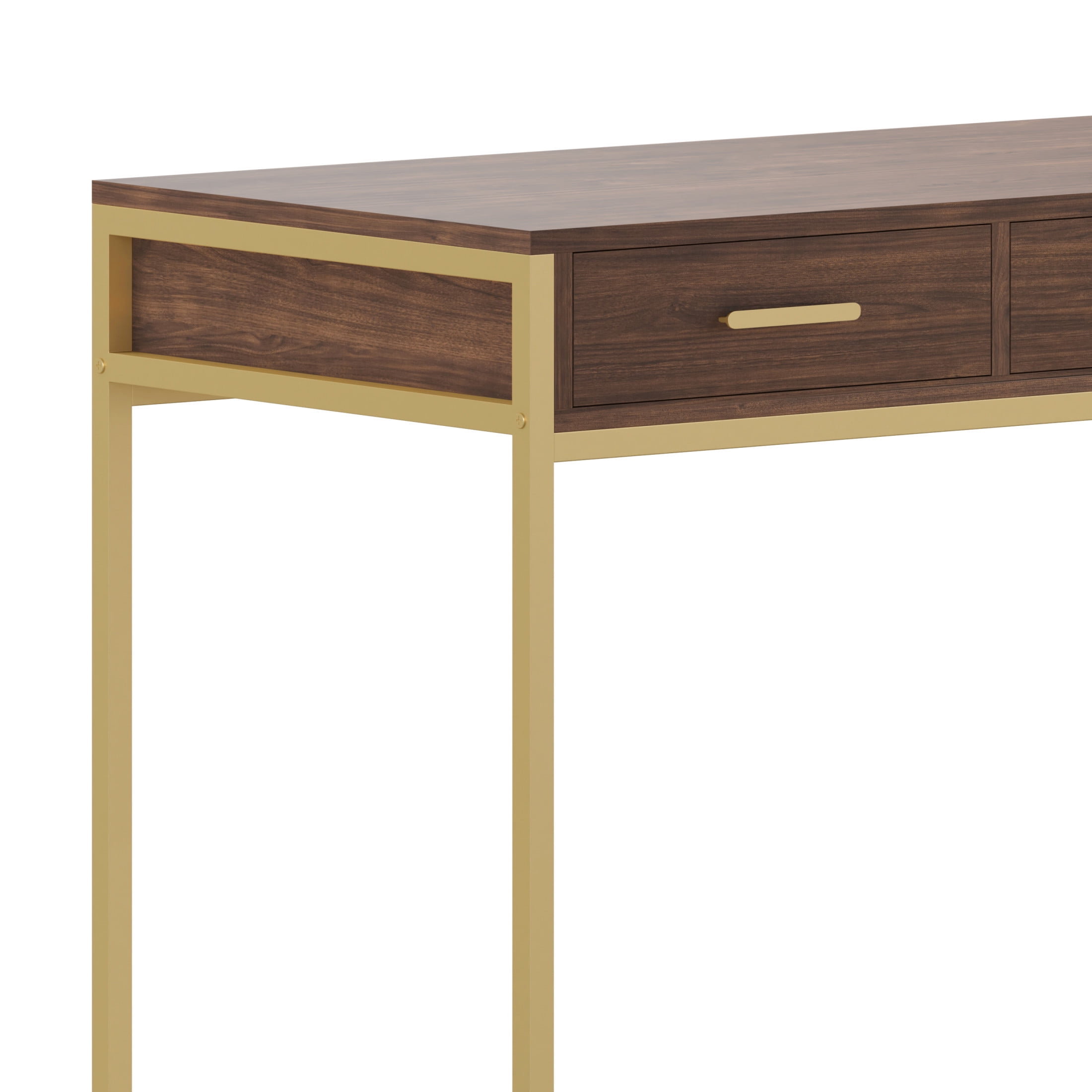 Martha Stewart Ollie Home Office Desk with 3 Drawers in Walnut Wood Grain with Polished Brass Hardware