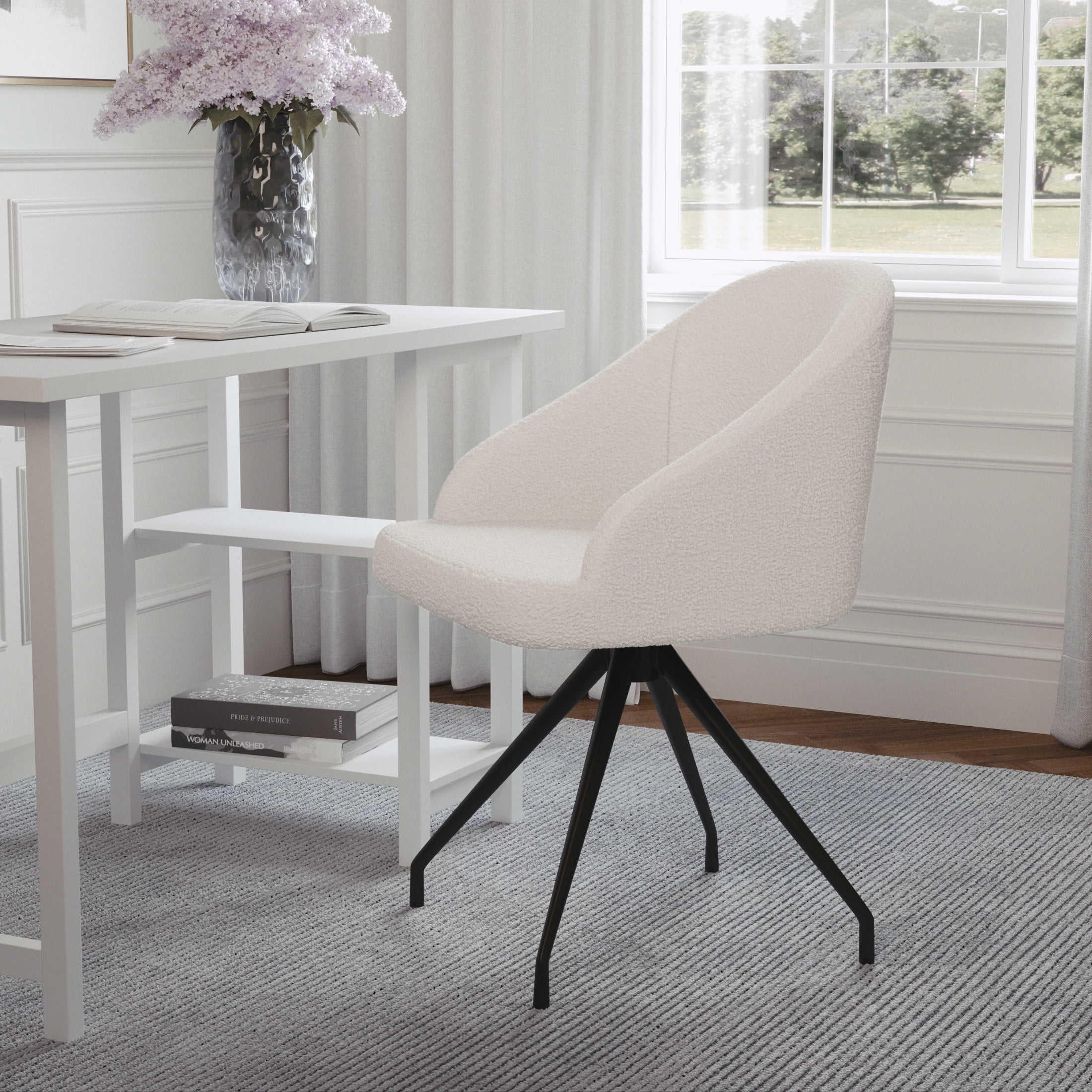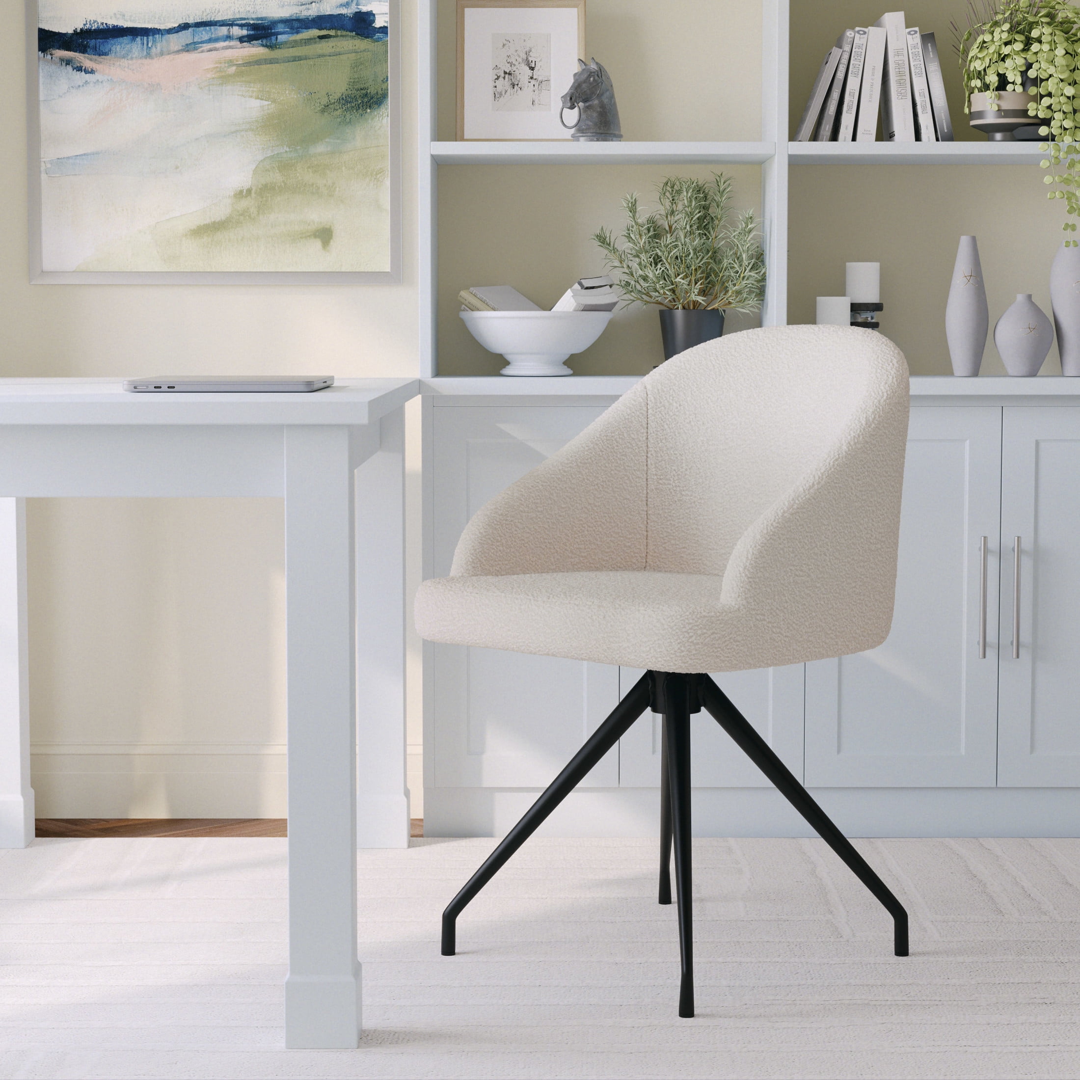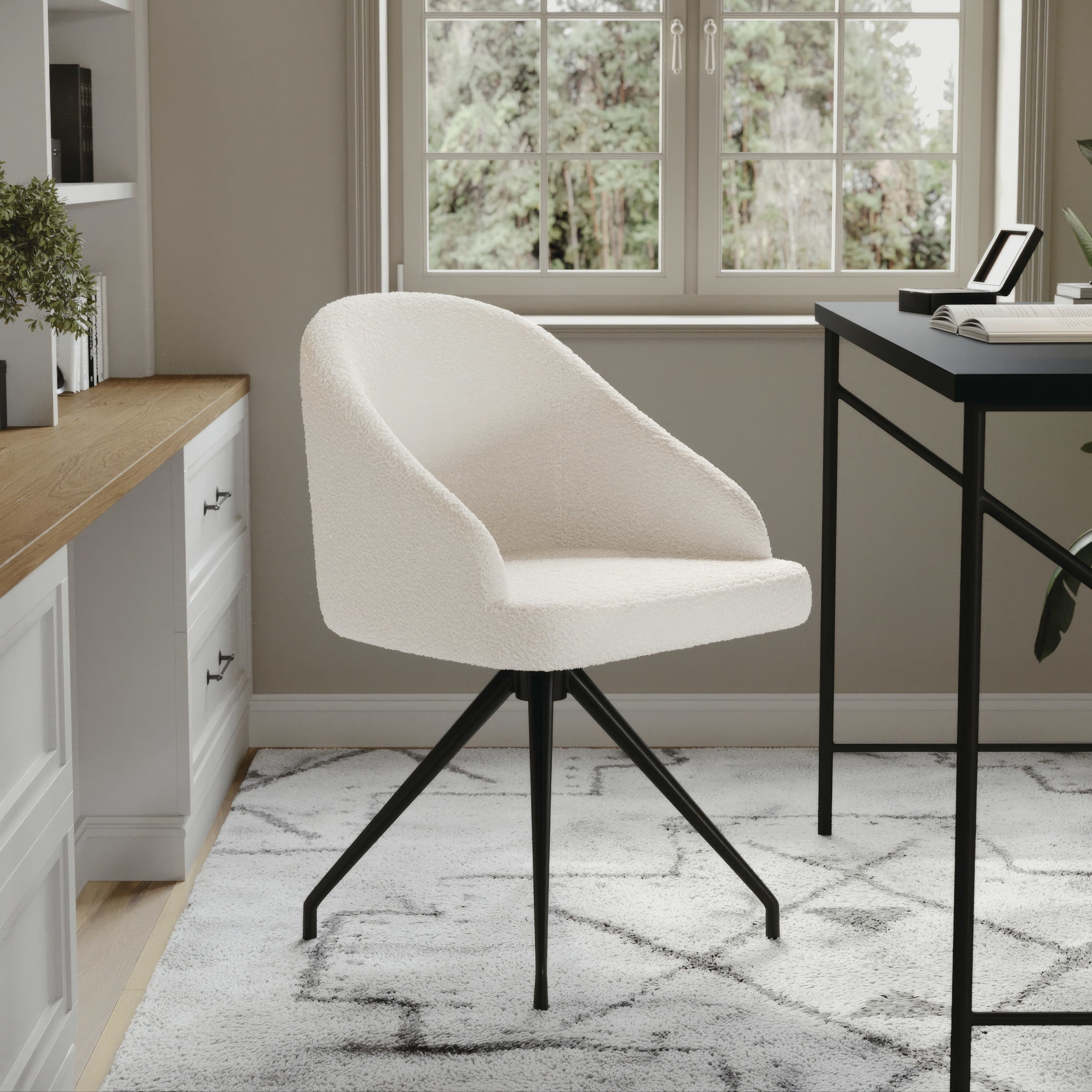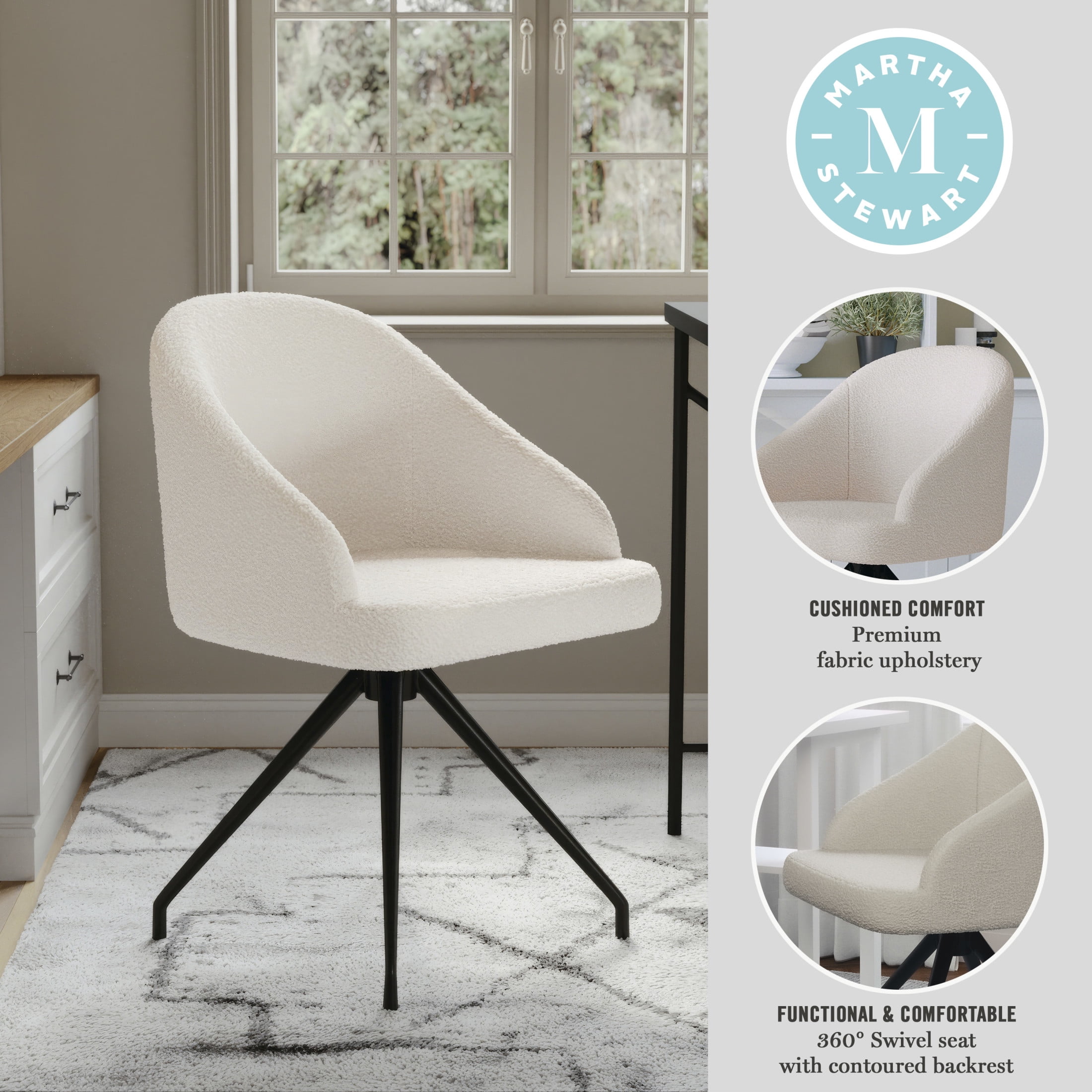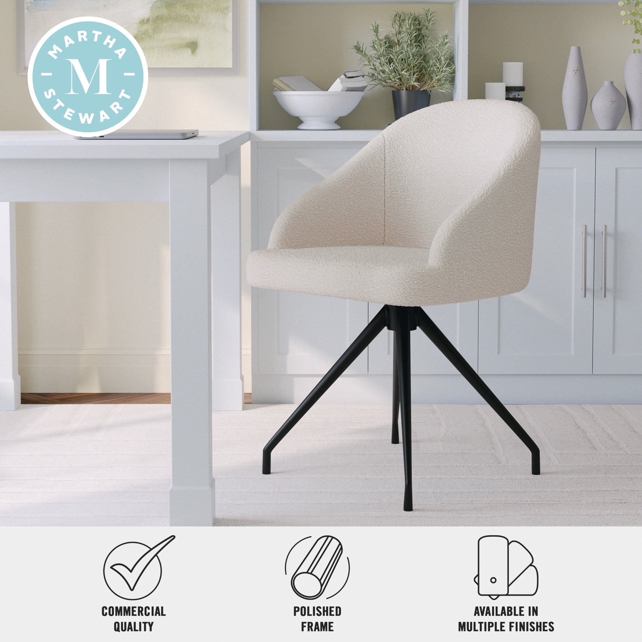 The Martha Stewart Sora Office Chair is a more sophisticated working version of the traditional accent chair. Stationary legs paired with a 360° swivel seat lend understated elegance to your work space. This boucle upholstered desk chair features a timeless oil rubbed bronze frame and a gently contoured backrest to keep you comfortable throughout your workday. Assembly is easy with the included tools and step-by-step instructions.
