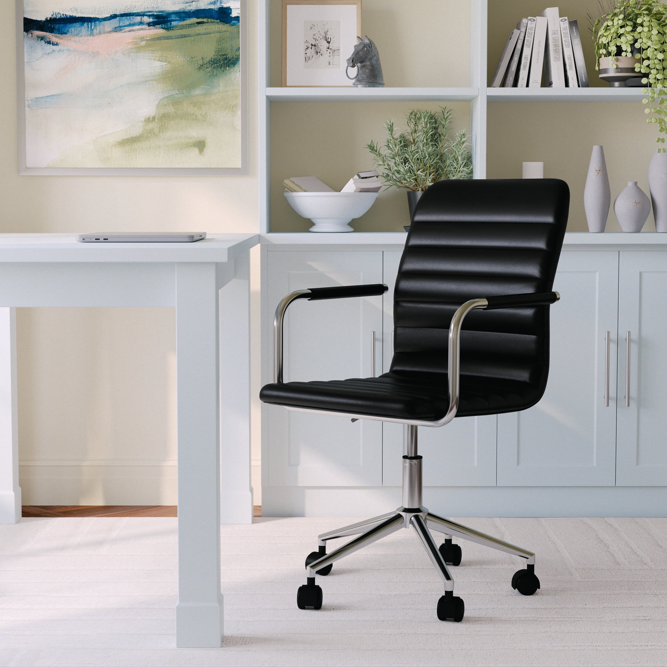 Martha Stewart Taytum Upholstered Office Chair in Black/Polished Nickel