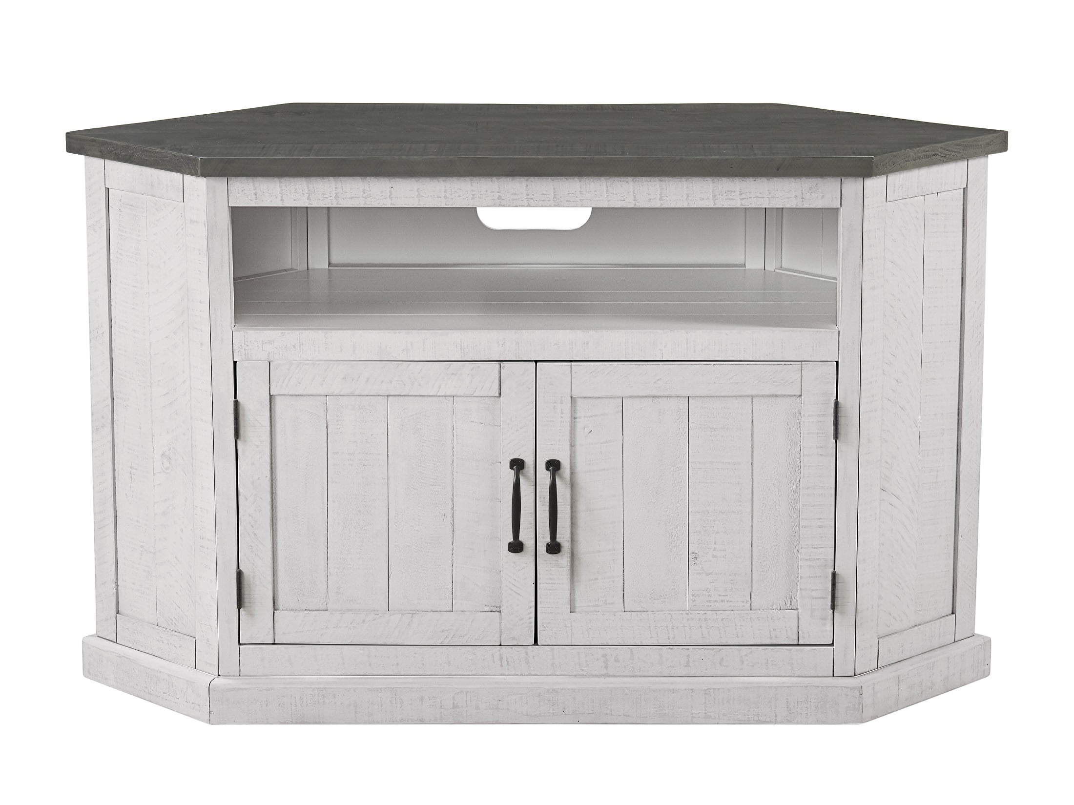 Martin Svensson Home Rustic 50″ Corner TV Stand White Stain with Grey Top
