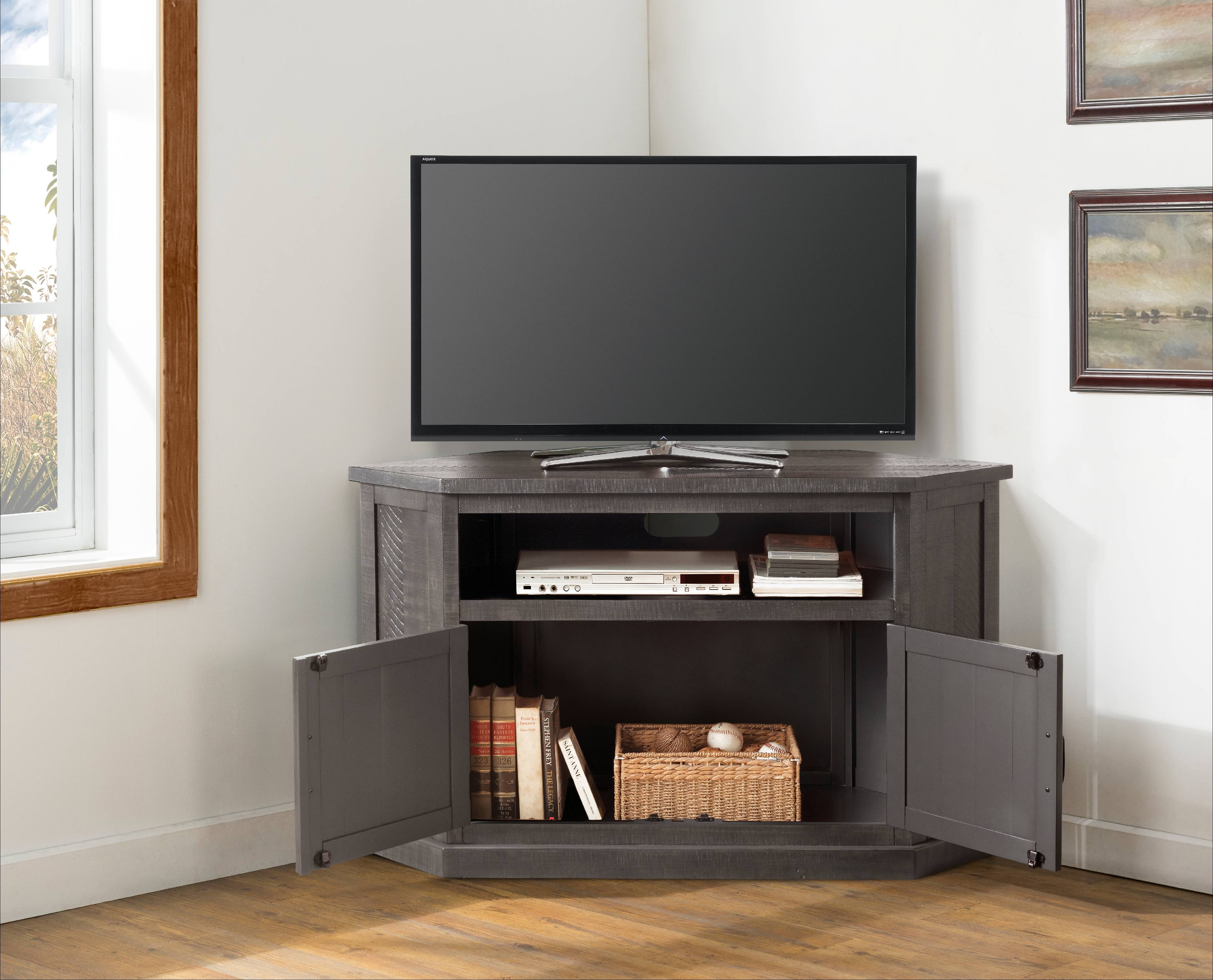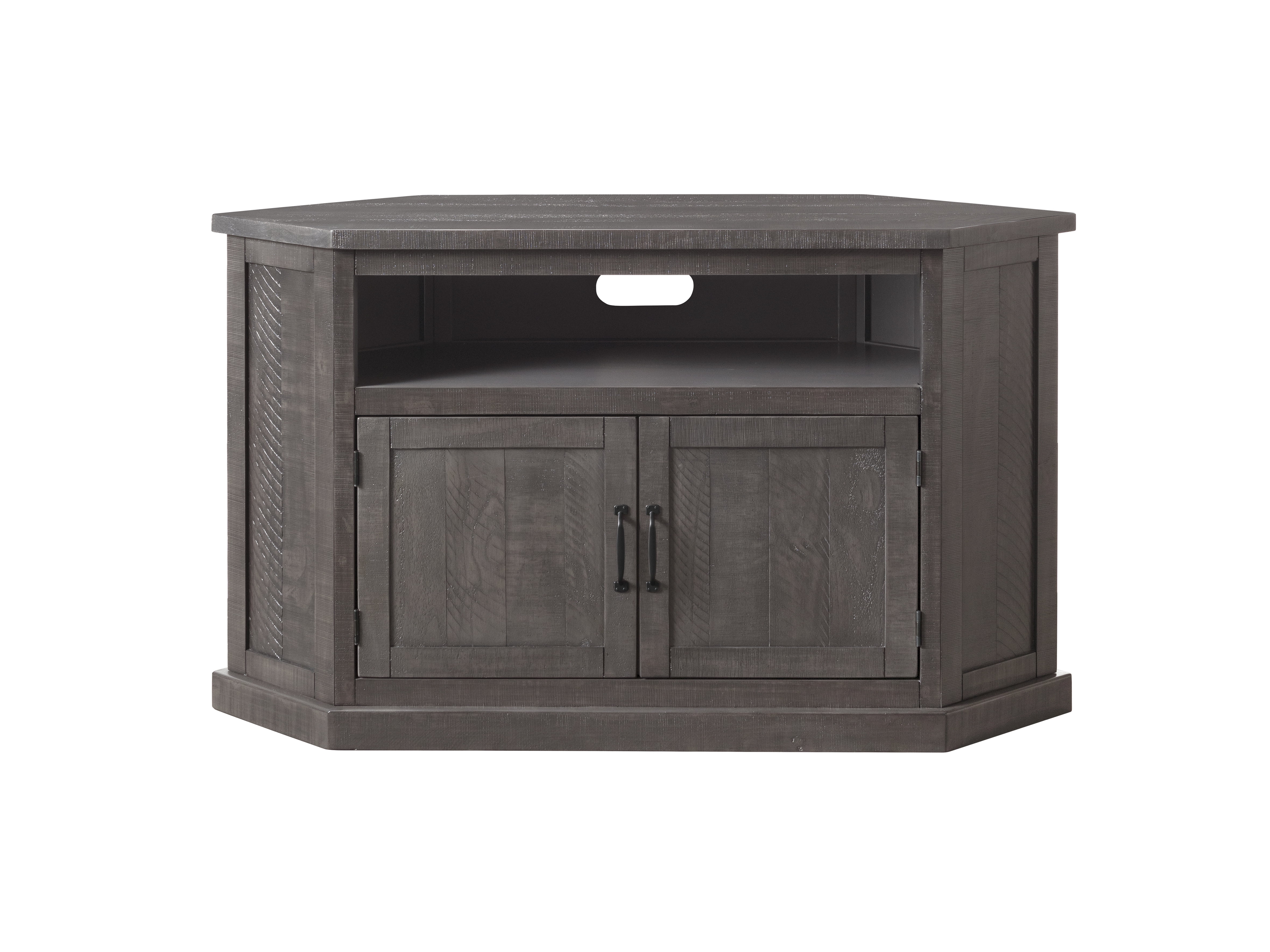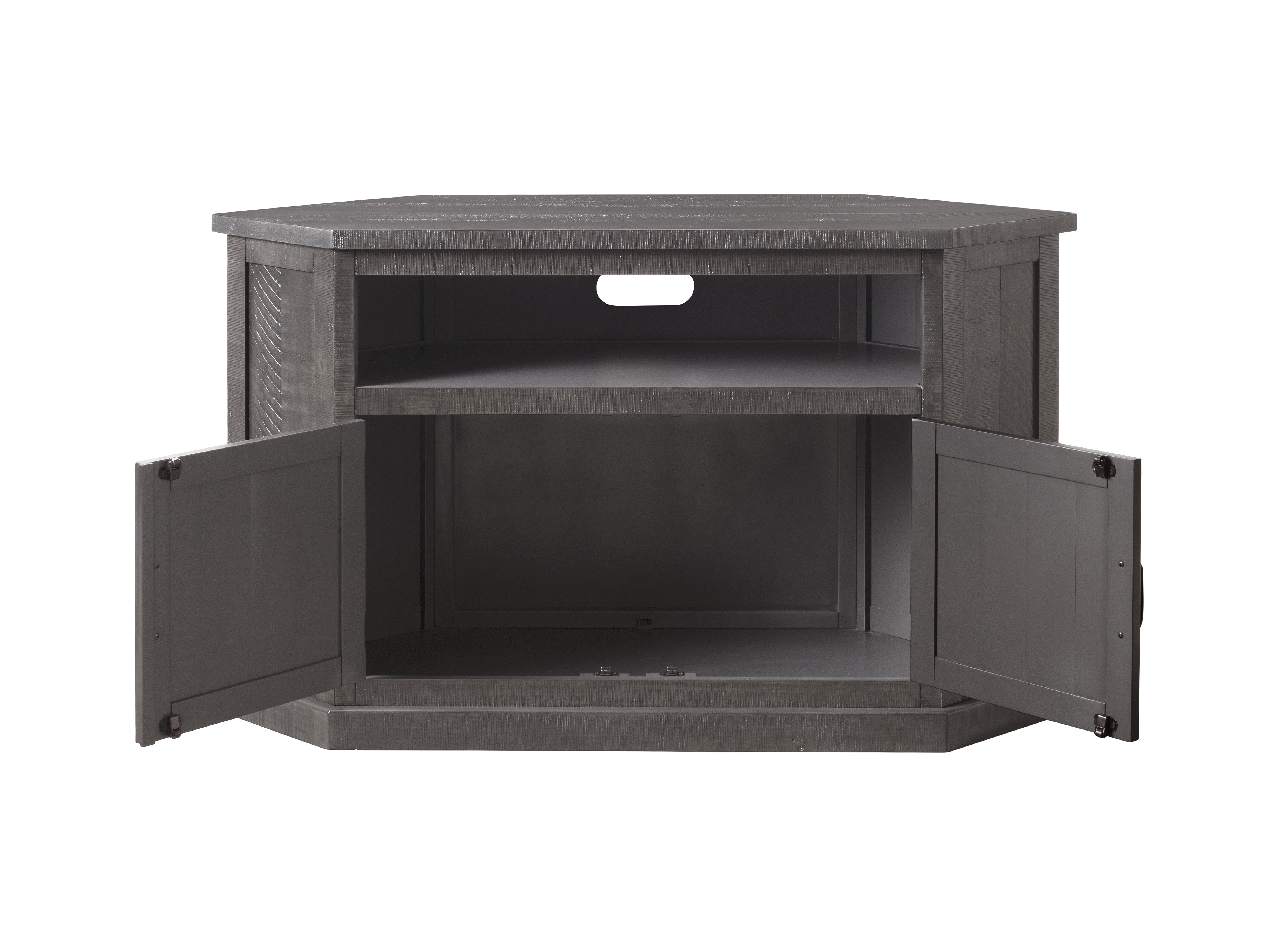 The Rustic Corner TV Stand is designed to maximize space in the living room while not compromising on function and style. Constructed from solid New Zealand Pine with rough sawn details that offers just the right amount of distressing that can blend easily with other rustic, distressed, warehouse, farmhouse or loft looks. An open cubby spans across the TV Stand and offer plenty of room for cable box, gaming systems, or a sound bar. The large cabinet design provides for versatile storage options for additional audio, video, gaming components, or other belongings. Ideal for flat panel TVs up to 55”. Custom finished black hardware. Features the Lightning Fast Assembly System which allows for easy and fast assembly. Features: Finish: Gray Constructed of solid wood – New Zealand Pine Corner TV stand design perfectly fits in the corner of the living room for extra space saving Open cubby offers plenty of room for cable box, gaming systems, or a sound bar Large cabinet design provides for versatile storage options for additional audio, video, gaming components, or other belongings Ideal for most 55″ flat panel TVs Cubby opening dimensions: 31″ W x 6.5″ H Specifications: Product Dimensions: 50″ W x 30″ H x 19″ D Surface Material: Pine Assembly details: Adult Assembly Required, No Tools Needed Furniture Subtype: Corner TV Stands Assembly Required: Yes, Features the Lightning Fast Assembly System