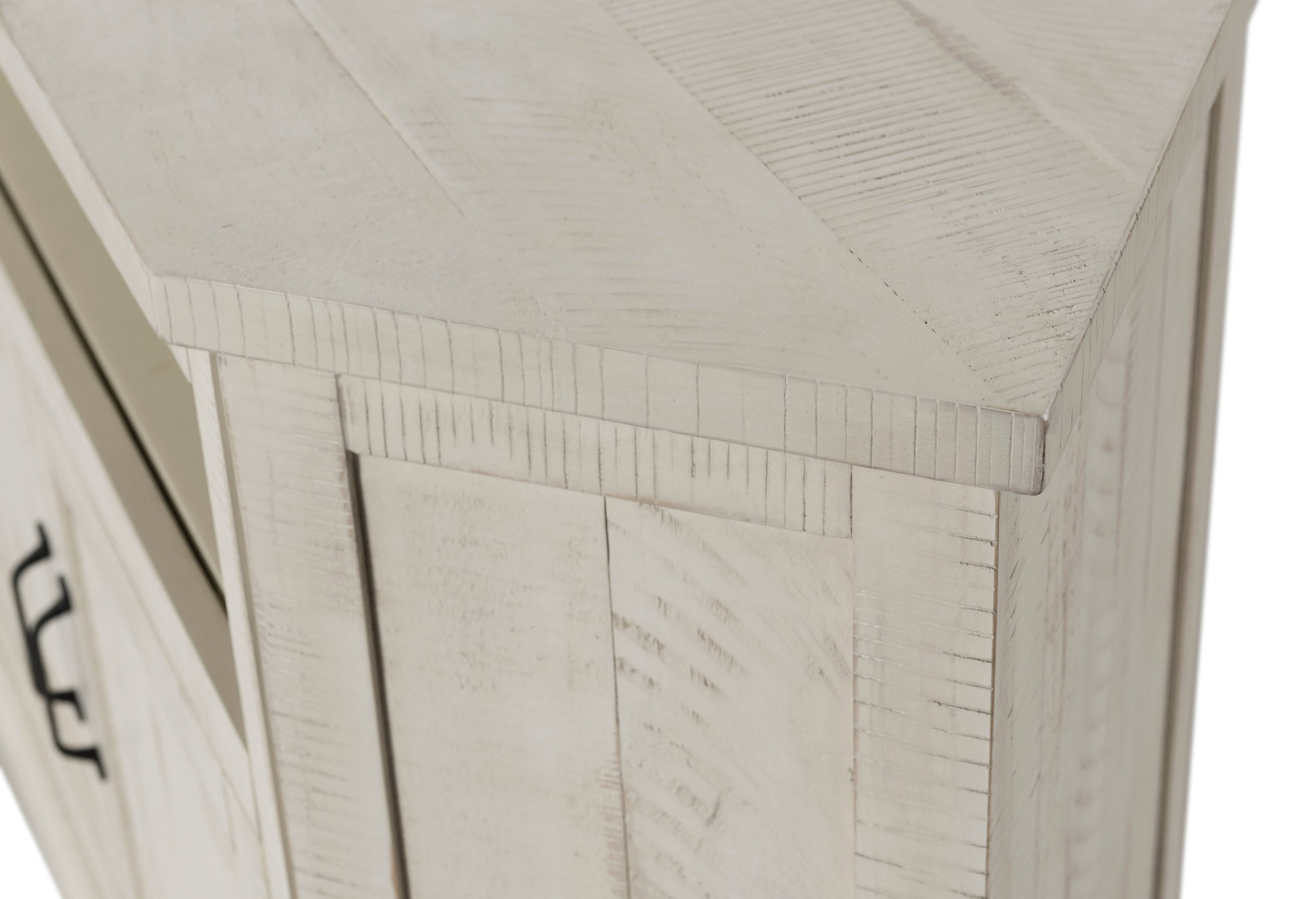 The Rustic Corner TV Stand is designed to maximize space in the living room while not compromising on function and style. Constructed from solid New Zealand Pine with rough sawn details that offers just the right amount of distressing that can blend easily with other rustic, distressed, warehouse, farmhouse or loft looks. An open cubby spans across the TV Stand and offer plenty of room for cable box, gaming systems, or a sound bar. The large cabinet design provides for versatile storage options for additional audio, video, gaming components, or other belongings. Ideal for flat panel TVs up to 55”. Custom finished black hardware. Features the Lightning Fast Assembly System which allows for easy and fast assembly. Features: Finish: Antique White Constructed of solid wood – New Zealand Pine Corner TV stand design perfectly fits in the corner of the living room for extra space saving Open cubby offers plenty of room for cable box, gaming systems, or a sound bar Large cabinet design provides for versatile storage options for additional audio, video, gaming components, or other belongings Ideal for most 55″ flat panel TVs Cubby opening dimensions: 31″ W x 6.5″ H Specifications: Product Dimensions: 50″ W x 30″ H x 19″ D Assembly Required: Yes, Features the Lightning Fast Assembly System