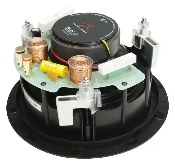 Ideal for installation in a bathroom, kitchen or other small room, this MartinLogan HELOS12 in-ceiling speaker features a Vojtko crossover, plus a 6-1/2″ aluminum-cone woofer and a 1″ neodymium soft-dome tweeter, for high-quality audio.