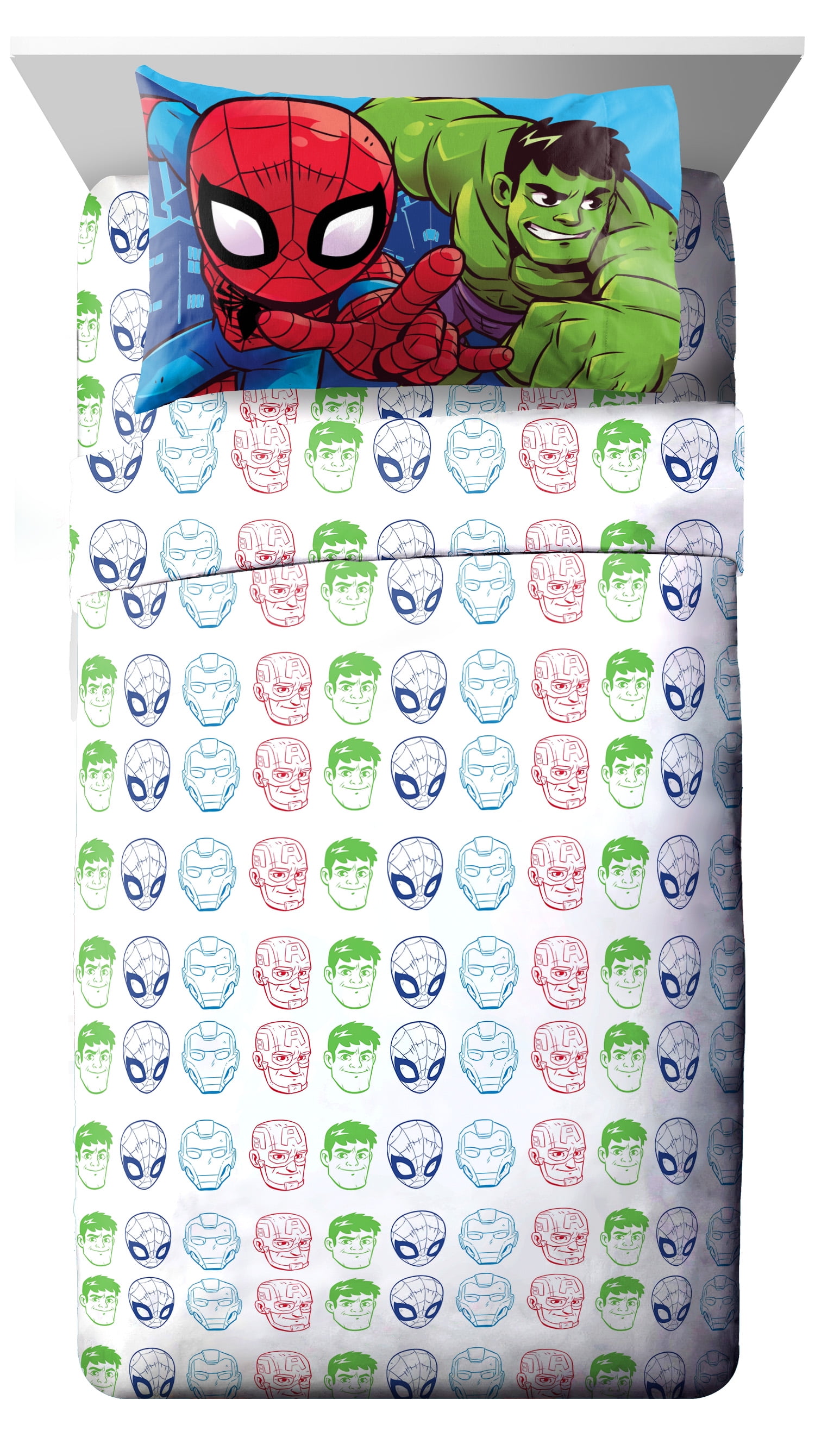 Marvel 4-Piece Superhero Amigos Toddler Bed Set, 100% Microfiber, Blue
