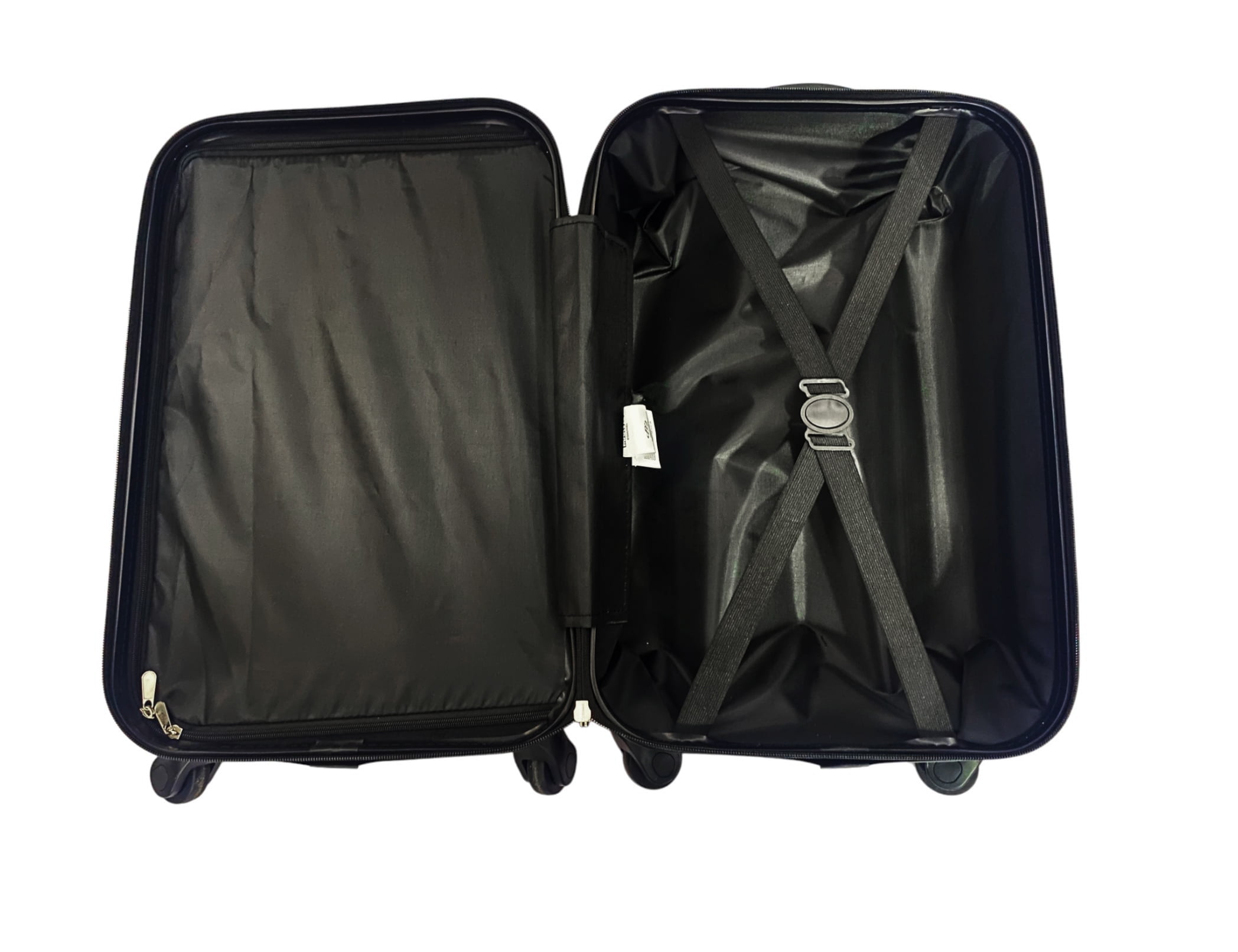 Hard Side Luggage;Double Zippers; Fully lined; 4 Spinner Wheels; Push button telescopic pull handle; Inside secure elastic straps; Size: 22″ H x 14.75″ W x 9″ D Height is With Wheels
