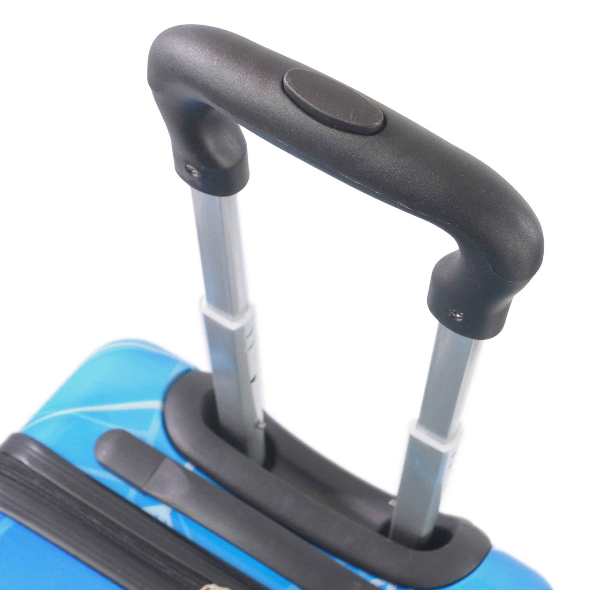 Use your Spidey Sense and keep your belongings conveniently and efficiently stored in one place while breezing through the airport or hotel lobby with this stylish Spider-Man kid rolling luggage on wheels. Designed with a striking image of Spider-Man against a blue background, this hard shell carry on luggage features four 360 degree spinner wheels which allow for smooth travel over all types of textured surfaces, and the lightweight hard sided luggage with spinner wheels features a retractable pull handle so you can reach your destination without hassle. The hard case luggage features a sizable polyester-lined main zip compartment for easy packing, a zip wet dry compartment for personal essentials, and clothing compression straps to keep clothing from wrinkling. The light weight carry on luggage roller features a hard shell ABS plastic case which protects your luggage and is easy to spot clean to keep the carry on luggage with wheels looking stylish during travel. The travelling bag with wheels measures 21 H x 13.5 W x 8.5 D in inches, and weighs 6 lbs. Backed by a 5 year warranty.