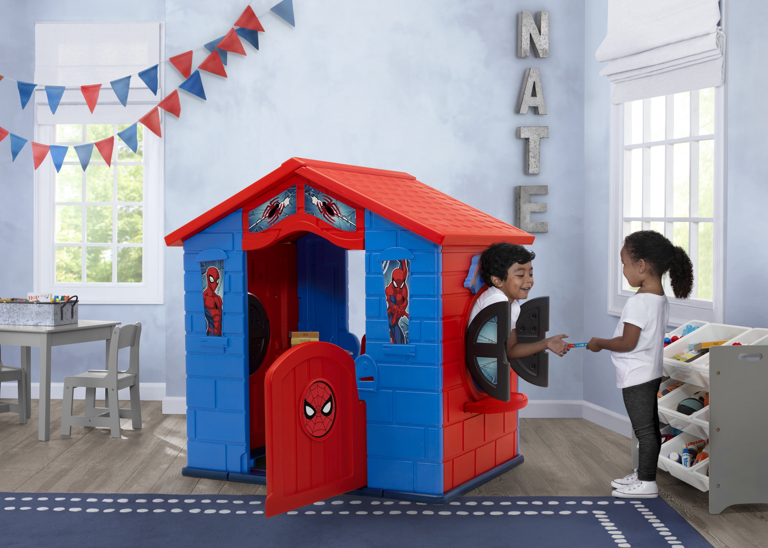 Marvel Spider-Man Plastic Indoor/Outdoor Playhouse with Easy Assembly by Delta Children, Blue/Red