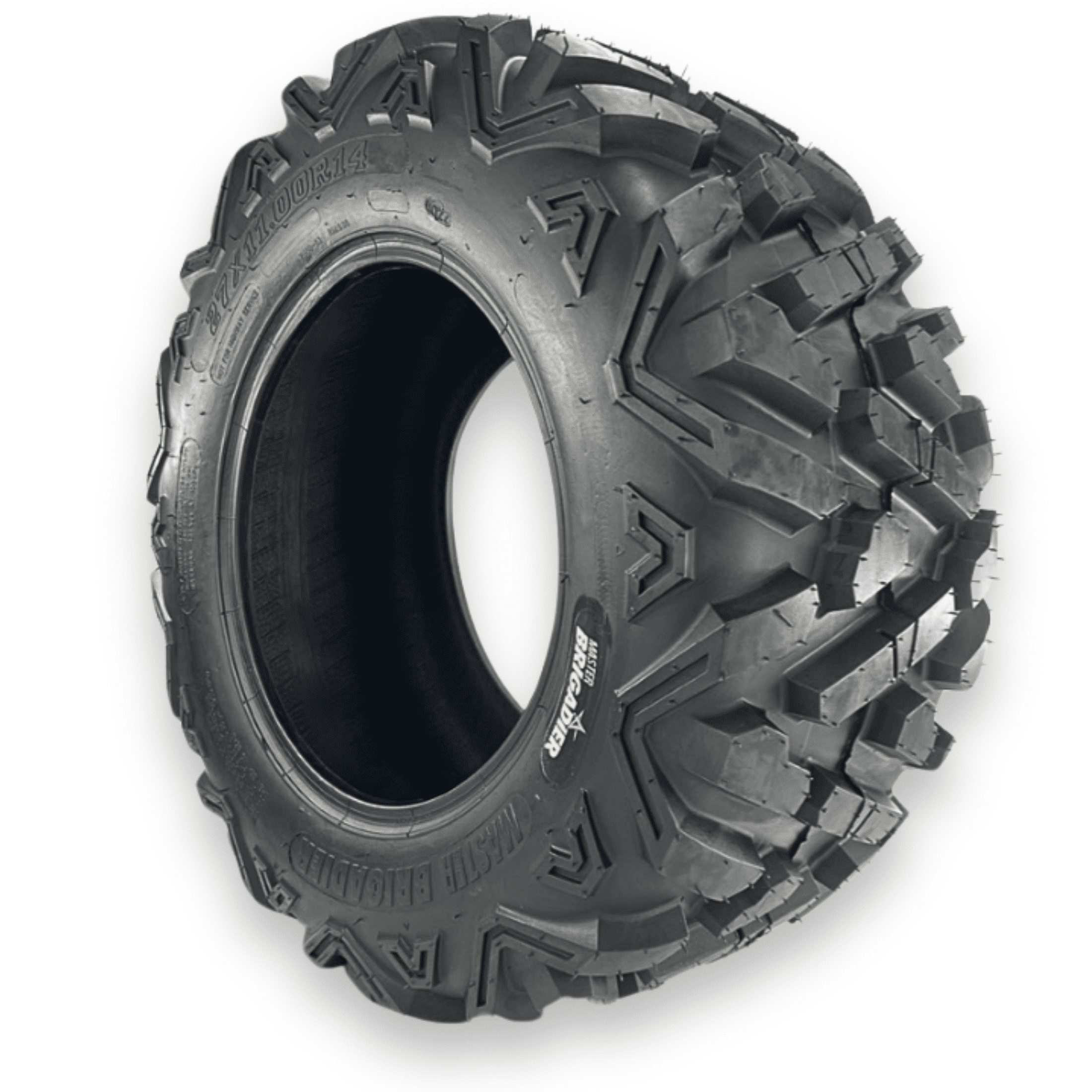 Master Brigadier FEATURES AND BENEFITS All terrain traction Heavy-duty controllability Longer lasting tread life OVERVIEW The Master Brigadier is an all terrain, all season tire manufactured for ATVs and UTVs. The tire greatly improves the all terrain traction. The aggressive tread design’s zigzag lug placement and high void ratio greatly enhance the soft, loose, and uneven terrain grip. These tread elements enable the tire to boost the forward motion at all times. The tread design enables the tire’s deep mud and loose terrain performance. The tread design also keeps the footprint clean, by eliminating mud and snow from the footprint and preventing them from blocking the surface contact. This combination guarantees a safer versatile terrain grip. The reinforced internal structure and the ideal tread design allow the tire to greatly enhance the heavy-duty controllability. The strengthened construction keeps the ideal tire shape under the load and driving pressure. This significantly improves the load carrying ability. The ideal shape and the tread’s surface contact greatly enhance the surface contact, upgrading the controllability. This promotes a secure steering responsiveness and driving stability. This promotes better handling and performing durability. The Brigadier upgrades the length of the usability. The stronger compound, the self-cleaning ability and the durable construction work together to lengthen the usability. The compound utilizes wear-resistant rubber materials in order to prevent premature wear formations. The tread pattern avoids stone retention by ejecting rocks from the footprint, and not allowing them to drill into the casing. This combination improves the service and tread life. When it comes to ATV tires, there might be slight visual differences between brands and models even if the tires are of the same size. NOT FOR HIGHWAY USE: This tire model is not DOT-approved for highway use. Manufacturers recommend changing tires every 10 years. As long as tires are properly stored before they are sold, the year of their manufacture will not shorten their service life.