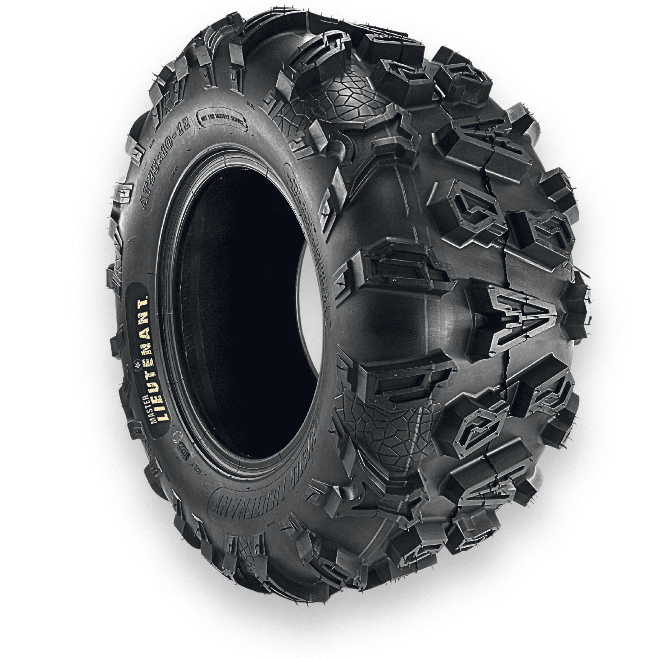 Master Lieutenant FEATURES AND BENEFITS Upgraded load durability Mud terrain traction Enhanced controllability OVERVIEW The Master Lieutenant is a mud terrain, all season tire manufactured for ATVs and UTVs. This model was designed with lightweight construction, which optimizes the tire’s performance. This structure features bias plies, which are designed for exceptional load durability and driving stability. Bias-ply tires are created for heavy-duty applications, as they prevent the tire from deforming under pressure. As a result, the structure significantly boosts the tire’s load-handling capability. The tread design features staggered blocks arranged in a zigzag pattern from one shoulder to the other. They work with the void ratio in order to upgrade the tire’s off-road terrain traction. In this manner, the tire manages to increase soft, loose, and uneven terrain performance, providing the necessary number of biting edges to grip the surface. The void ratio avoids stone retention and keeps the footprint clean. This is due to these elements not being able to pack between the tread blocks, which further boosts the off-road terrain driving safety. The Master Lieutenant also uses its directional tread design to upgrade its controllability. As a result, the tire manages to boost its steering responsiveness and driving stability. Therefore, the consistent surface contact provides a quick and precise steering response, while the structure is secured against the driving pressure. This allows the driver to securely control the vehicle on versatile terrain surfaces. This tire has a BIASED ply structure. When it comes to ATV tires, there might be slight visual differences between brands and models even if the tires are of the same size. NOT FOR HIGHWAY USE: This tire model is not DOT-approved for highway use. Manufacturers recommend changing tires every 10 years. As long as tires are properly stored before they are sold, the year of their manufacture will not shorten their service life.