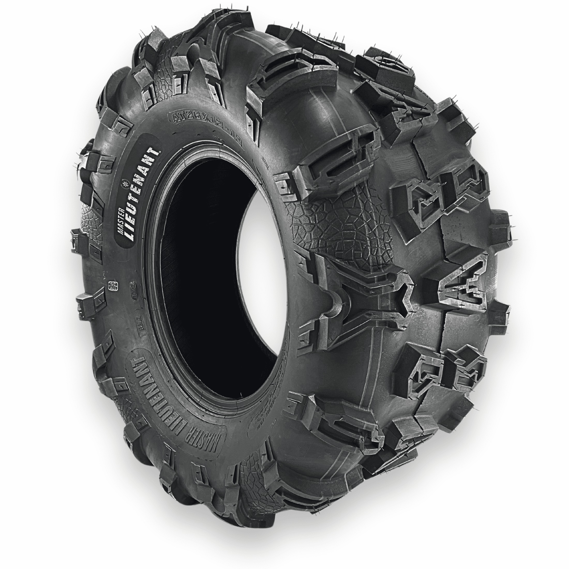 Master Lieutenant FEATURES AND BENEFITS Upgraded load durability Mud terrain traction Enhanced controllability OVERVIEW The Master Lieutenant is a mud terrain, all season tire manufactured for ATVs and UTVs. This model was designed with lightweight construction, which optimizes the tire’s performance. This structure features bias plies, which are designed for exceptional load durability and driving stability. Bias-ply tires are created for heavy-duty applications, as they prevent the tire from deforming under pressure. As a result, the structure significantly boosts the tire’s load-handling capability. The tread design features staggered blocks arranged in a zigzag pattern from one shoulder to the other. They work with the void ratio in order to upgrade the tire’s off-road terrain traction. In this manner, the tire manages to increase soft, loose, and uneven terrain performance, providing the necessary number of biting edges to grip the surface. The void ratio avoids stone retention and keeps the footprint clean. This is due to these elements not being able to pack between the tread blocks, which further boosts the off-road terrain driving safety. The Master Lieutenant also uses its directional tread design to upgrade its controllability. As a result, the tire manages to boost its steering responsiveness and driving stability. Therefore, the consistent surface contact provides a quick and precise steering response, while the structure is secured against the driving pressure. This allows the driver to securely control the vehicle on versatile terrain surfaces. This tire has a BIASED ply structure. When it comes to ATV tires, there might be slight visual differences between brands and models even if the tires are of the same size. NOT FOR HIGHWAY USE: This tire model is not DOT-approved for highway use. Manufacturers recommend changing tires every 10 years. As long as tires are properly stored before they are sold, the year of their manufacture will not shorten their service life.