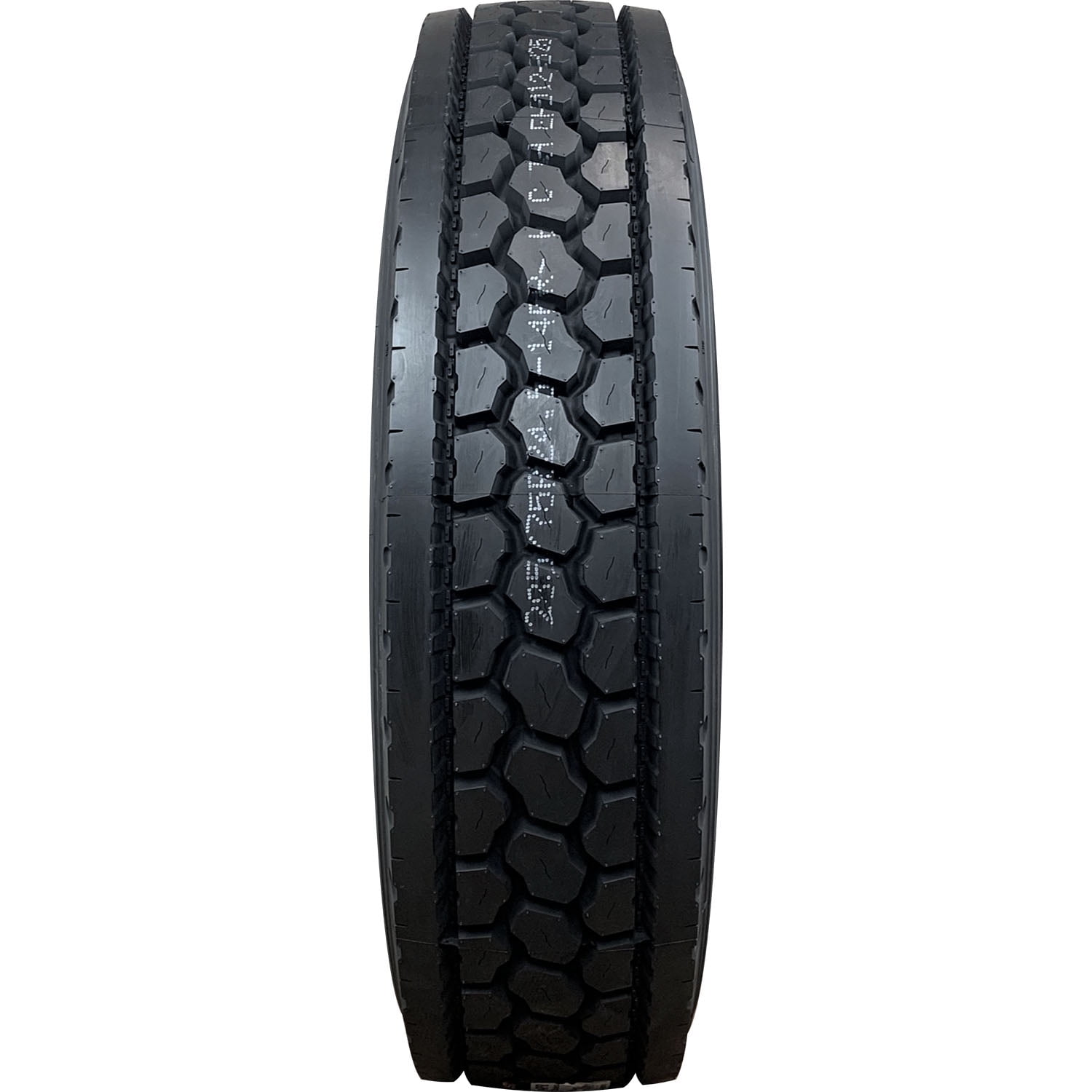 Designed for use on the drive axle of medium-duty commercial trucks and buses Angled tread blocks and zigzag grooves force rocks, stones, mud, dirt, water, slush, and snow out of the tread for consistent traction Built with four steel belts that increase strength and durability for a higher load carrying capacity and longer tread life Wide shoulders put more rubber on the road to enhance stability and fight off uneven wear Engineered with a special rubber compound that lowers rolling resistance to enhance fuel efficiency Size: 295/75R22.5 Load Range: H Product May Vary From Picture Wheel/Rim Not Included