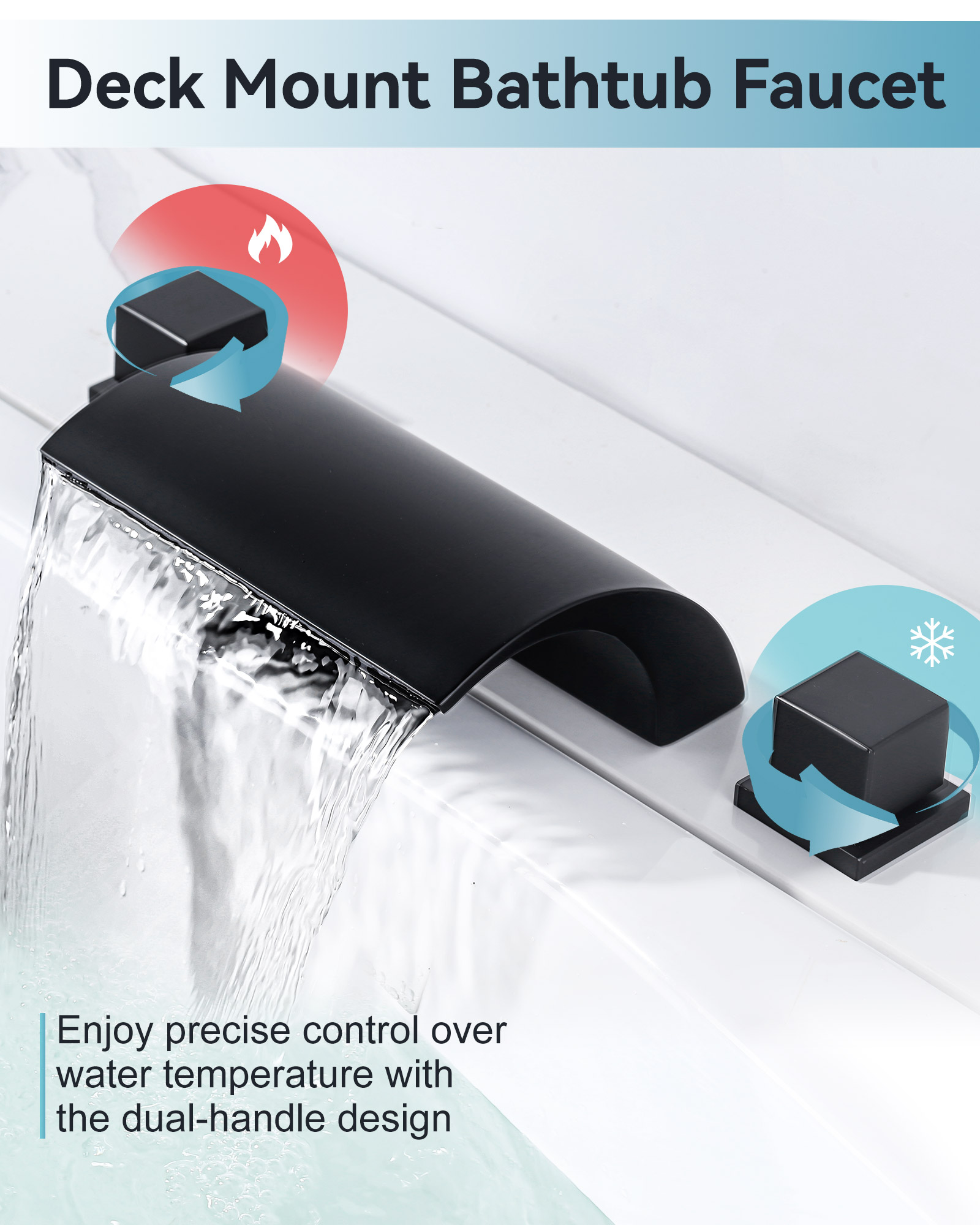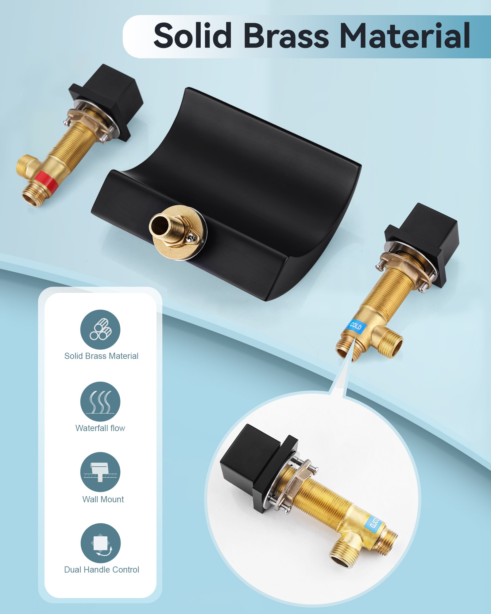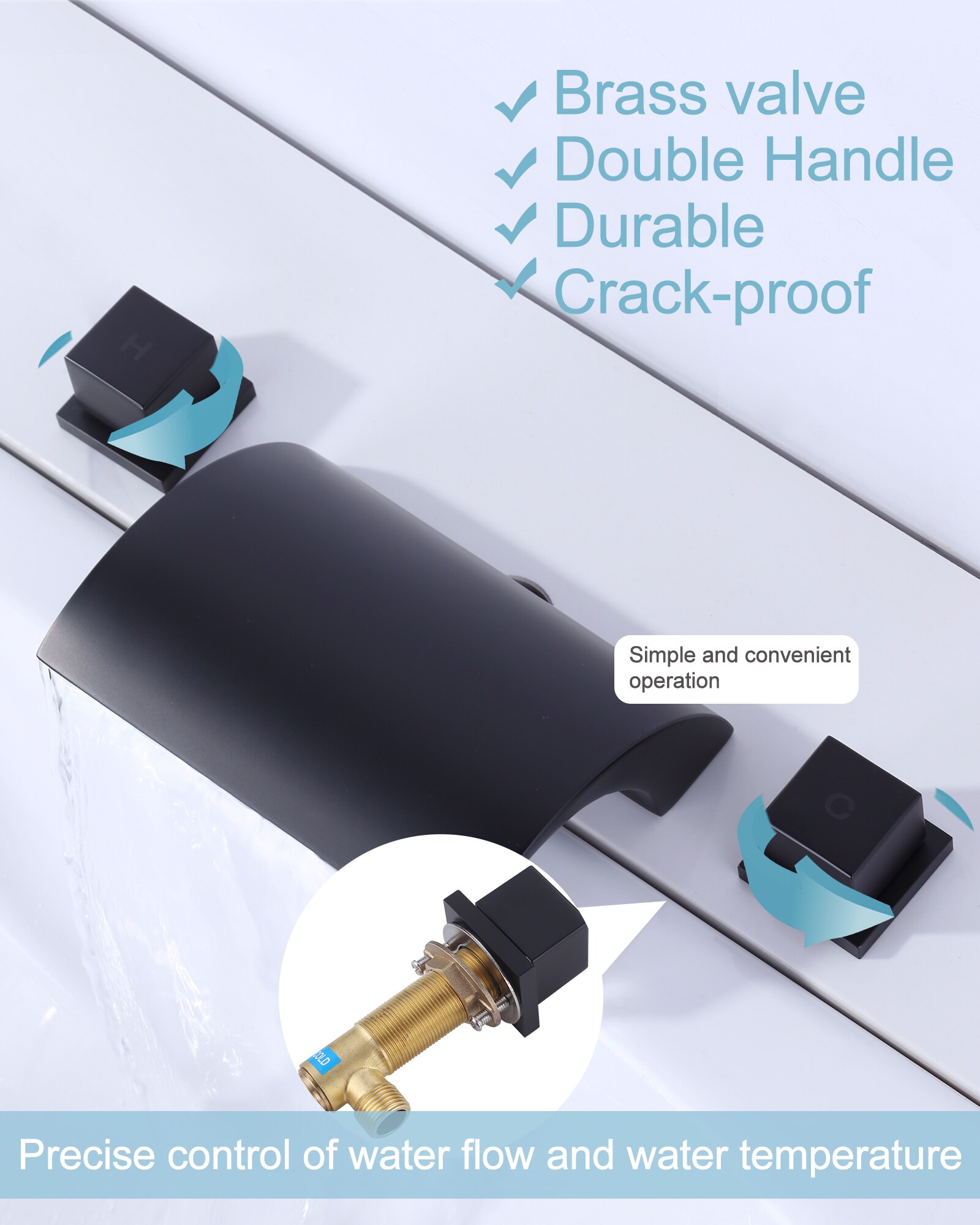 Matte black bathroom faucet with two knob handles conforms to modern design aesthetics and adds a touch of elegance to the bathroom. The wide waterfall spout provides gentle laminar water for the most comfortable washing experience. Valves with solid brass construction, it provides excellent resistance to corrosion.