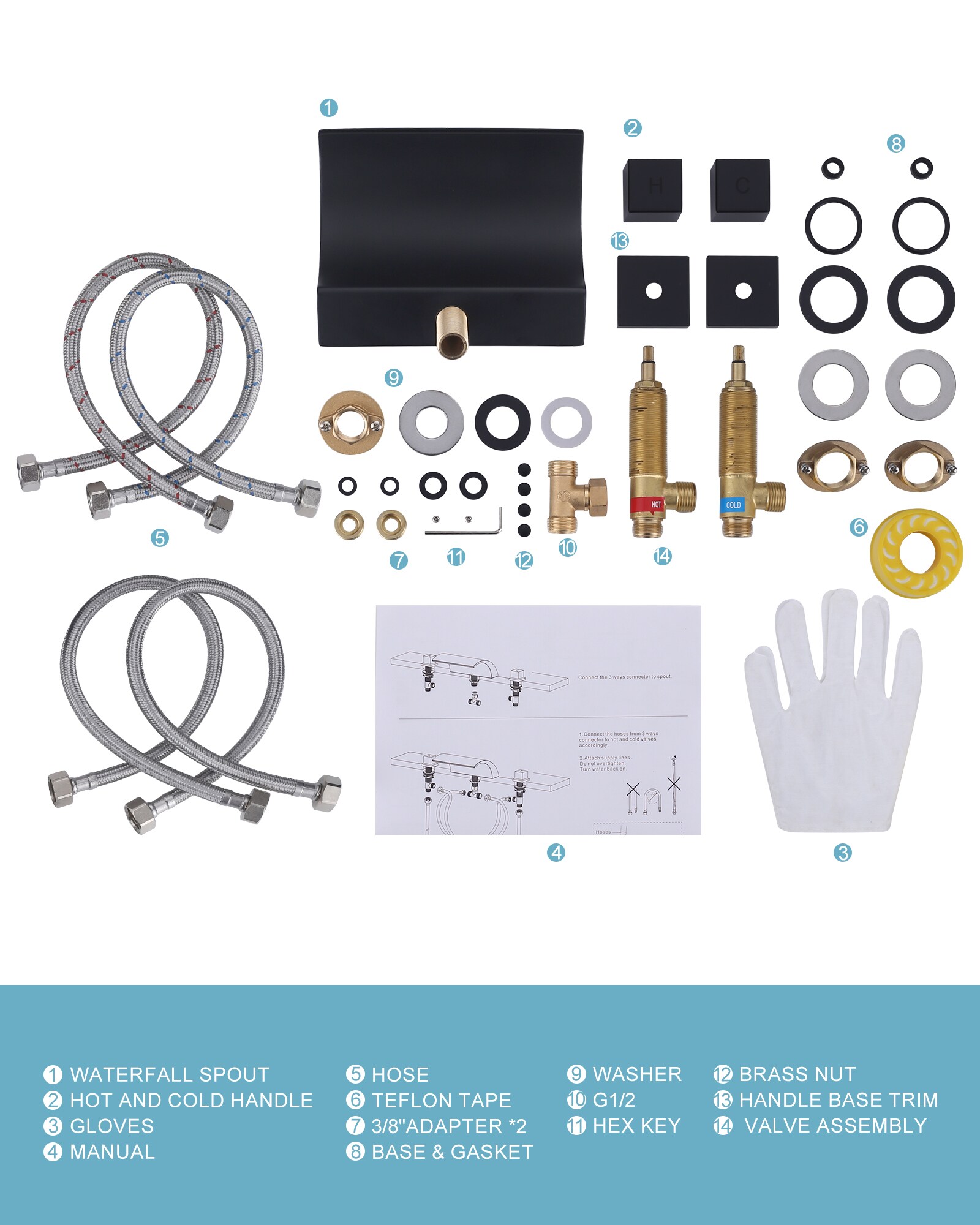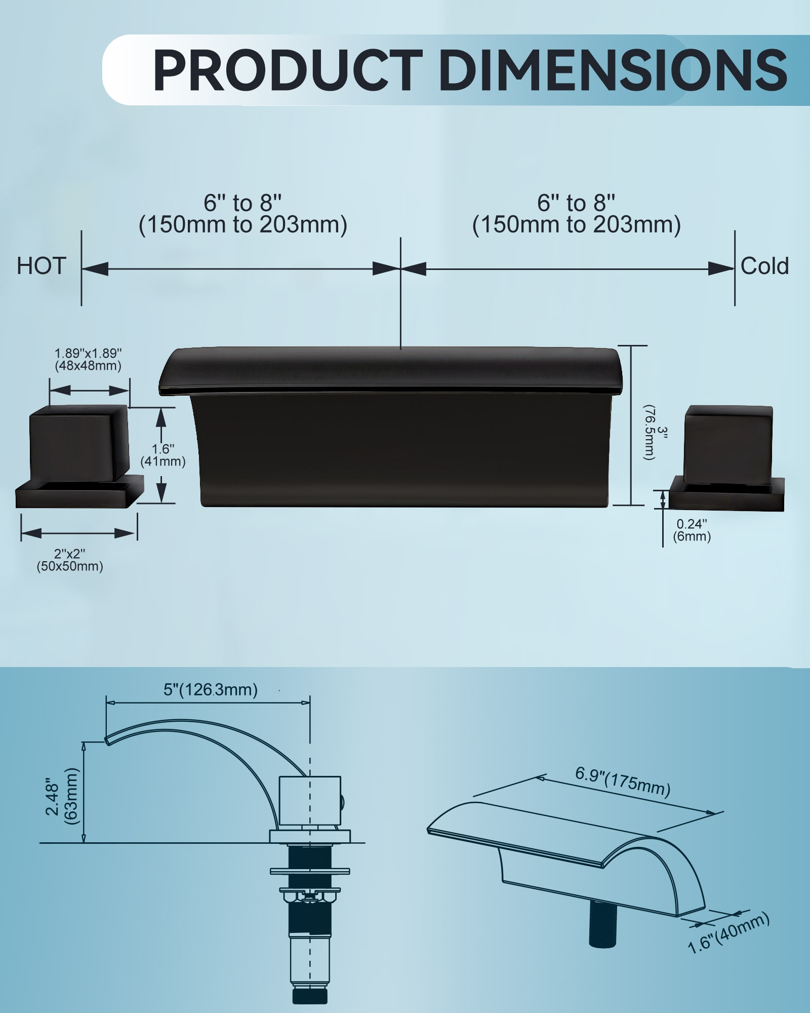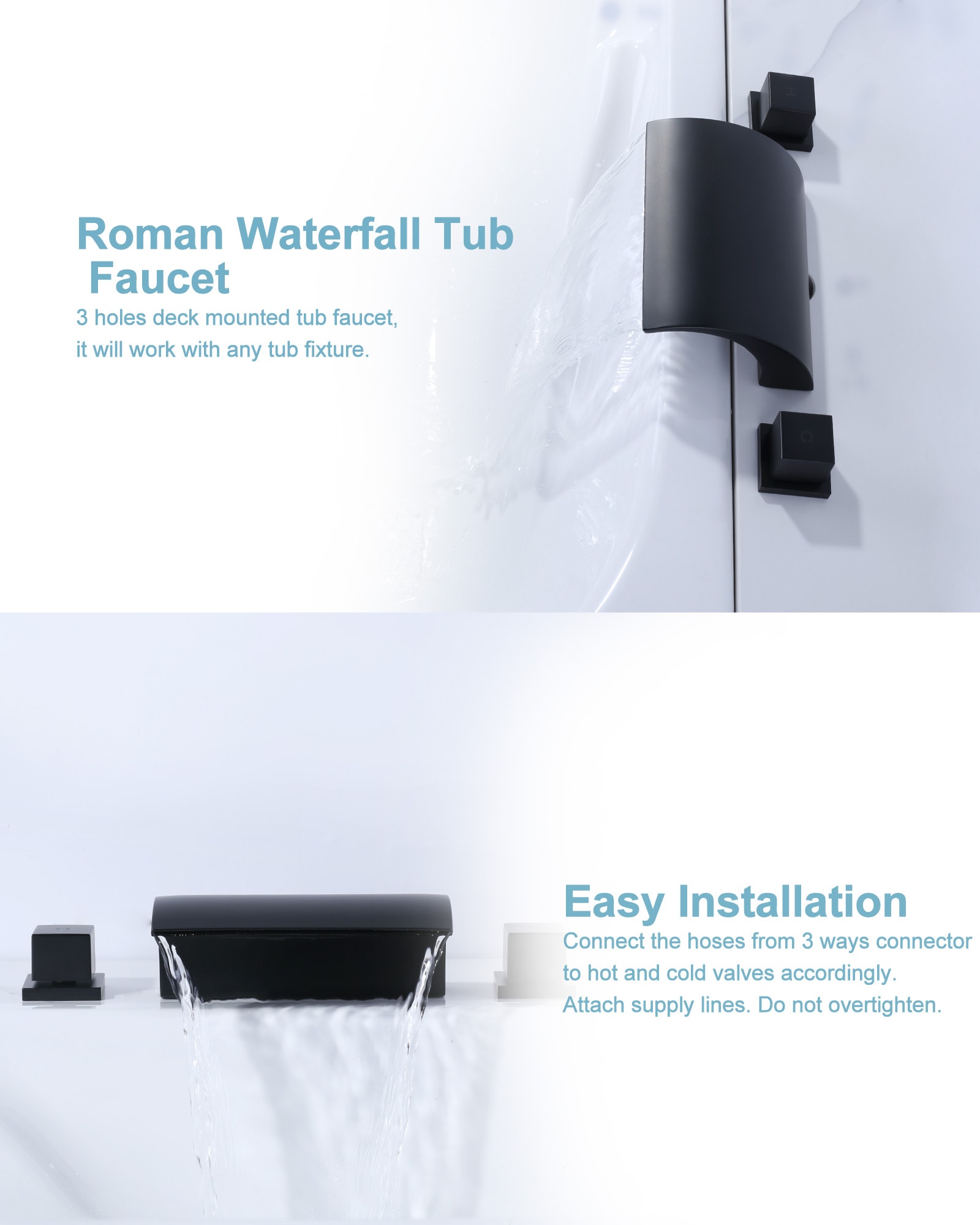 Matte black bathroom faucet with two knob handles conforms to modern design aesthetics and adds a touch of elegance to the bathroom. The wide waterfall spout provides gentle laminar water for the most comfortable washing experience. Valves with solid brass construction, it provides excellent resistance to corrosion.
