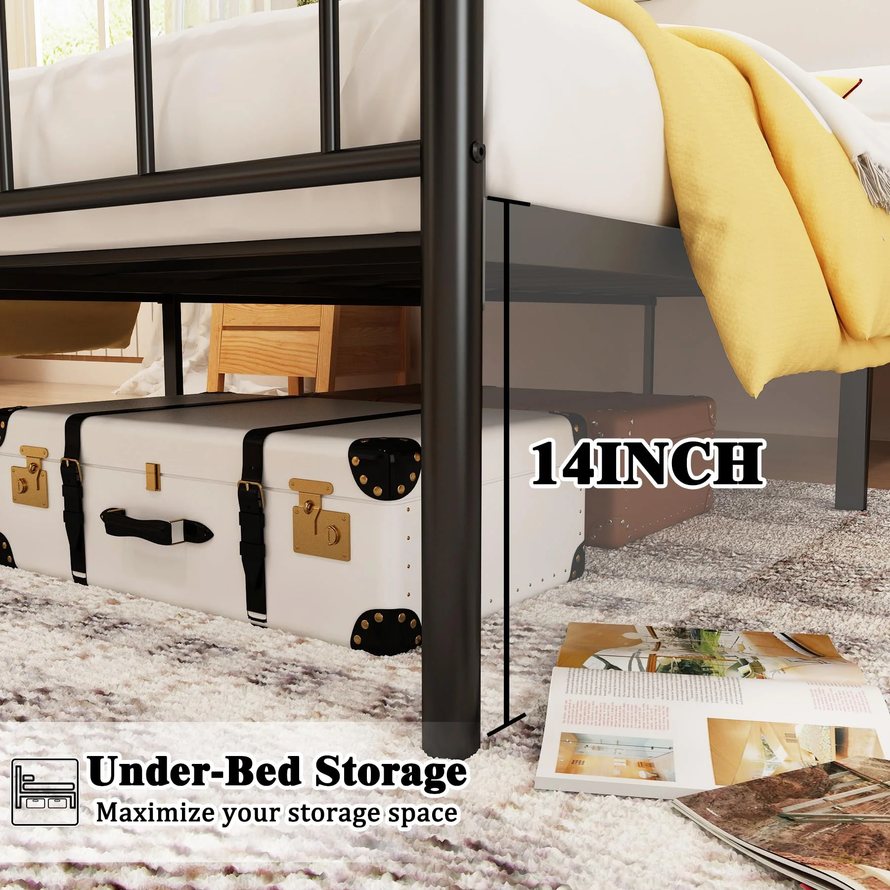 Mavesmog 14 inches Twin Mattresses Bed Frame with Headboard and Footboard Metal Bed Frame Twin Size