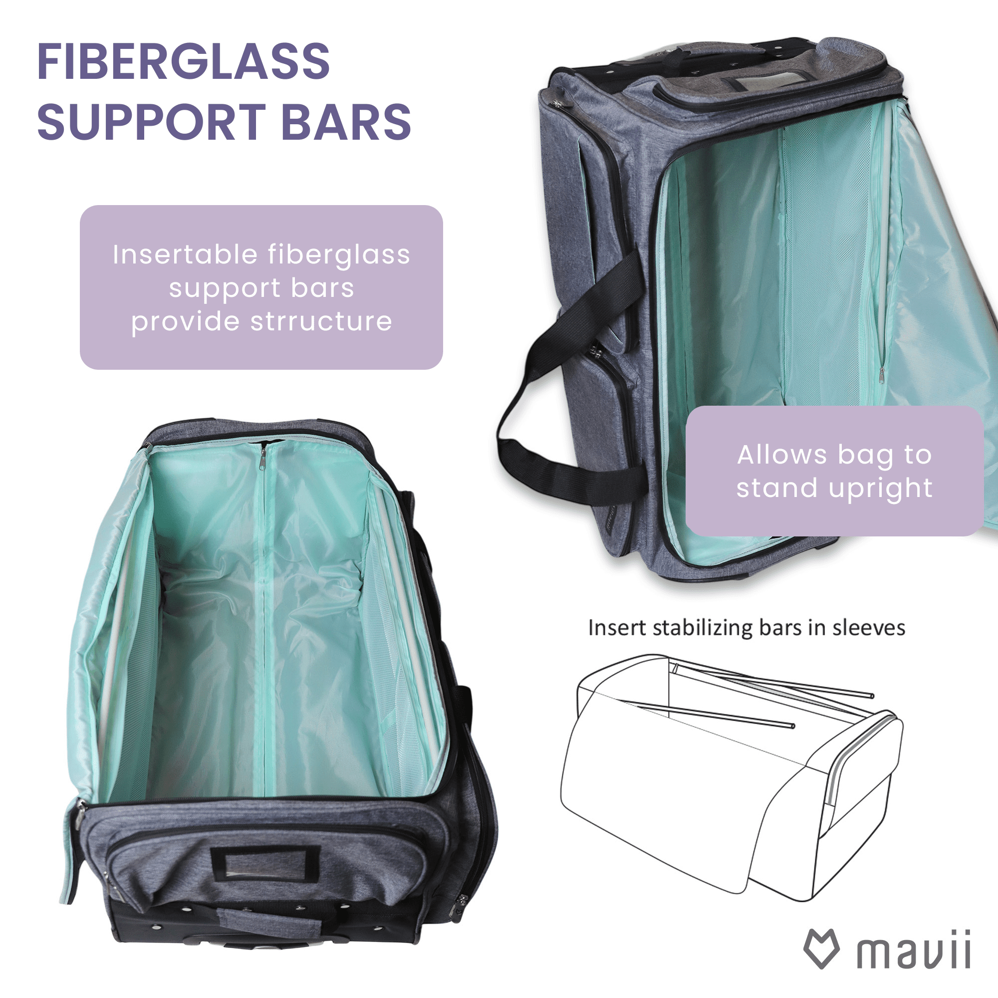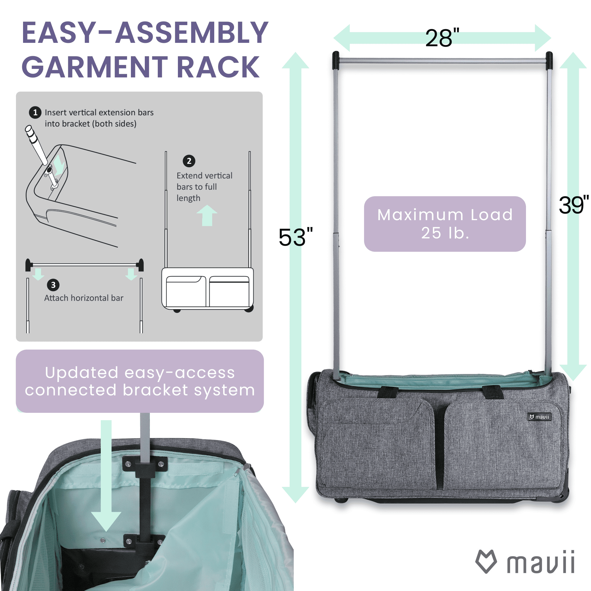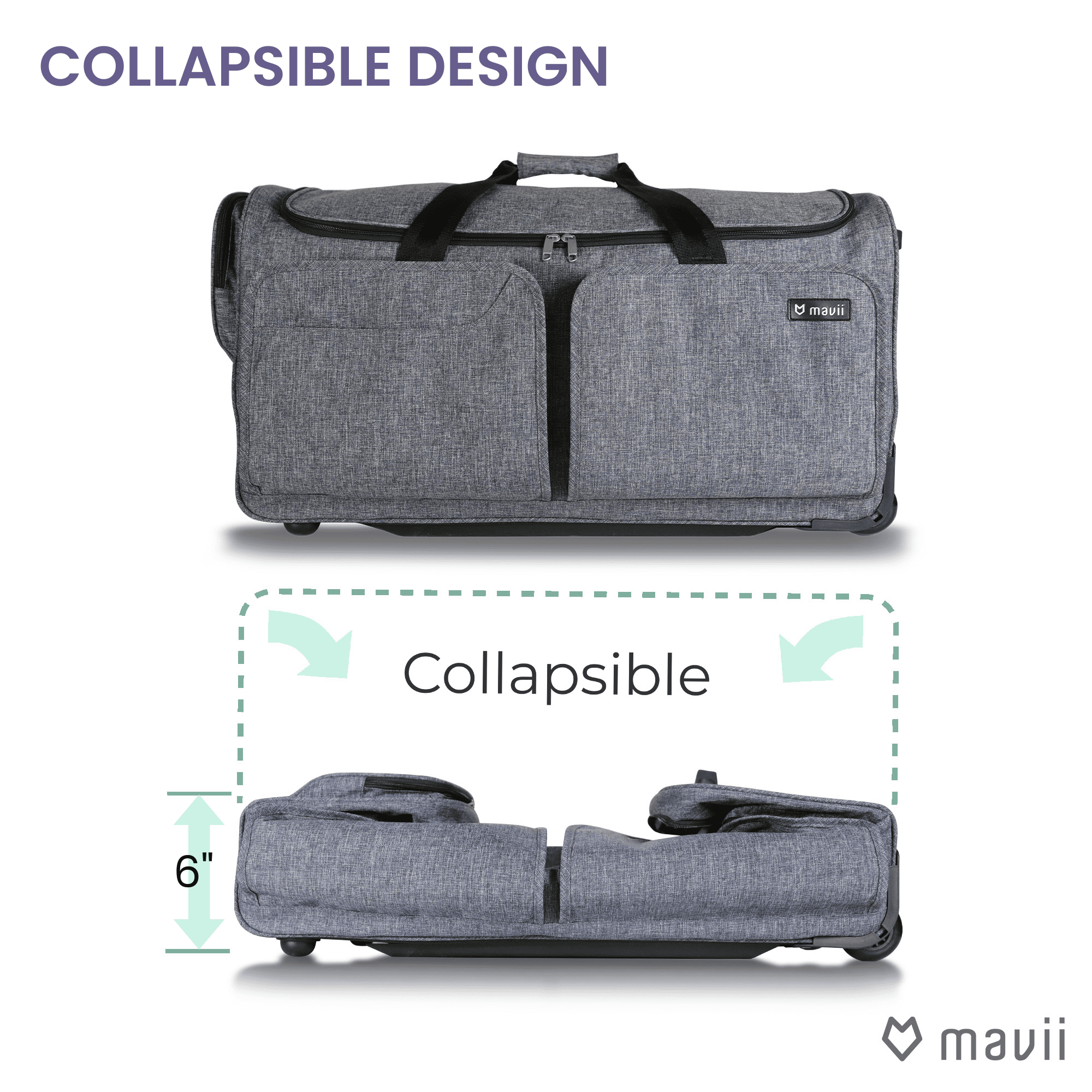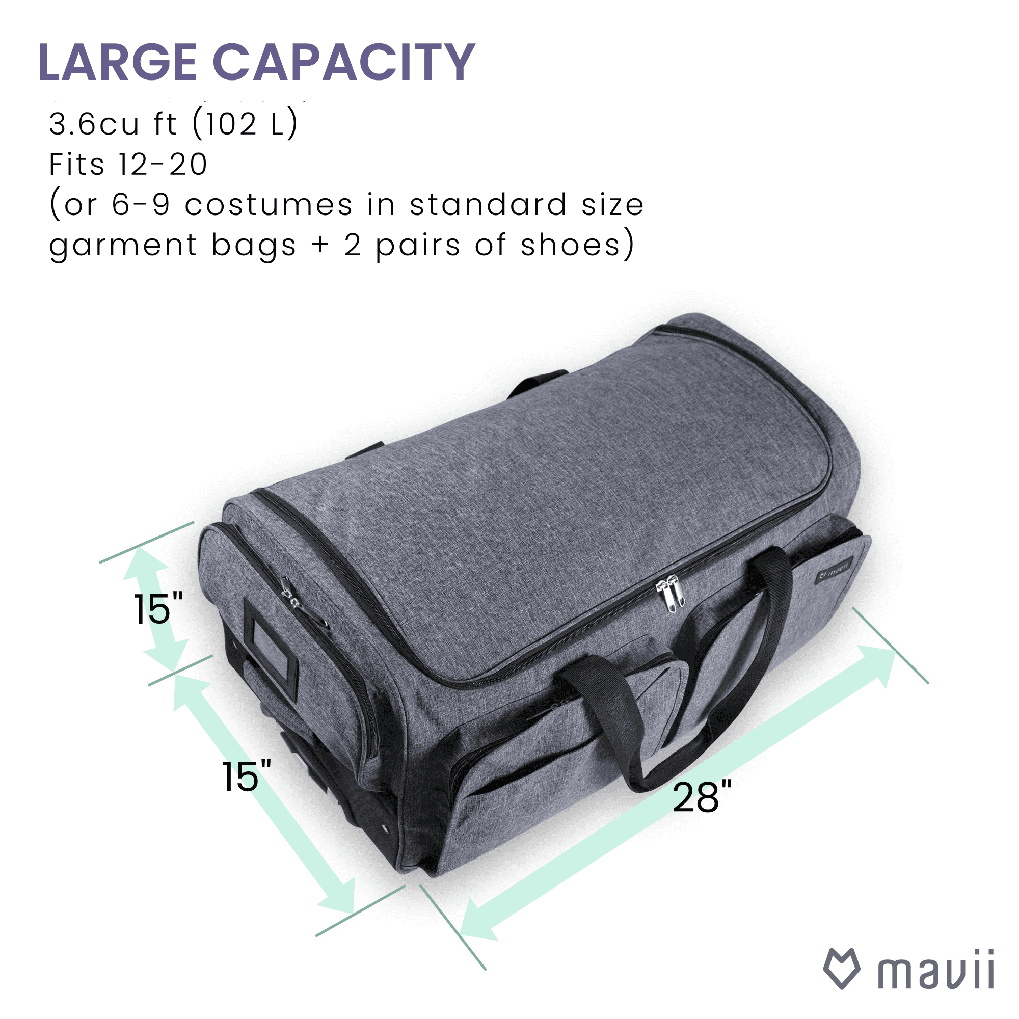 Mavii Rolling Duffel Bag with Garment Rack 28 inch Collapsible Competition Dance Duffle Wheeled Lightweight Dance Bag