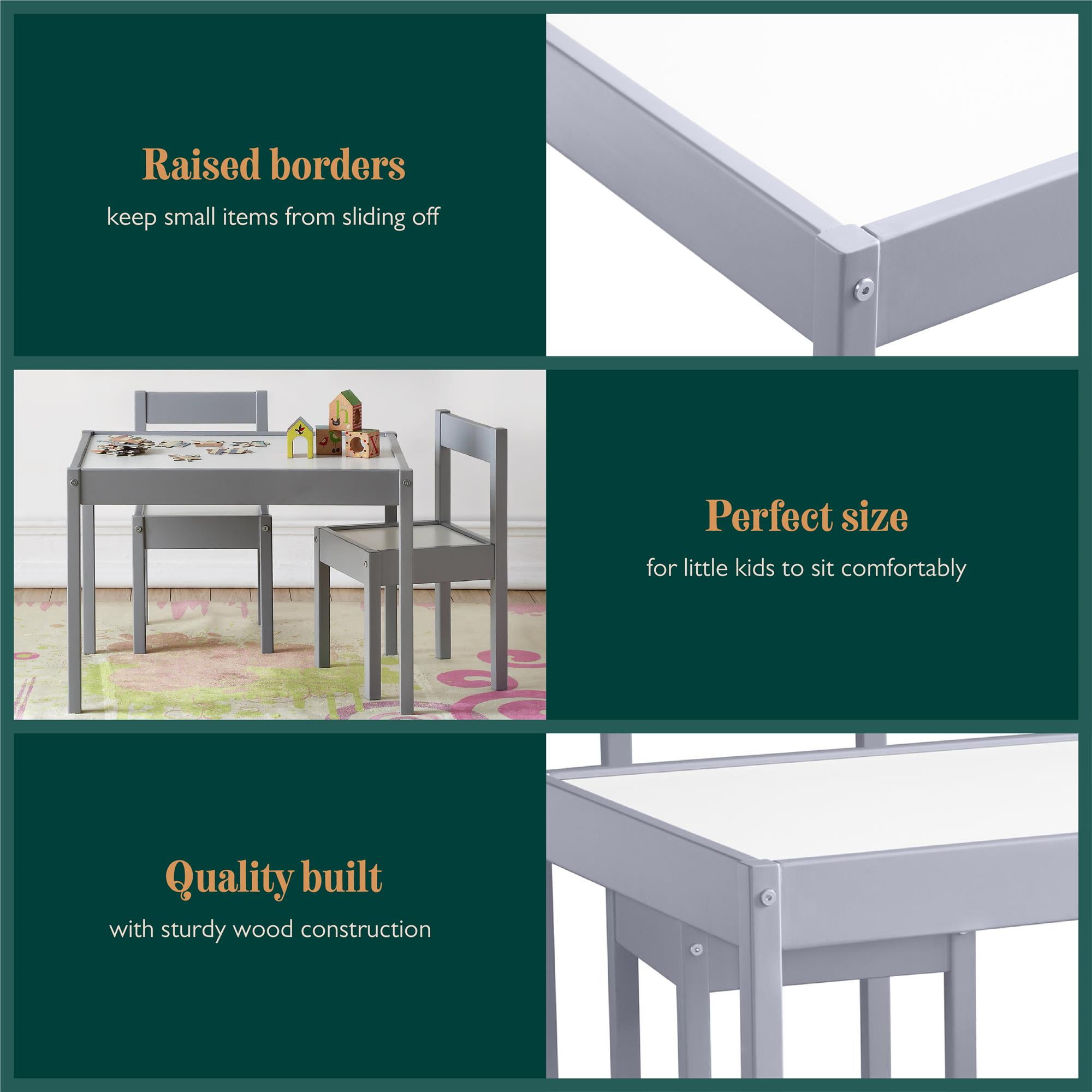 Max & Finn Hunter 3-Piece Kiddy Table & Chair Kids Set, Gray/White