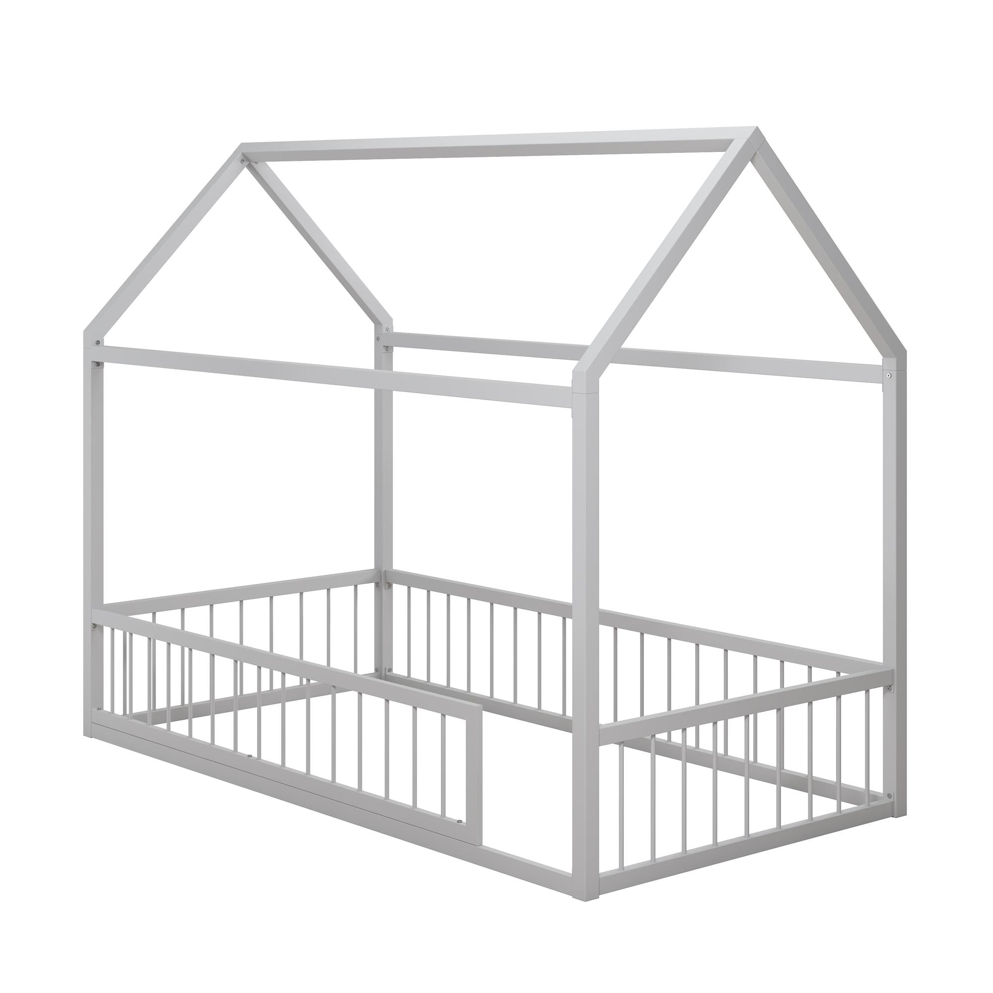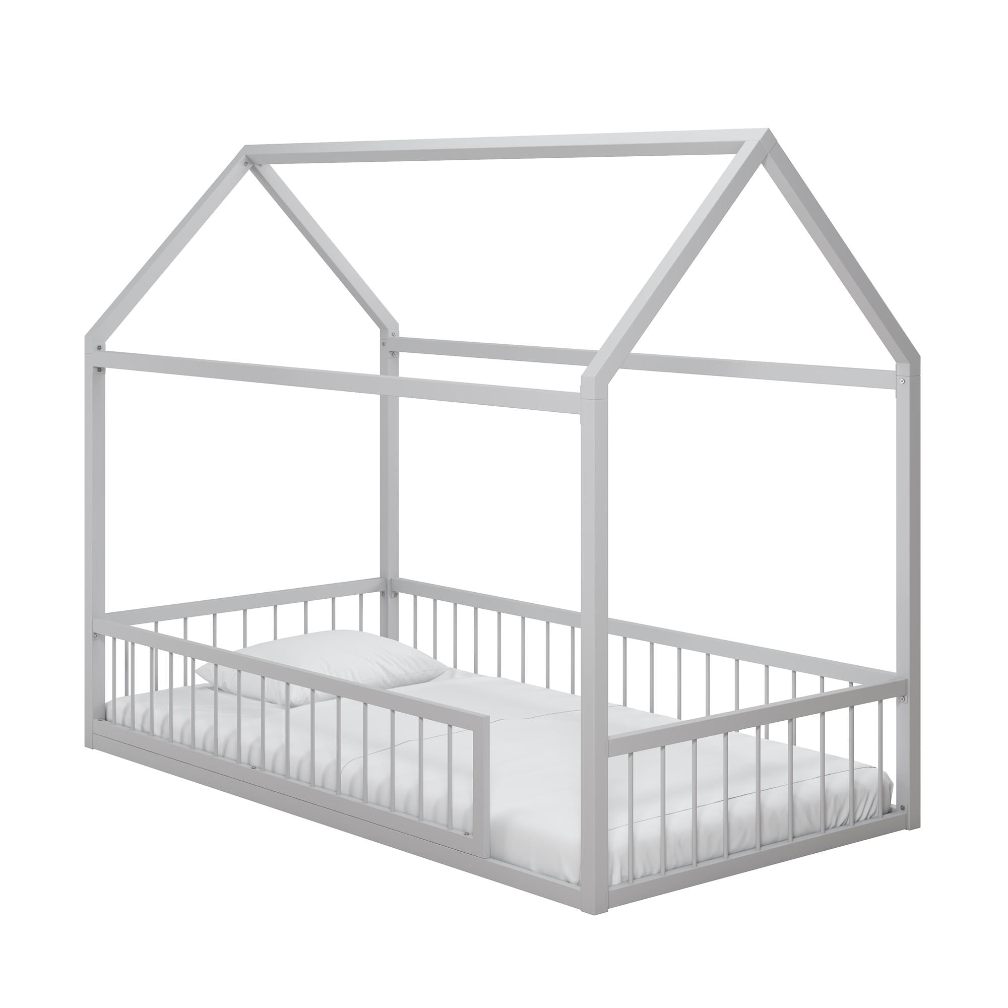 Max & Finn Skyler Metal Montessori House Bed with Removable Rail, Twin, Dove Gray