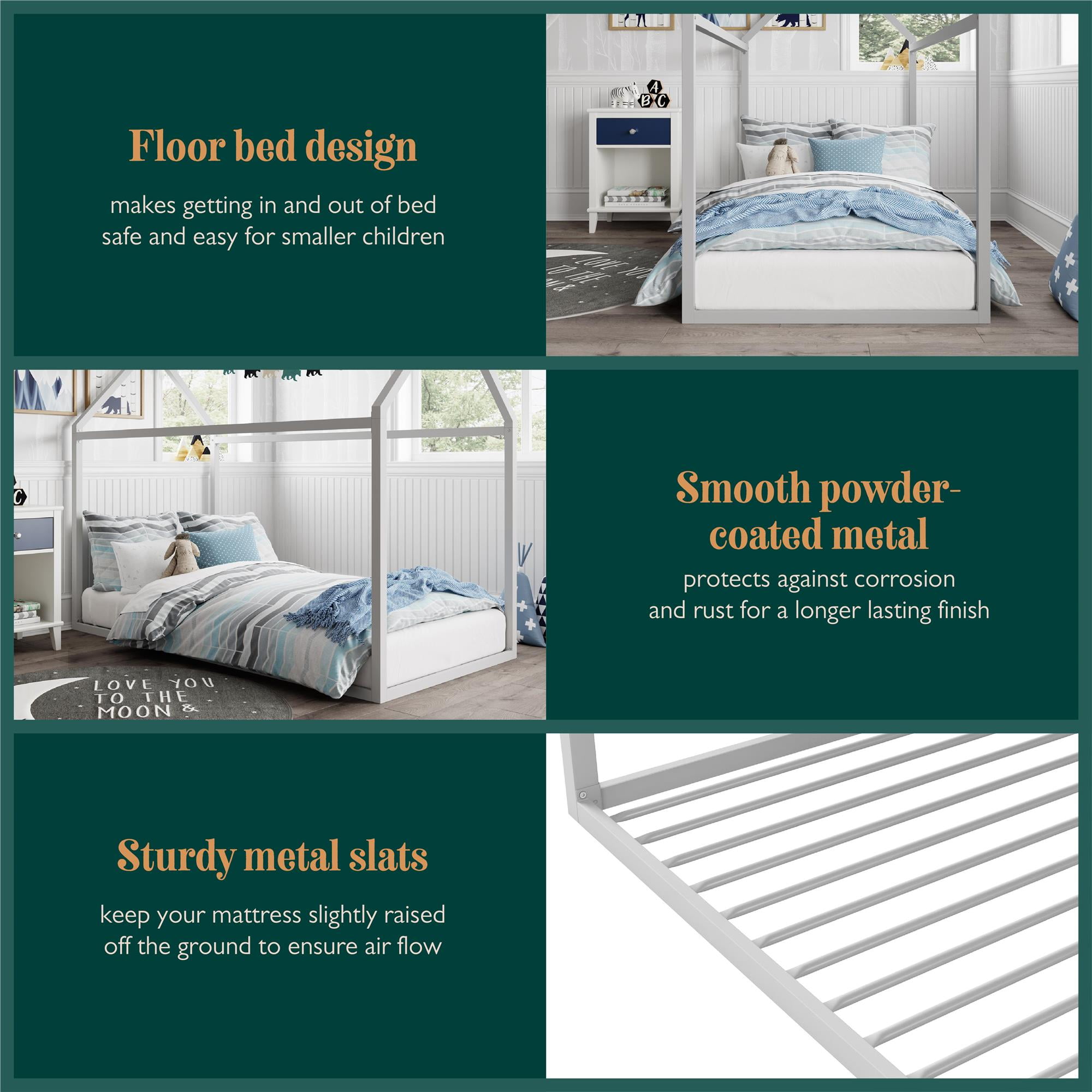 Max & Finn Skyler Metal Montessori House Bed, Twin, Dove Gray