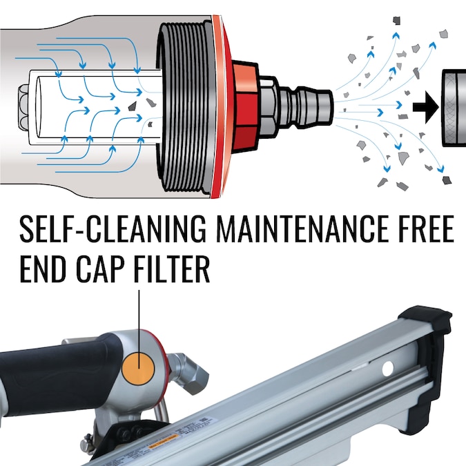 - Maintenance free end cap filter prevents foreign substances from entering the tool so internal parts last longer and the inside of the tool us kept clean