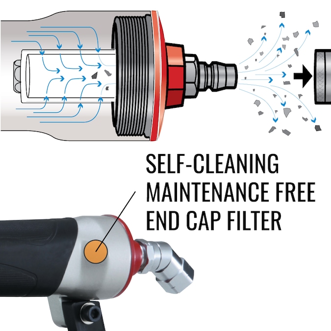 - MAX patented maintenance free end cap filter prevents foreign substances from entering the tool helping internal parts last longer, requiring less maintenance on the tool