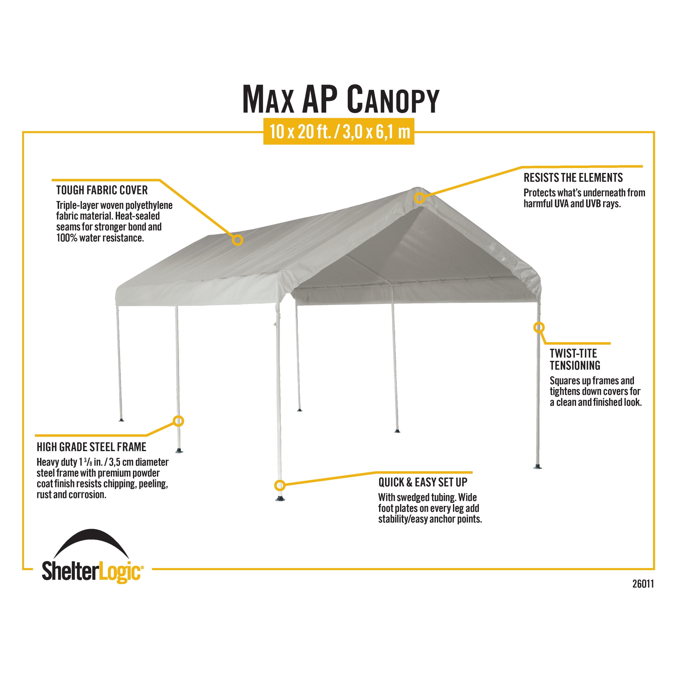 ShelterLogic MaxAP 10 x 20 x 1 ft White Gazebo Canopy