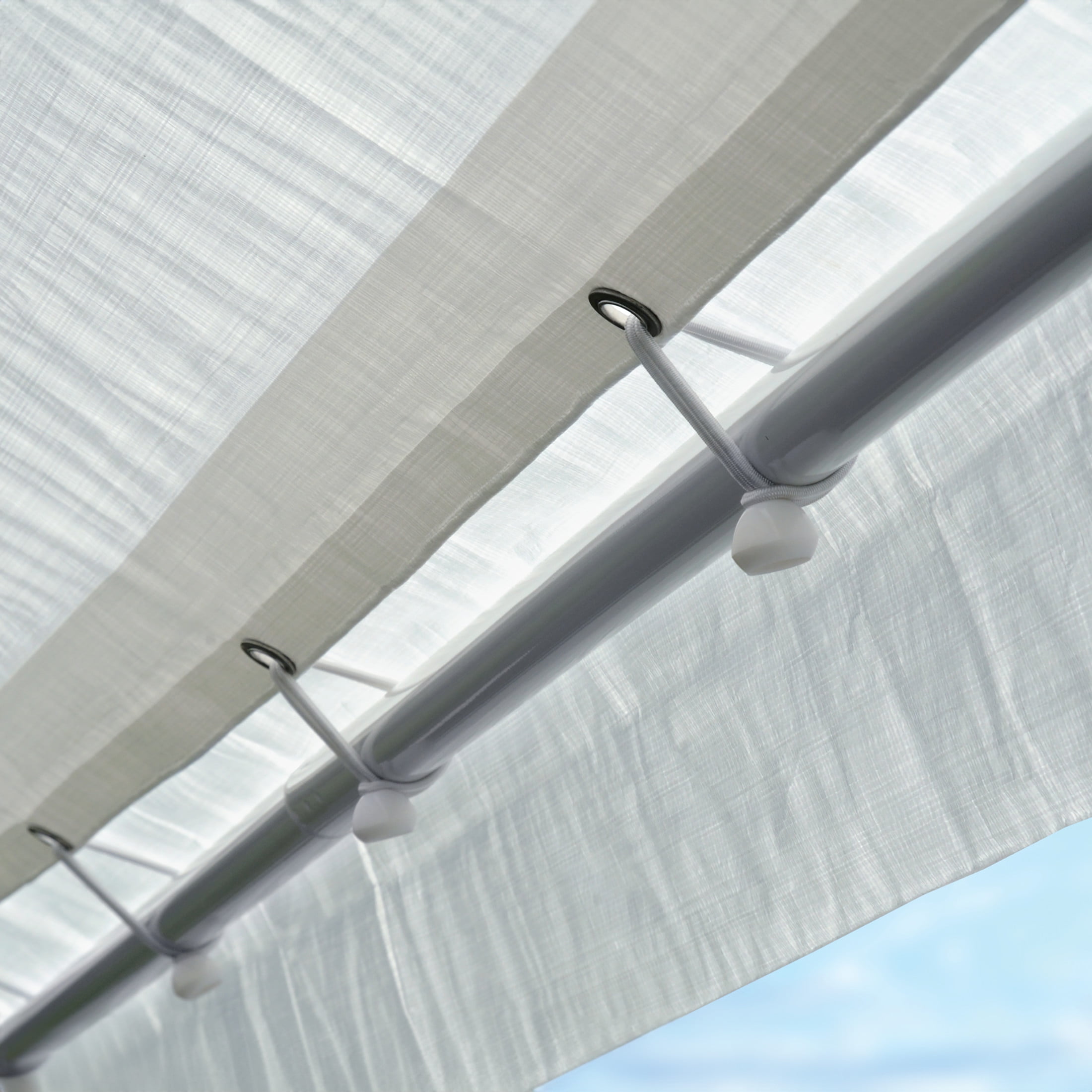 Frame Constructed Of Heavy Duty 1-3/8 In. Diameter Steel Premium Powder Coat Finish Protects Frame From Corrosion And Rust Easy To Install, Fitted Swedged Pipes Ripstop, Uv Treated Polyethylene Fabric Cover Is 100% Waterproof And Heat Welded, Not Sewn Twist-Tite Tensioning Squares Up The Frame And Tightens Down Cover Cover Attaches With Bungee Fastener Wide Foot Plates On Every Leg Add Stability And Easy Access To Secure Anchor Point 50+ Upf Sun Protection Blocking 98% Of Harmful Uv Rays Manufacturer Recommends One Anchor Per Leg