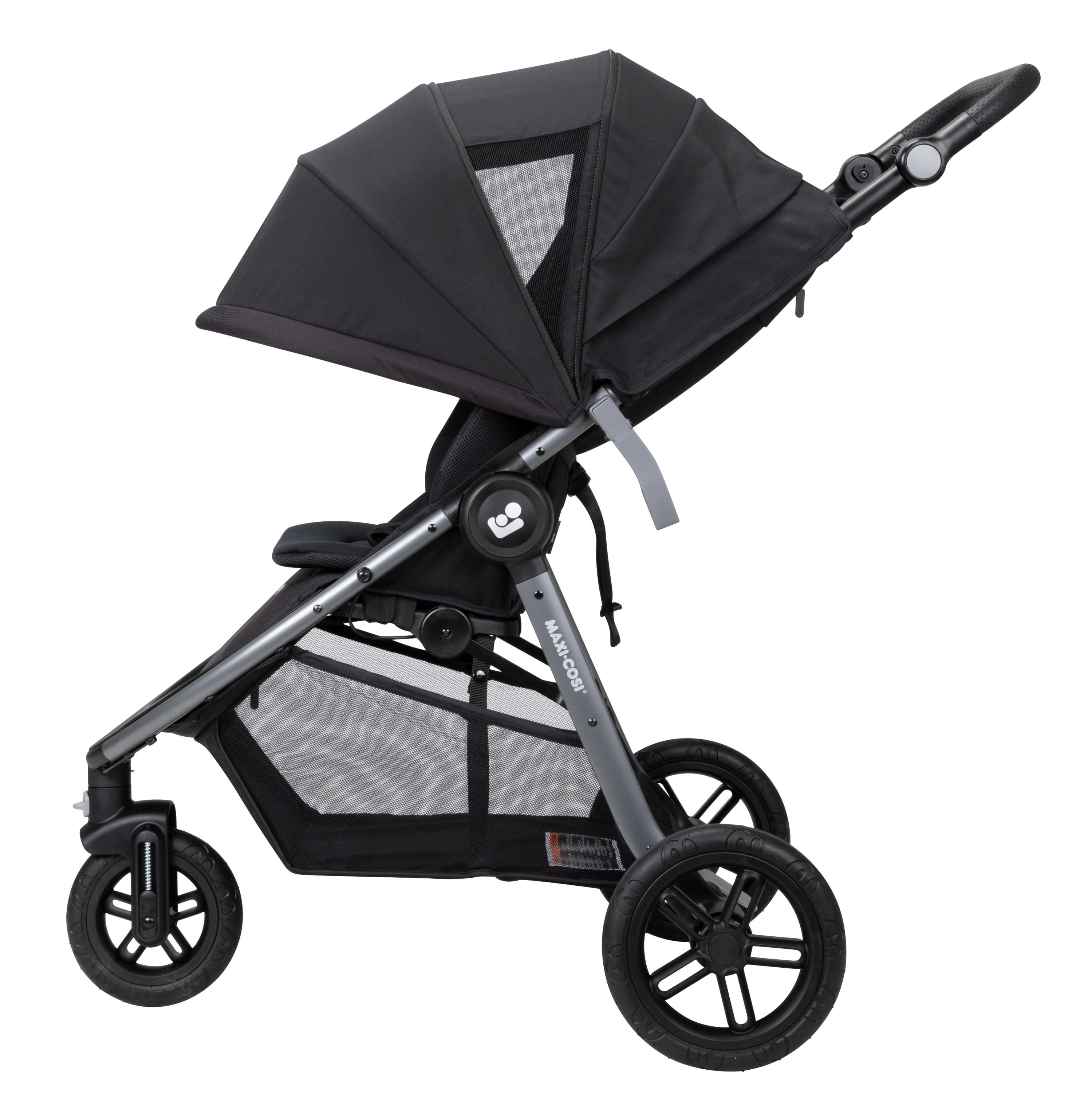 Nimble 3-wheel maneuverability Simple one-hand quick fold Soft, plush fabrics for added style and soothing comfort for baby Removable and reversible stroller cushion that goes in the washer and dryer Easy access, extra-large basket that’s accessible from front or back of stroller Extendable canopy with MaxShade privacy shade that covers the entire seat and zips away to store neatly Canopy’s contoured mesh peek-a-boo window lets you stay connected and provides ventilation Adjustable recline positions