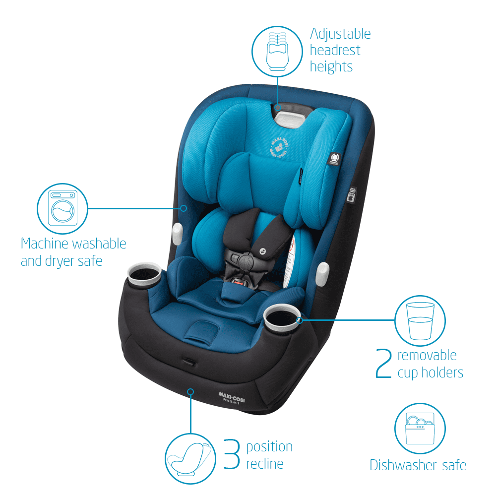 Introducing the Pria All-in-One convertible car seat, baby’s first and only car seat. Surround your child in comfort and safety from the first ride home. What’s in a Name, You Ask? Just like the care you take to name your new little bundle of joy; we take great care in choosing names that best explain what you get with our products. And if our car seats have everything you need “all in one”, why not come out and say it? So, here it goes – our convertible car seats will now carry the name “All-in-One”. From birth to ten years, you get everything you need in a single car seat to keep your child cozy and safe. All in one is all you need. All-in-One Seating System With the Pria All-in-One, you can take comfort in knowing that you’ll have a safe, comfortable car seat for your child, from birth to 10 years old. Children can ride rear-facing, from 4-40 pounds; forward-facing to 65 pounds; and up to 100 pounds in booster mode. It may be the only car seat you’ll ever need. Converting to each new stage is simple and intuitive, so you can quickly make car seat adjustments. It allows for a wide range of adaptability with its 3-position recline, 5 headrest heights, along with a QuickFit shoulder harness. Superior Safety Features Drive with confidence knowing that the Pria All-in-One is backed by over 30 years of European engineering and exceeds all federal standards, including FMVSS 213. GCell® side impact protection is built into the headrest to cushion the impact, and protect your child around the head where it’s needed most. The QuickFit shoulder harness automatically raises the harness and headrest height to fit your growing child. Children grow at different rates so it’s important to have the flexibility to customize your car seat to ensure that you keep safety where you need it, when you need it. Supreme Comfort Soft-to-touch cushions and premium fabrics and padding throughout provide supreme comfort for your child during the journey. The Pria All-in-One fabrics are designed to keep your little one comfortable and cozy. The covers are easy to remove, machine washable and dryer safe. Maxi-Cosi is the leading brand specialist in child car seats and strollers, excelling in safety, comfort and ease of use through continuous innovation in breakthrough technology, design and use of materials.
