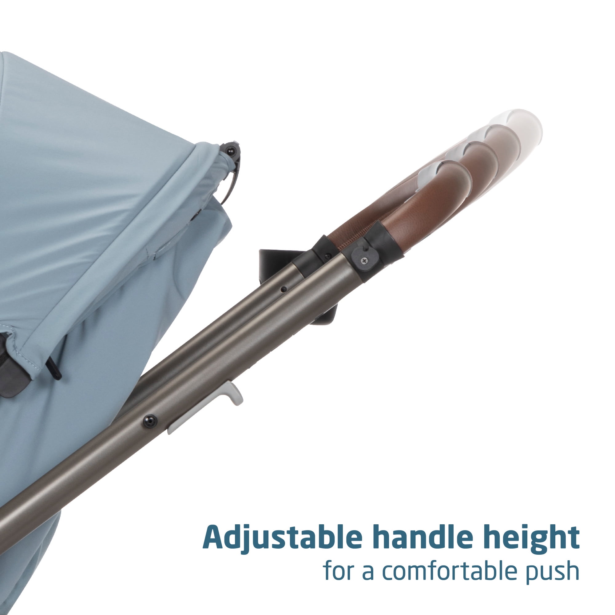 Choose between 5 modes of use: parent-facing car seat caddy, reversible carriage, and reversible stroller Soft, textured stroller fabrics provide a premium look for you, and soothing comfort for baby Extendable MaxShade canopy on stroller for sun protection with UPF 50 and a mesh peek-a-boo window Customize the stroller handle to your preferred height for a more comfortable push Rear-facing Mico Luxe Infant car seat for babies from 4–30 lbs. and up to 32” Infant car seat shell designed with ClimaFlow™ technology, providing added ventilation to help keep baby cooler Bumper bar swings to the side to easily get baby in and out of the stroller seat Extra inlay in car seat for added comfort and support; machine washable for quick cleaning