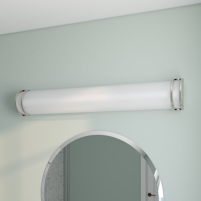 Linear LED features energy efficient and low maintenance lighting with linear frames of metal finished in Satin Nickel and White acrylic diffusers.