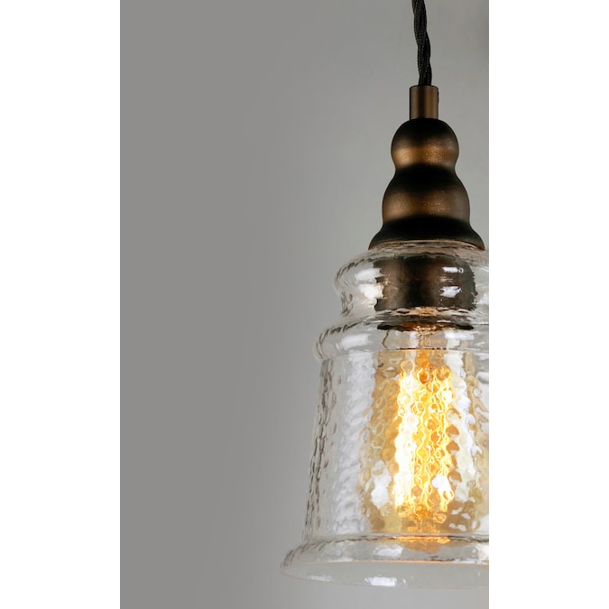 Metal frames of Oil Rubbed Bronze are draped with a twisted fabric wire for that authentic detail. Clear Hammered glass shades suspend from the twisted wire reminiscent of yesteryear. The restoration style of this collection lives on forever.