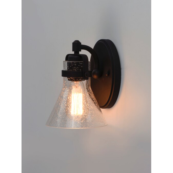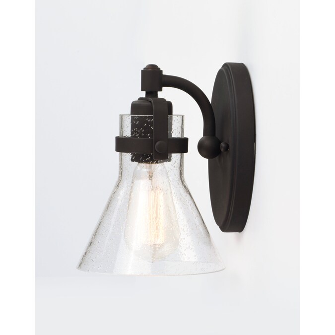 This nautical-inspired bath vanity features Clear Seedy glass cones suspended by a yoke frame finished in Polished Chrome. The clear glass offers abundant lighting and compliments the styling of the fixture. Make it a more industrial look by adding filament E26 light bulbs.
