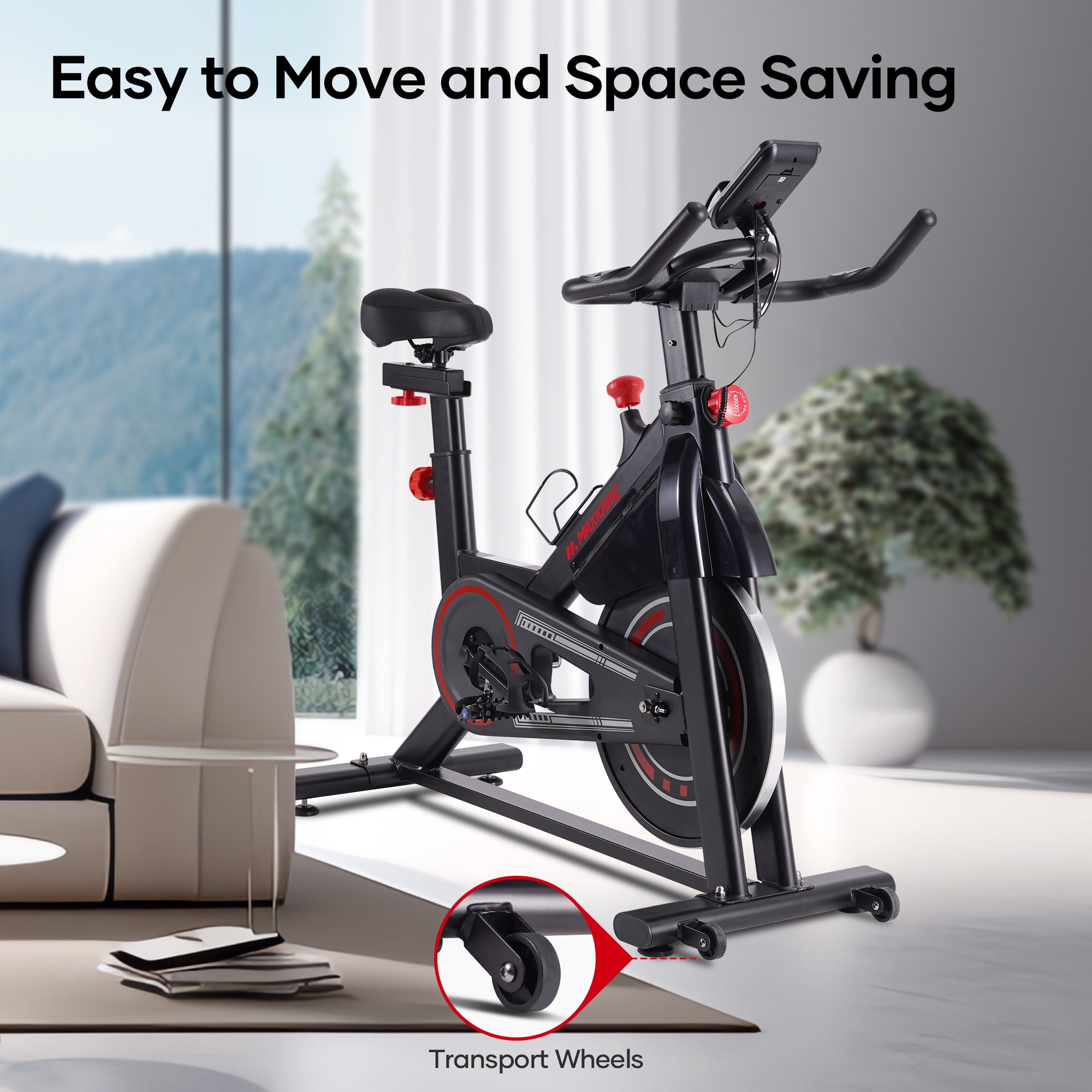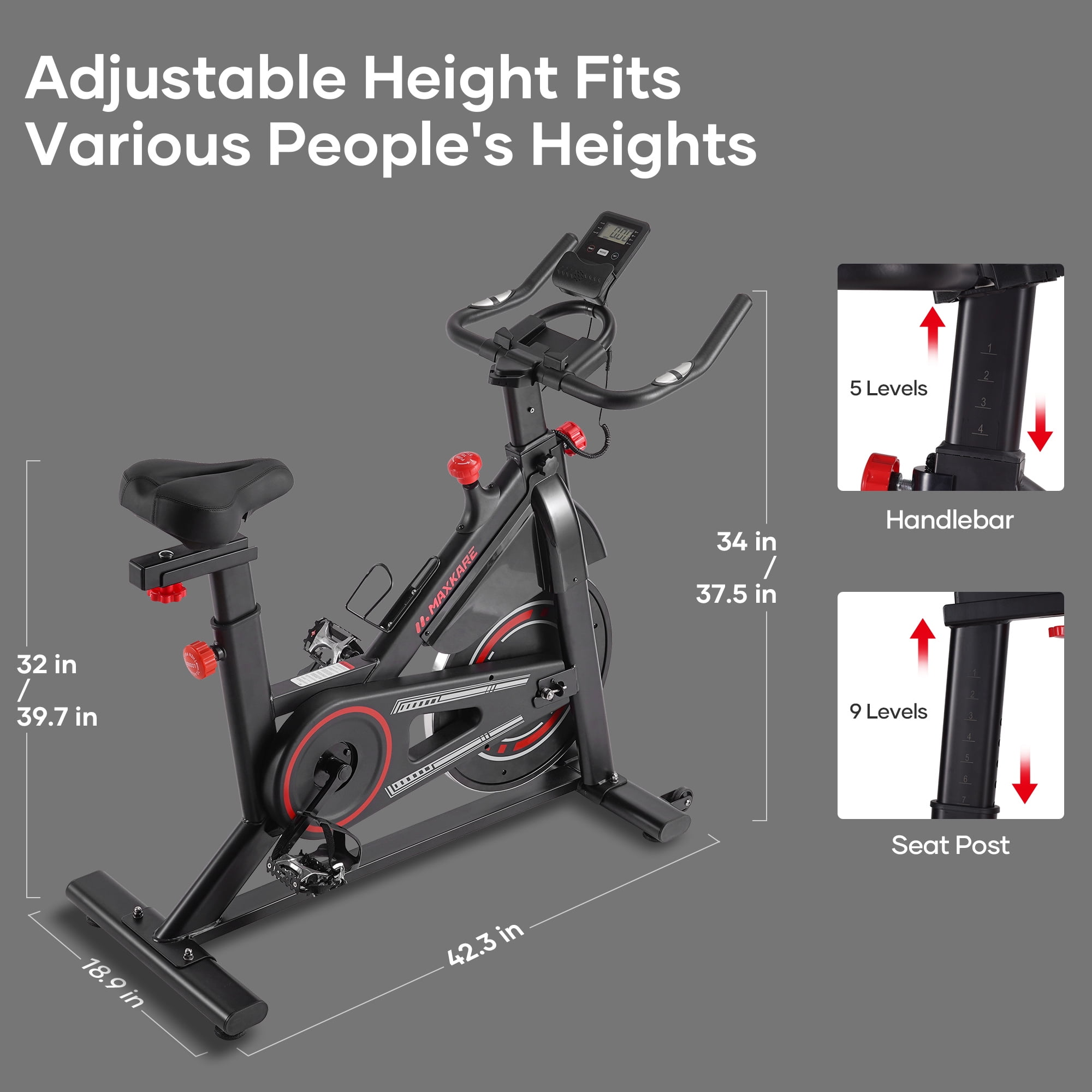 MaxKare Magnetic Resistance Exercise Bike – Smooth, Silent & Fully Adjustable for the Perfect Home Workout! Transform your fitness routine with the MaxKare Magnetic Resistance Exercise Bike, built for stability, comfort, and a smooth riding experience. The 30 lbs heavy flywheel and ultra-quiet belt drive system provide a silent and consistent performance, making it perfect for home use without disturbing others. With 100% micro-resistance adjustment, you can easily customize the intensity to match your fitness goals—whether you’re improving endurance, toning muscles, or burning calories. The bike features a 9-level adjustable seat (32″-39.7″) and 5-level adjustable handlebars (33.9″-37.5″), ensuring the perfect fit for different users in your household. The breathable ergonomic cushion adds extra comfort, allowing for longer workouts. Stay on track with the LCD monitor, displaying time, speed, distance, calories, heart rate, and odometer in real time. The built-in iPad and phone holder lets you enjoy entertainment or virtual workouts, while the water bottle holder keeps hydration within reach. Designed with a sturdy multi-triangle frame, this bike supports up to 320 lbs, ensuring safety and durability. The non-slip aluminum pedals with adjustable straps provide a secure fit for all foot sizes. Compact, adjustable, and packed with features, the MaxKare Exercise Bike is your ultimate indoor cycling companion. Order now and start your journey to better health today! Product Dimensions: 42.3L*18.9W*44.29H(IN)