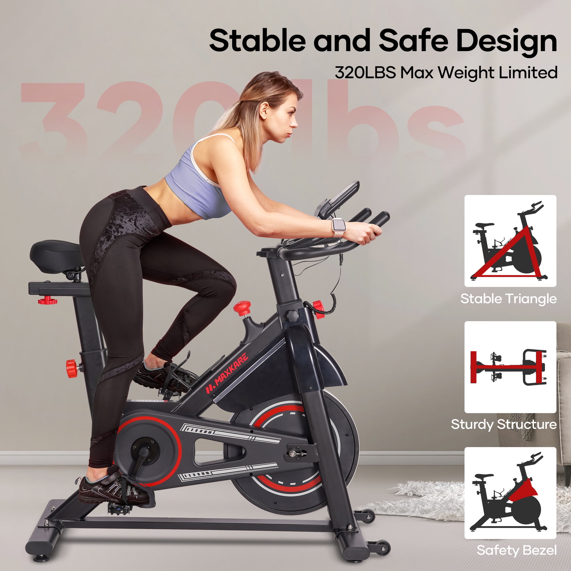 MaxKare 320Lbs Silent Stationary Exercise Bike, Indoor Cycling Bike Magnetic Resistance 100 Levels, 30Lbs Heavy Flywheel Bike for Home