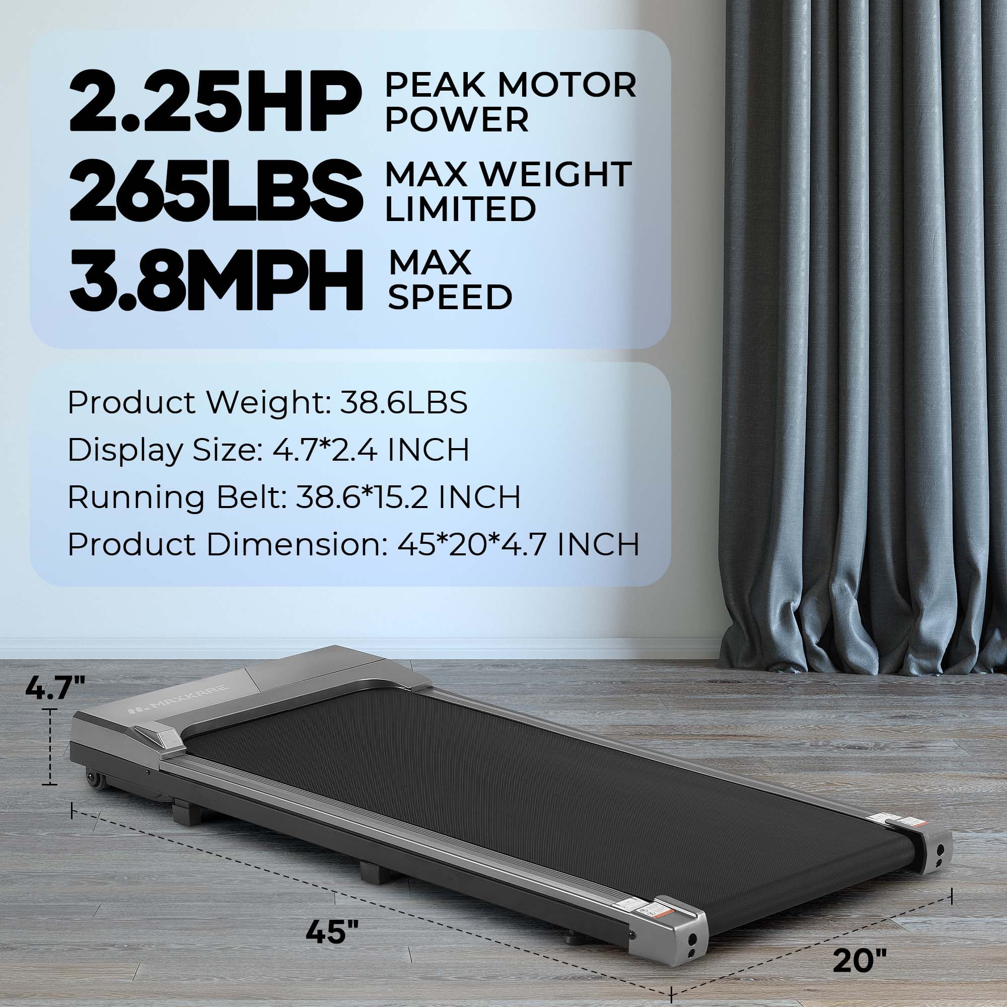 MaxKare Walking Pad Treadmill 4.7″ Ultra-Thin, Underdesk Treadmill2.25HP, 3.8 MPH, Remote Control, Compact Walking Pad for Home Office, 265 lbs