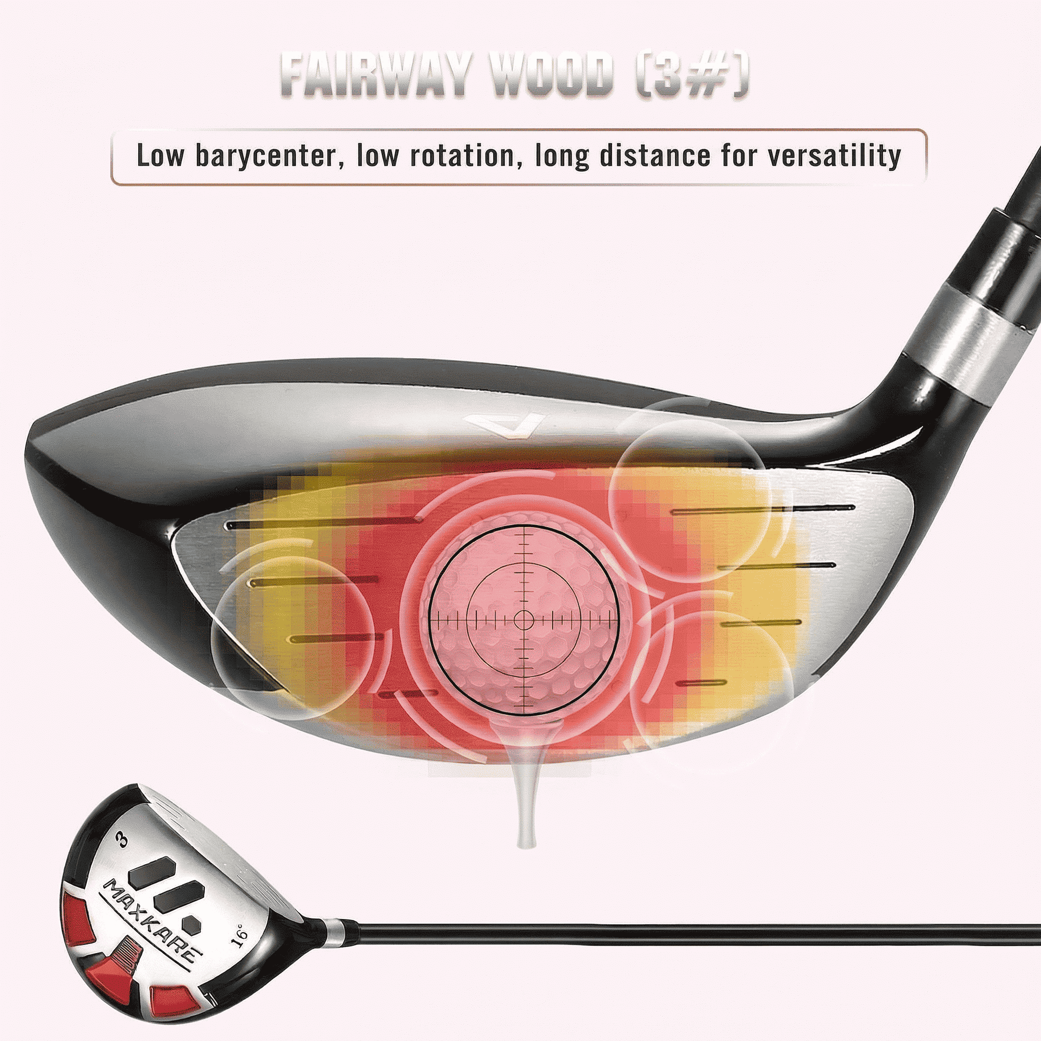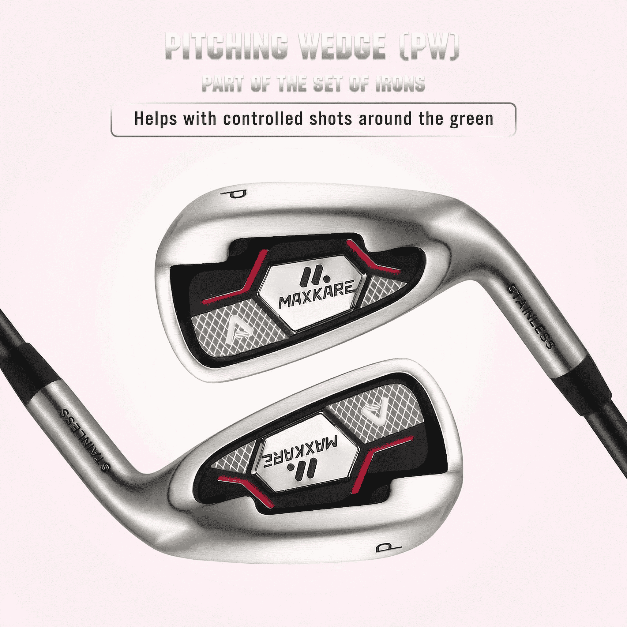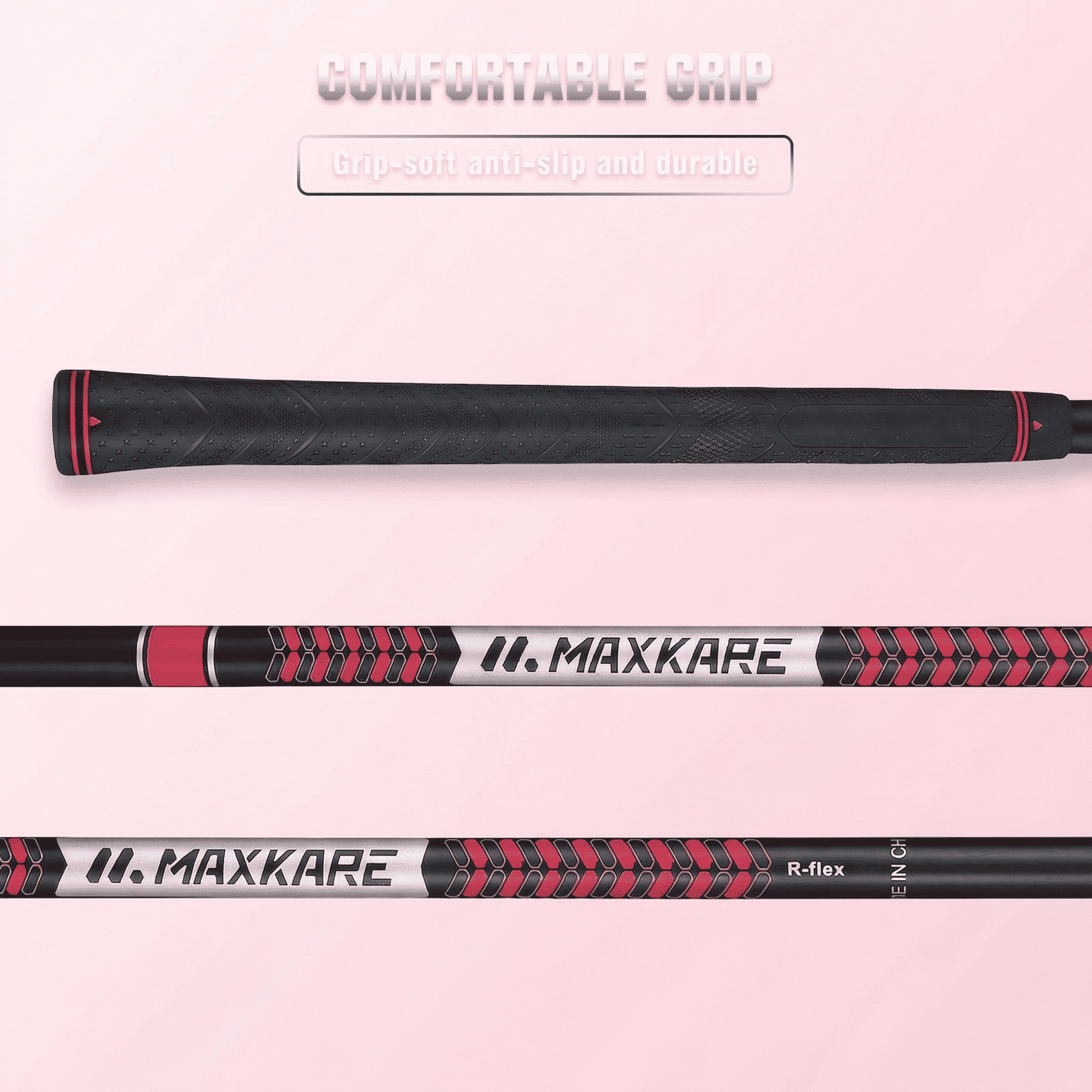 Introducing the MaxKare Women’s Golf Club Set 8 Piece – a perfect fusion of innovation and performance for the modern female golfer. Elevate your game, meticulously designed to enhance every swing and perfect every putt. MaxKare – Elevating Your Golf Experience Immerse yourself in the world of MaxKare, where innovation meets tradition, and every swing is a testament to precision and power. Our Women’s Golf Club Set 8 Piece is crafted for the modern golfer who demands excellence, style, and a true competitive edge. Elevate your game with MaxKare – where every stroke is a masterpiece. 8-Piece Complete Set Includes: Driver: Command the tee with confidence, harnessing the power of advanced technology for longer, more accurate drives. Fairway: Achieve precision in your fairway shots, thanks to the strategic design that balances distance and control effortlessly. Hybrid: Navigate challenging terrains with ease using the versatile hybrid, designed to deliver exceptional performance in various situations. 7 – 9 Iron: Master the mid-range game with irons that provide consistency, accuracy, and forgiveness. PW (Pitching Wedge): Execute precise approach shots and conquer the green with ease. Putter: Fine-tune your putting skills with a putter that offers exceptional feel and accuracy. Stand Bag: Carry your clubs in style with the lightweight and durable stand bag, featuring ample storage and convenient pockets. 3 Headcovers: Protect your valuable clubs with the included headcovers, ensuring they remain in peak condition round after round.