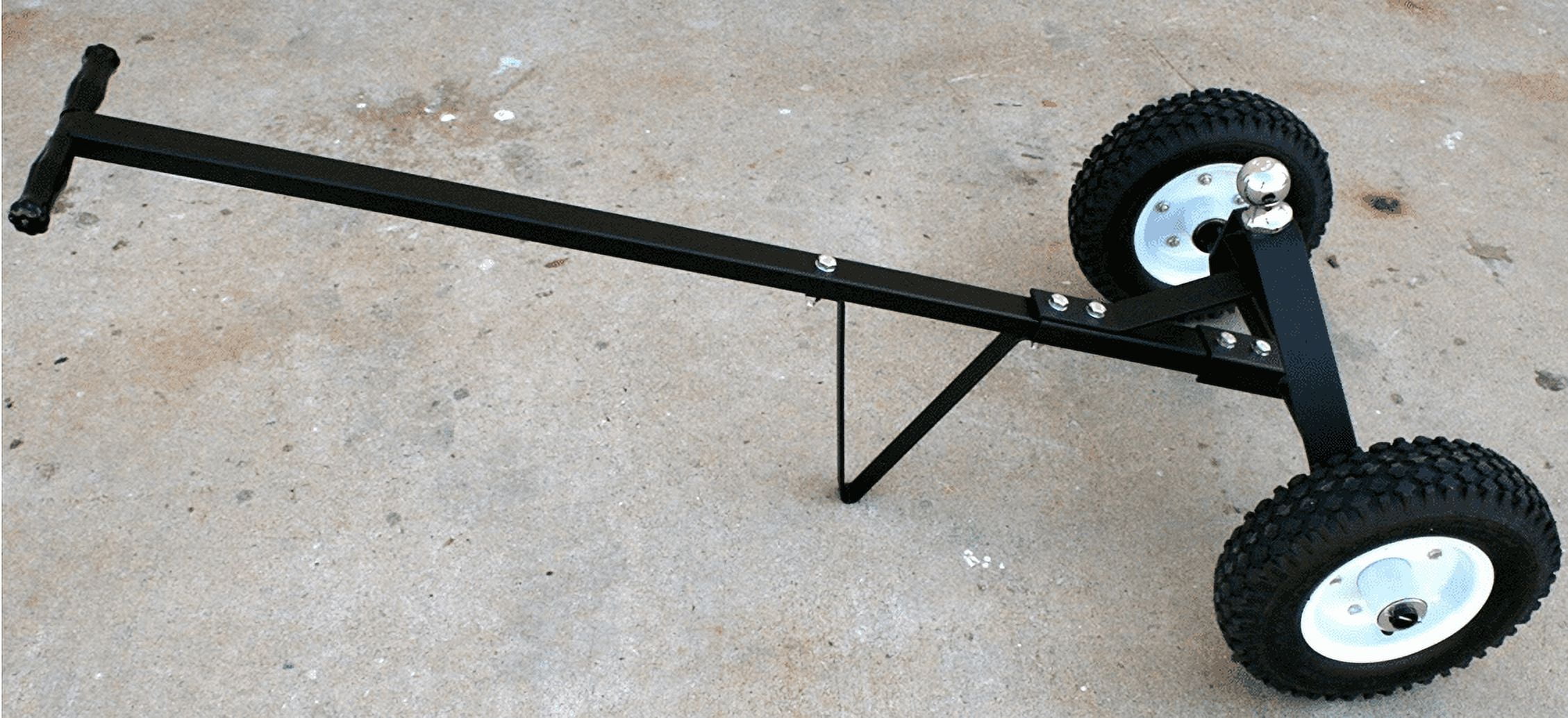 MaxxHaul 600 Lb. Capacity Trailer Dolly Tires are all-terrain Extralong handle with rubberized grip makes manoeuvring easy Includes a 1-7/8″ trailer hitch ball with 3/4″ shank and complete mounting hardware Durable powder coat finish to resist rust and corrosion Easy to assembleDimensions Product Depth (in.): 53 in Product Height (in.): 21 in Product Length (in.): 53 in Product Width (in.): 28.5 in