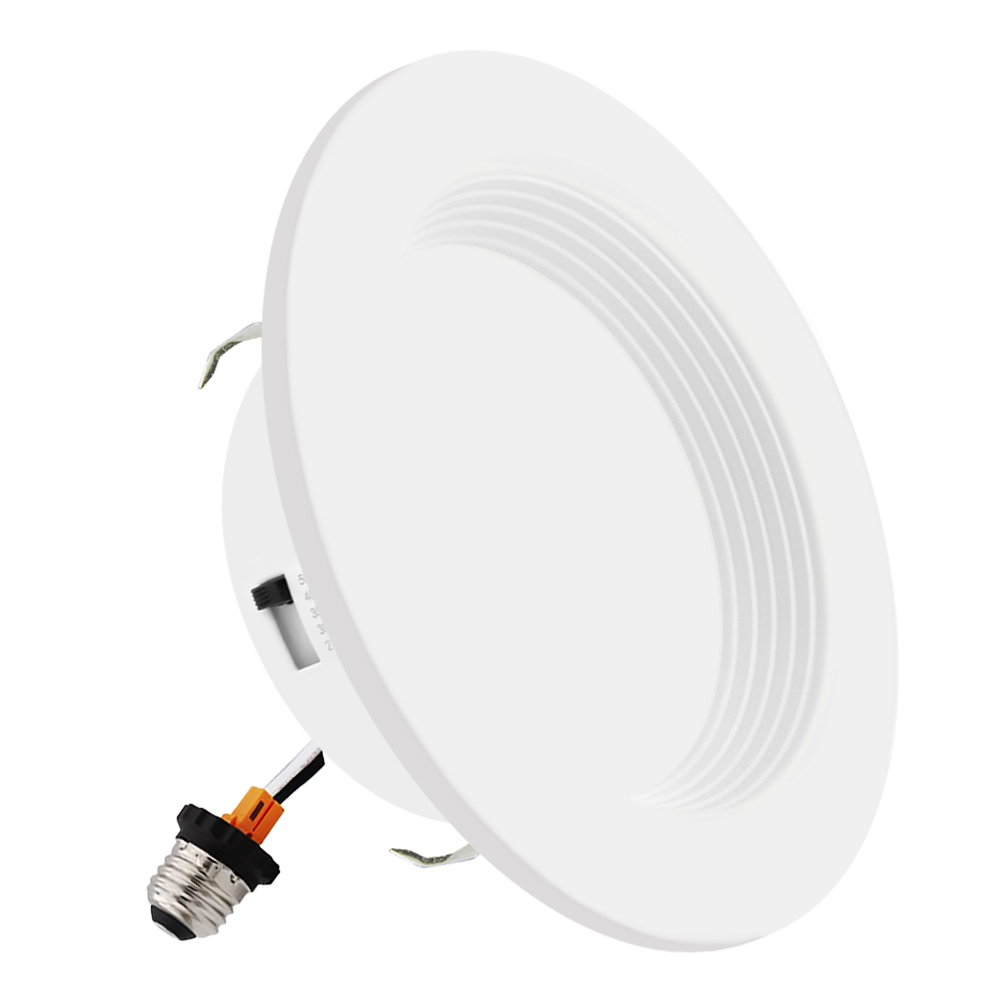 Color Selection Feature – 5 CCT 2700K/3000K/3500K/4000K/5000K LED recessed lighting allows customizable light color with a switch on the back of the fixture. Contractor 12-pack. Energy Efficient Downlight – 10W equivalent to 60W, this LED downlight consumes less power than traditional lights, helping to save money and promote energy efficiency. 750 Lumens – High CRI rating of 90, dimmable with accurate color rendering, and damp rated for use in living rooms, bedrooms, kitchens, dens, bathrooms, and hallways. Lightweight Iron Body – This LED recessed fixture is made with an iron body, making it lightweight. E26 Quick Connect adaptor included. Compliant & Warranty – 120VAC, ETL Listed, and Title 20 compliant. Backed by a 3-year warranty for peace of mind.