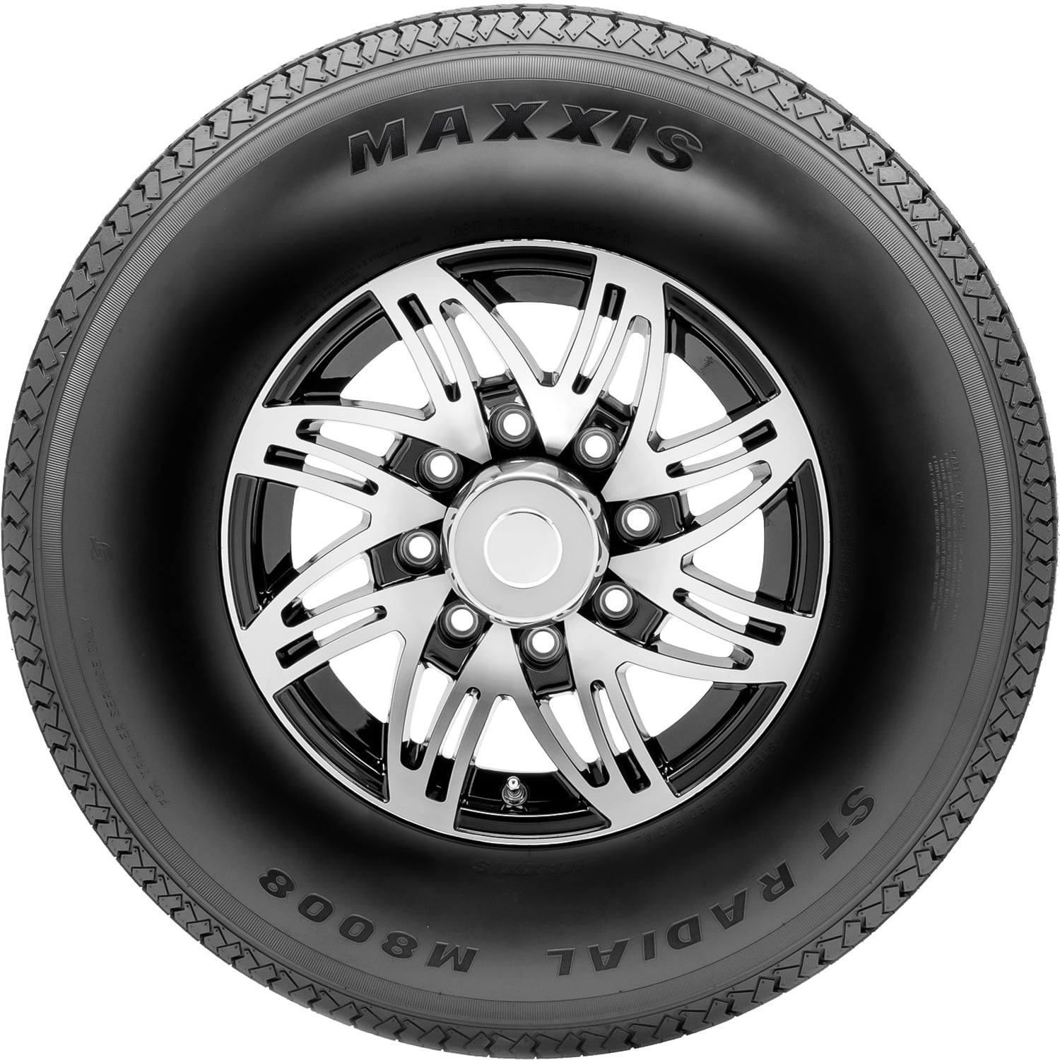 Maxxis ST Radial M8008 FEATURES AND BENEFITS Fuel efficient drive Enhanced controllability Increased durability OVERVIEW The Maxxis ST Radial M8008 is a highway terrain all season tire manufactured for trailers. This tire is NOT MEANT TO BE MOUNTED ON LIGHT TRUCKS, as its construction will not support the weight and performing style of such vehicles. It can ONLY BE MOUNTED ON TRAILERS. The tire promotes excellent handling. The special shock absorbent construction and the ribbed tread pattern enhance the steering responsiveness and the driving stability. The ribbed tread design’s constant road contact enhances the steering responsiveness and accuracy to the towing vehicle’s instructions, making the tire easier to control in all weather. The shock absorbent construction stabilizes the tire against the driving and load pressure affecting it during the drive, ensuring a secure drive and exceptional controllability. The model’s internal structure features a double steel belt and full nylon cap construction. This improves the tire’s durability by preventing deformation under the driving and load pressure affecting the tire. They increase the structure’s strength and reinforce its durability. In this manner, the tire is capable of carrying and withstanding heavy loads, while also maintaining the optimal tire shape. The better durability allows the tire to perform to its best capability even under heavy load pressure. The ST Radial M8008 is a fuel efficient tire. The special compound lowers the rolling resistance by lowering the tire’s overall weight. The rolling resistance is the pressure affecting the tires during the drive that determine how much energy the vehicle needs to keep the tires in motion. The reduced rolling resistance manages to lower the towing vehicle’s fuel consumption and CO2 emissions, guaranteeing a environmentally friendly performance. Manufacturers recommend changing tires every 10 years. As long as tires are properly stored before they are sold, the year of their manufacture will not shorten their service life.