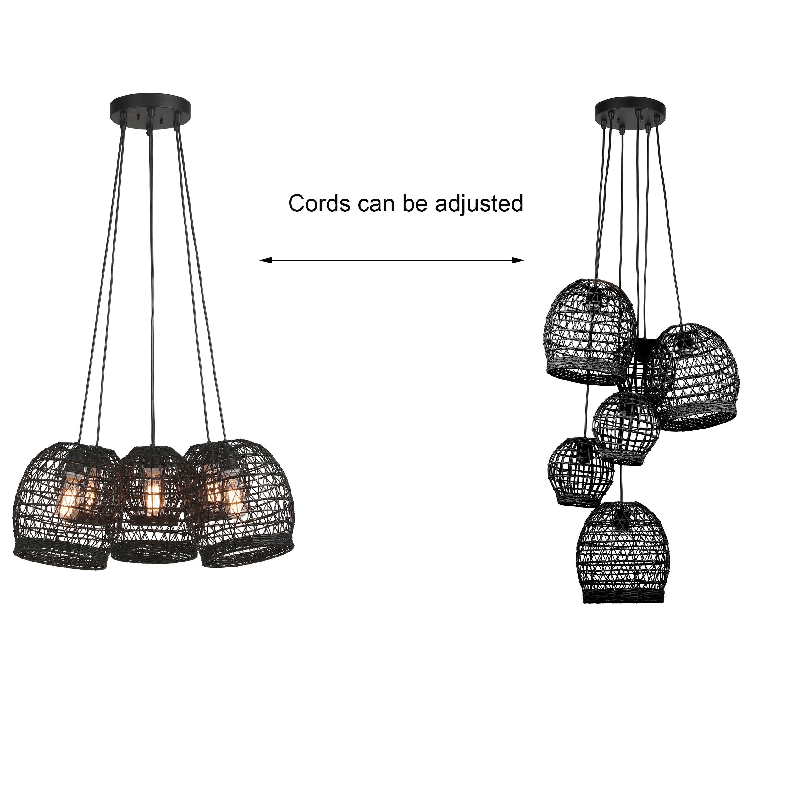 This black natural rattan shade Pendant from MAYA collection, matte black canopy and cords offers a timeless look. Black rattan shade woved by hand which is very suitable for the traditional style. We recommend using this fixture in various settings. You can either install it to decorate your living room, bedroom, entryway, kitchen island,or set it as foyer lighting.